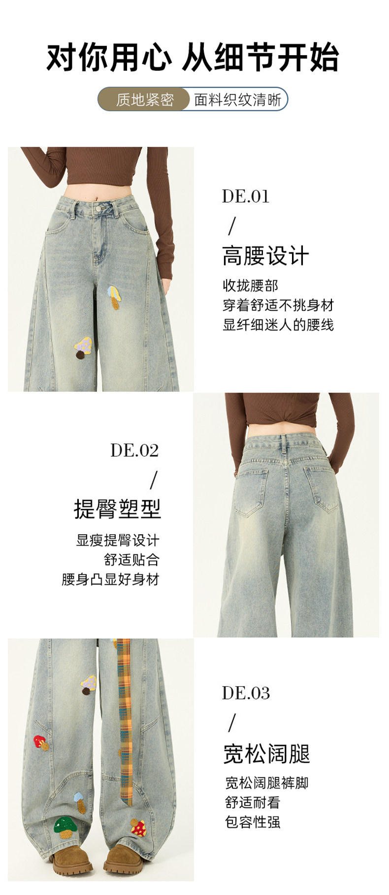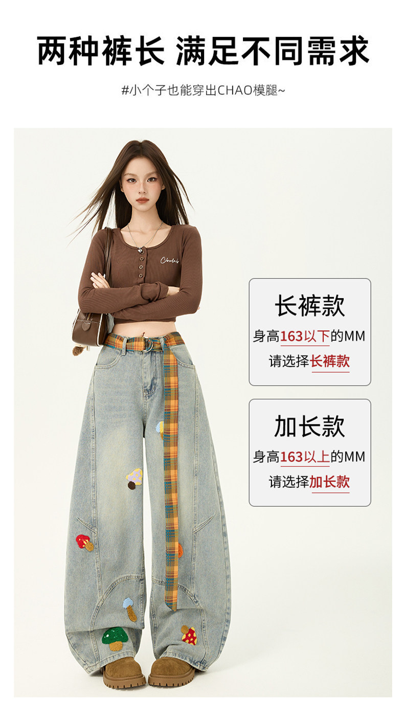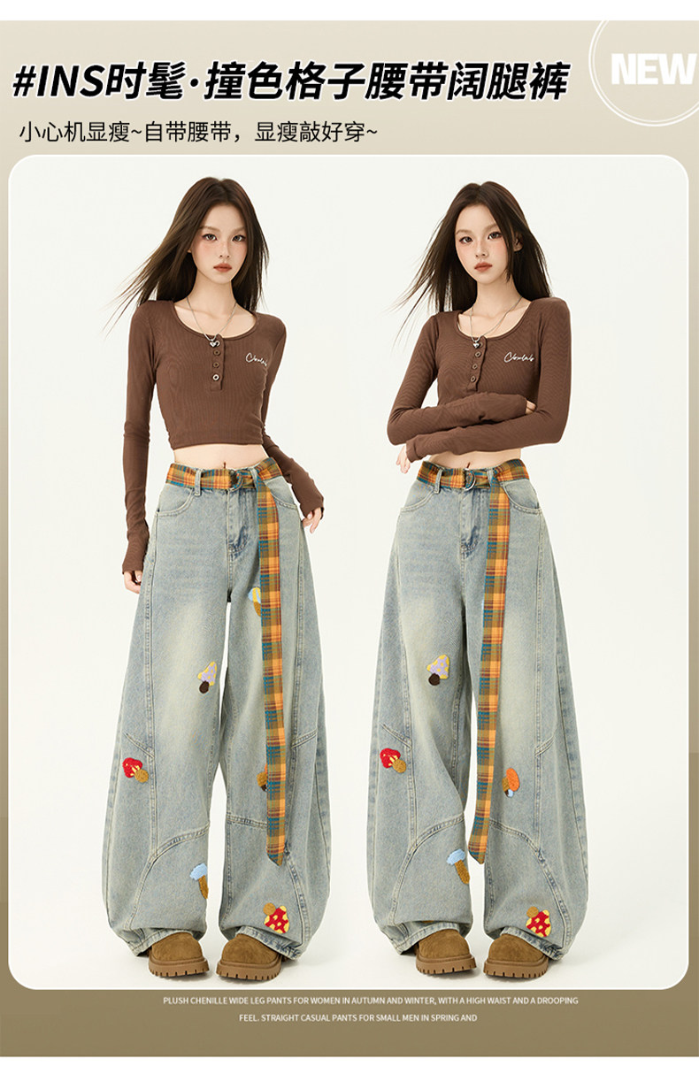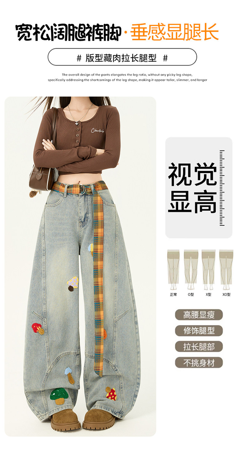 American Retro Embroidered Jeans for Women, Loose Wide-Leg Scimitar Pants with a Sense of Design