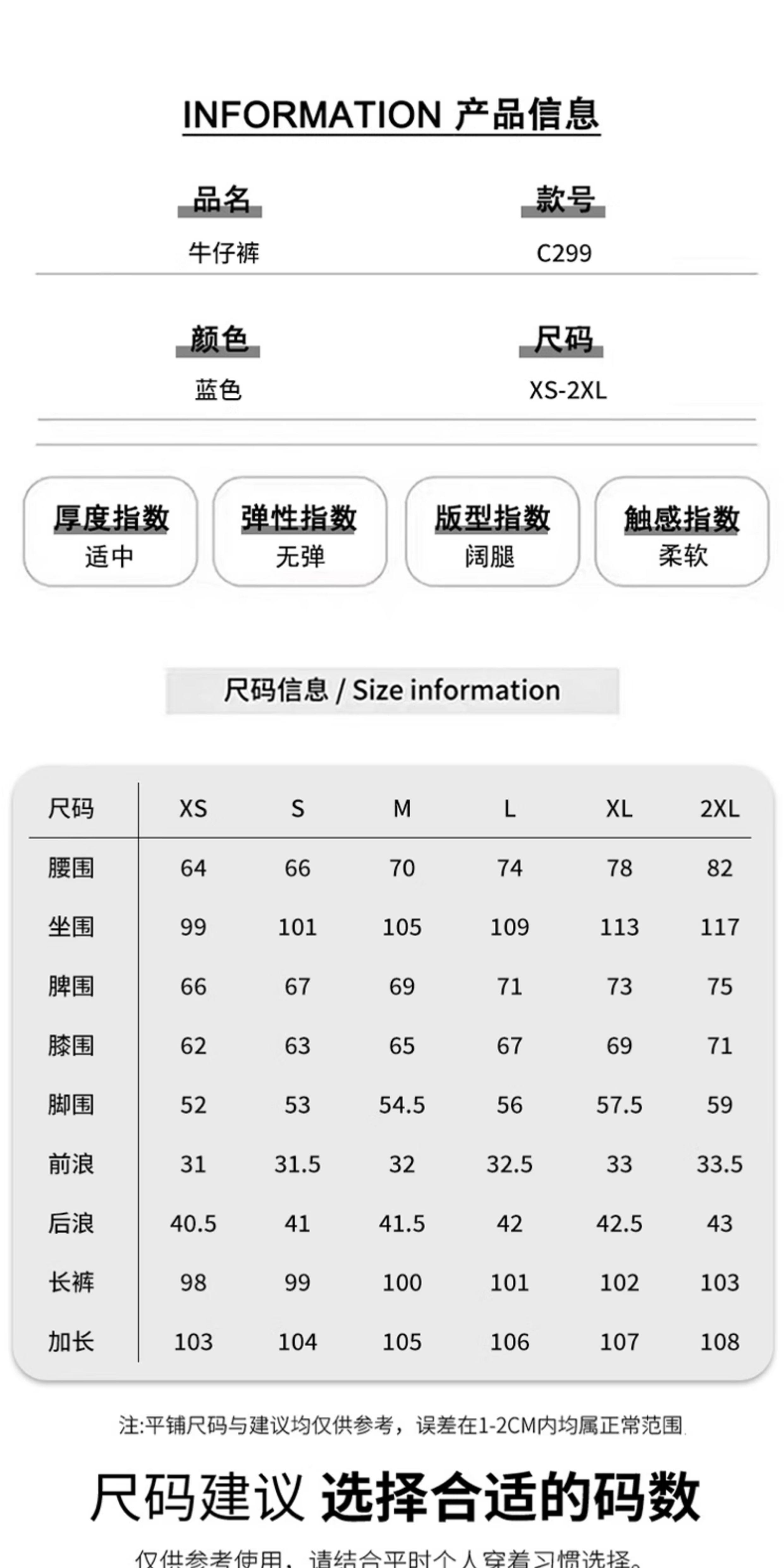 Outseam (cm) 99 cm 101.5 cm 104 cm 106.5 cm 109 cm