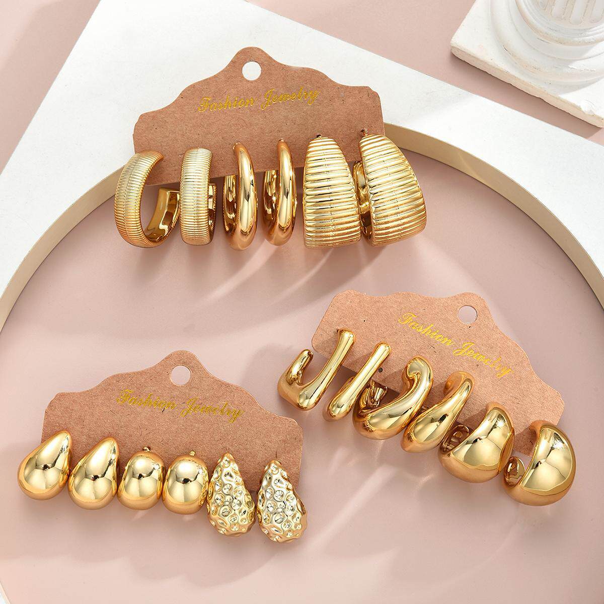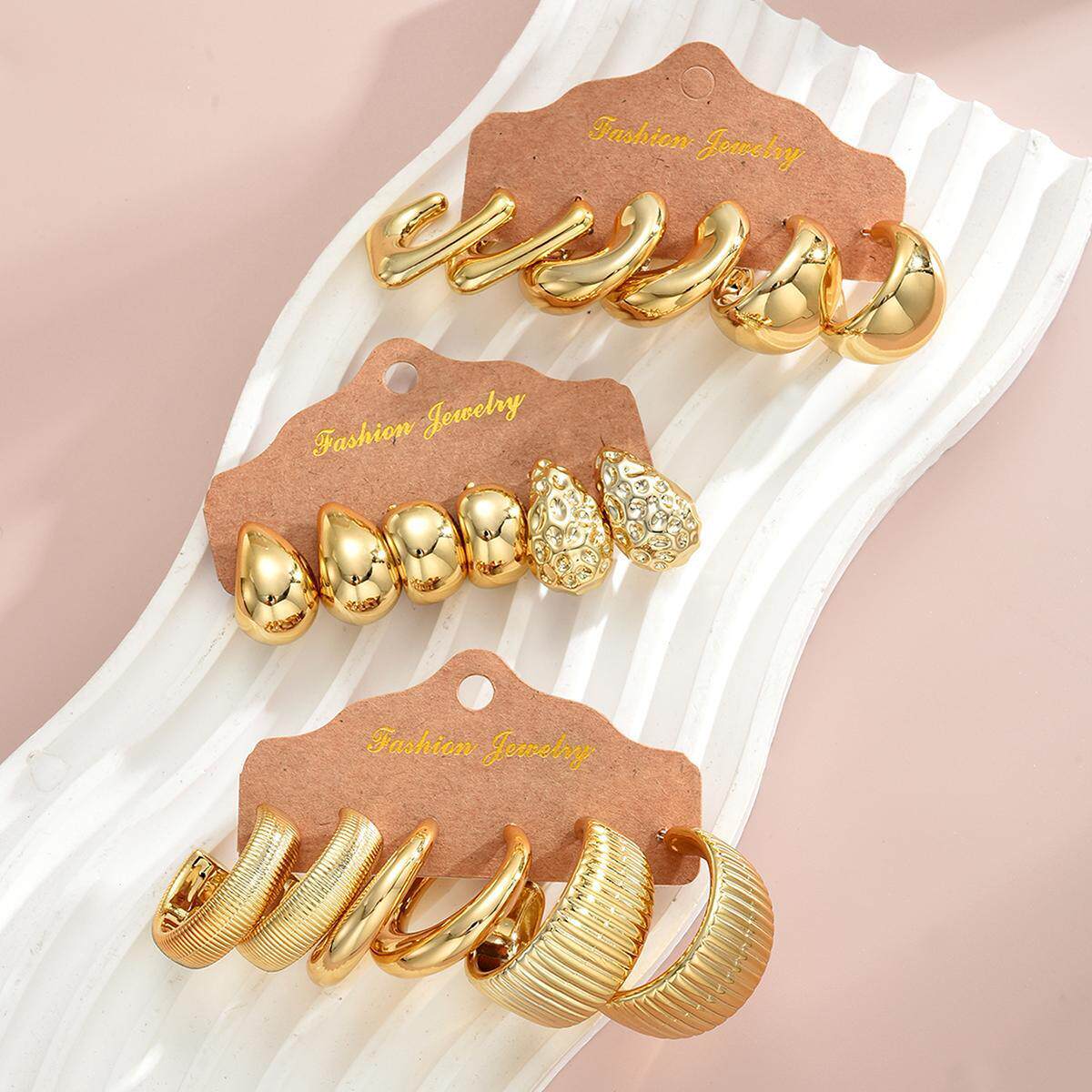 Earring Set of 9 Pieces Cross-Border European and American Irregular Teardrop-Shaped Exaggerated Earring Set 9-Piece Set