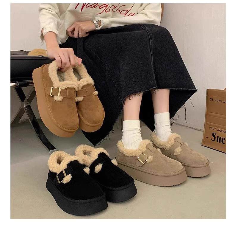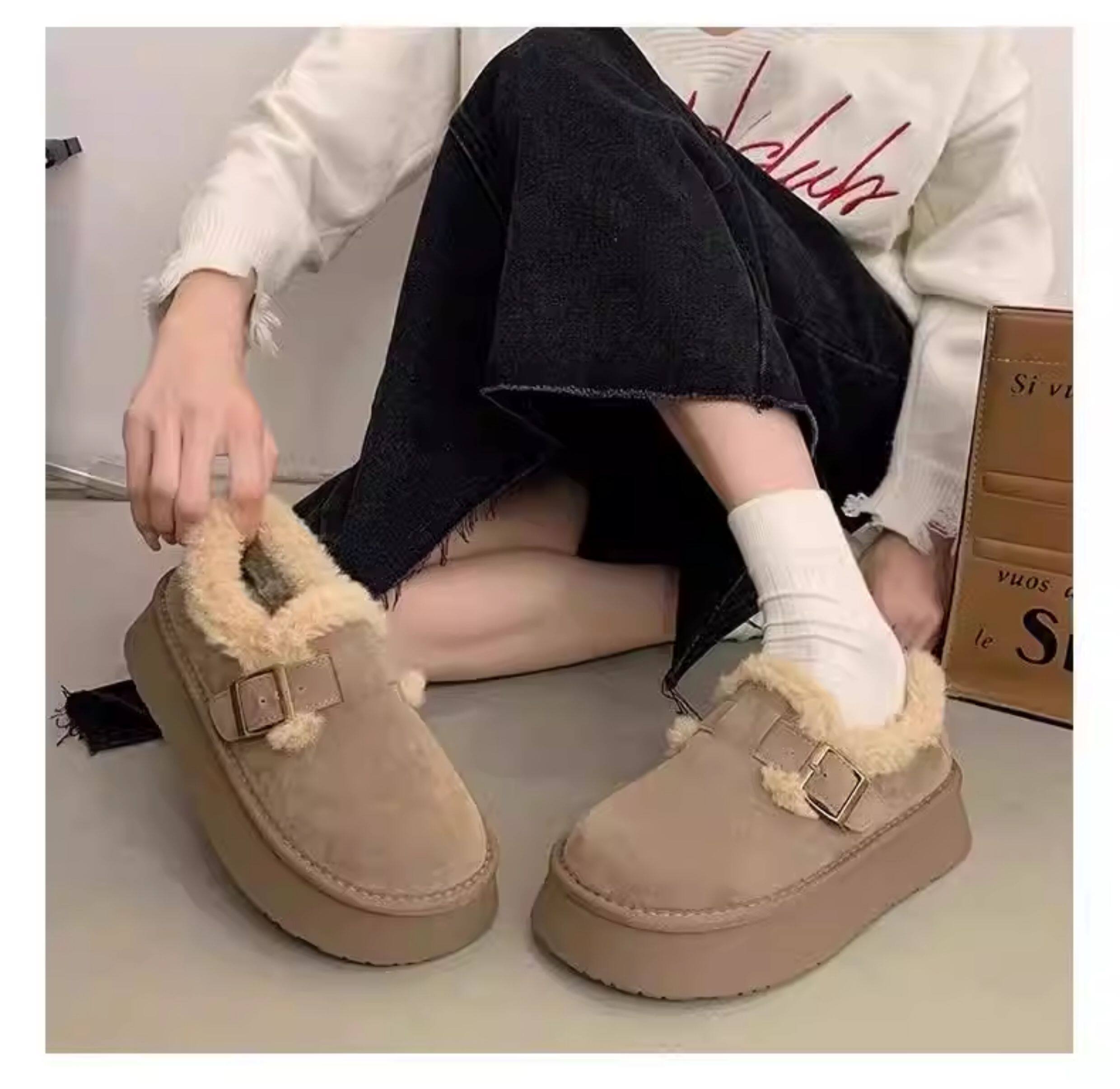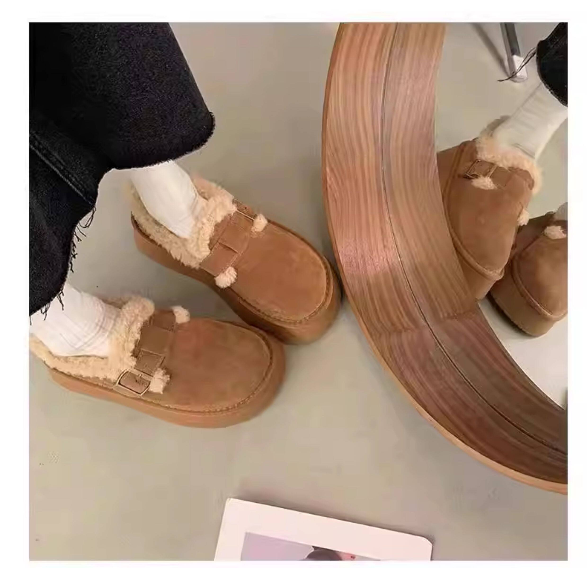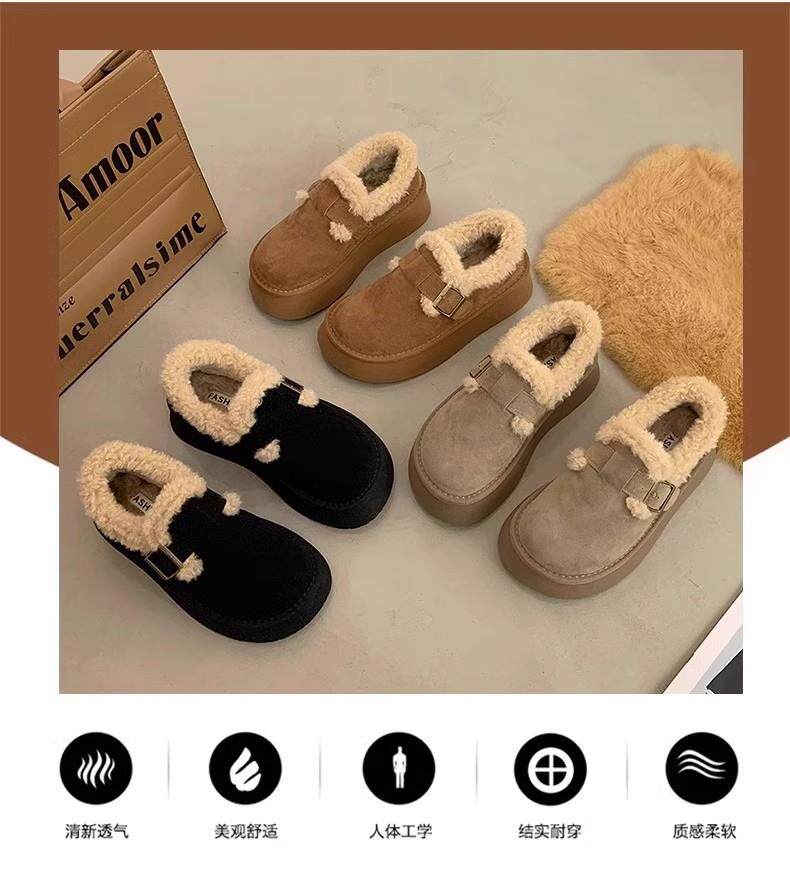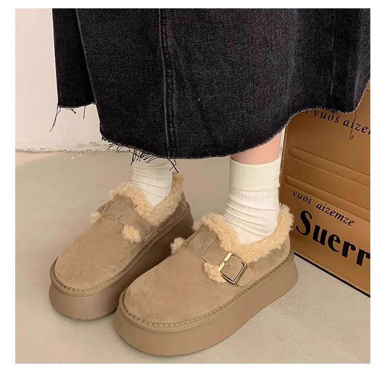 Large size women's shoes 41 43 wide feet fat feet snow boots women's autumn plus velvet thickened fur warm Birkenstock shoes cotton shoes