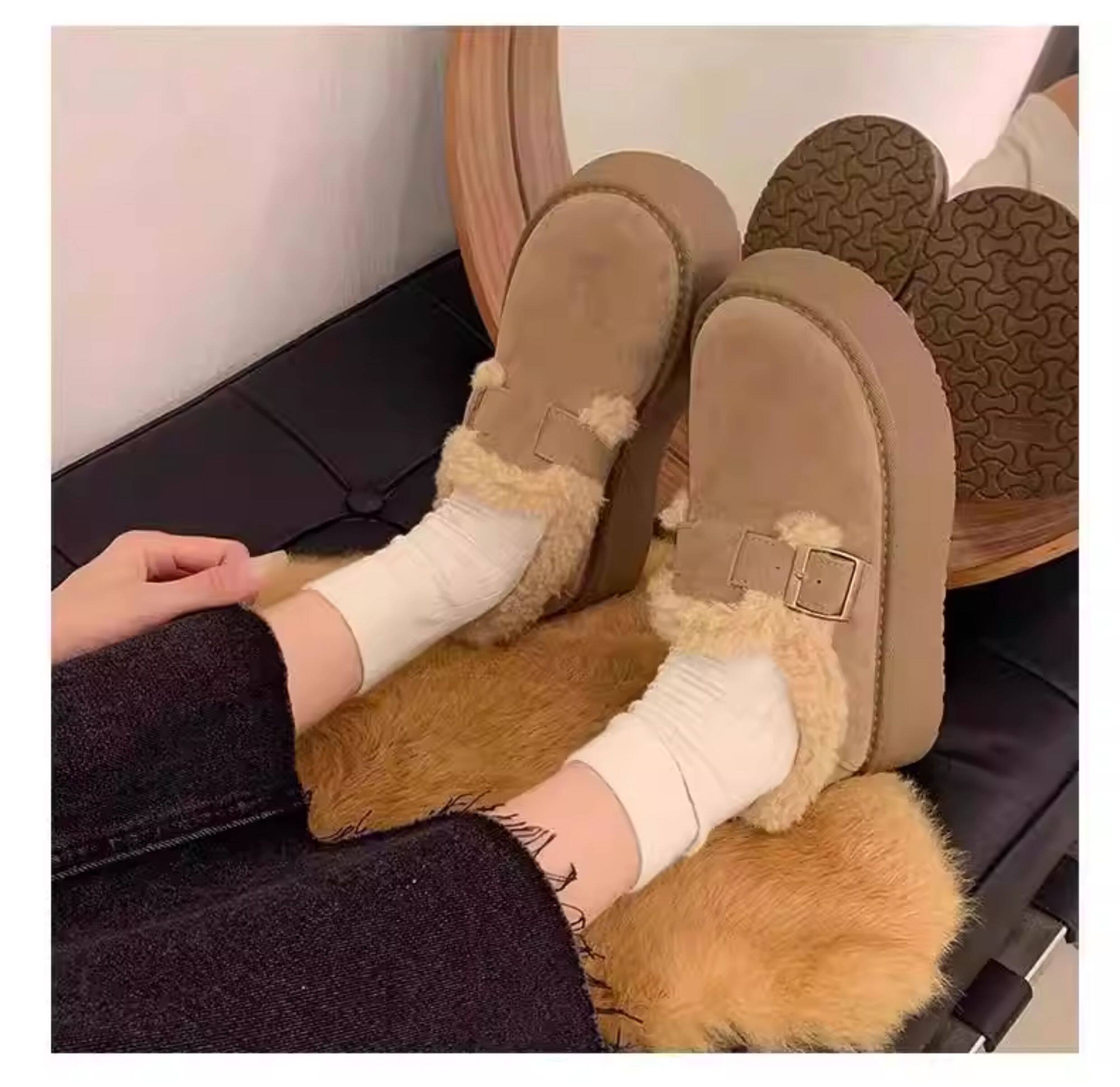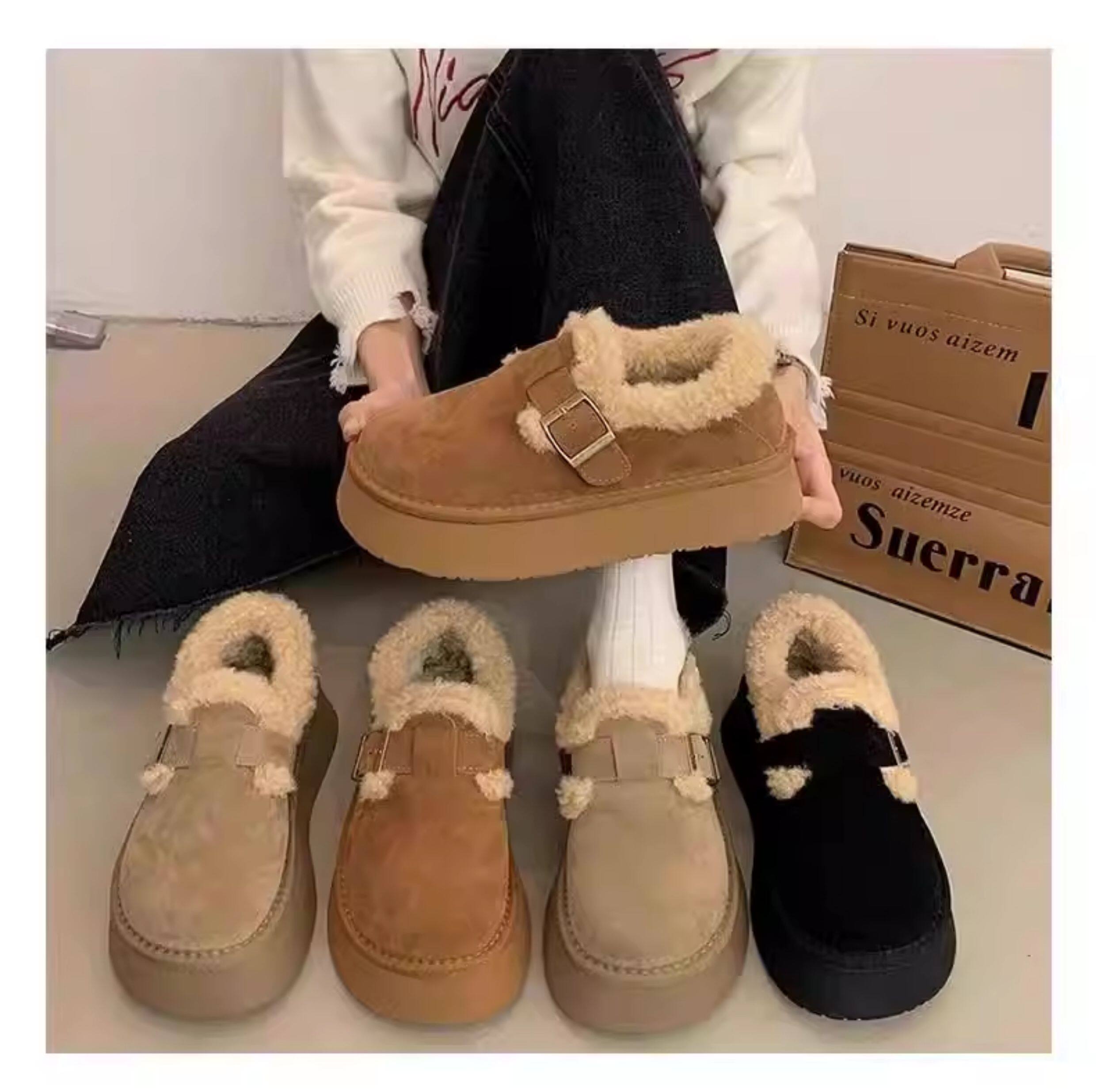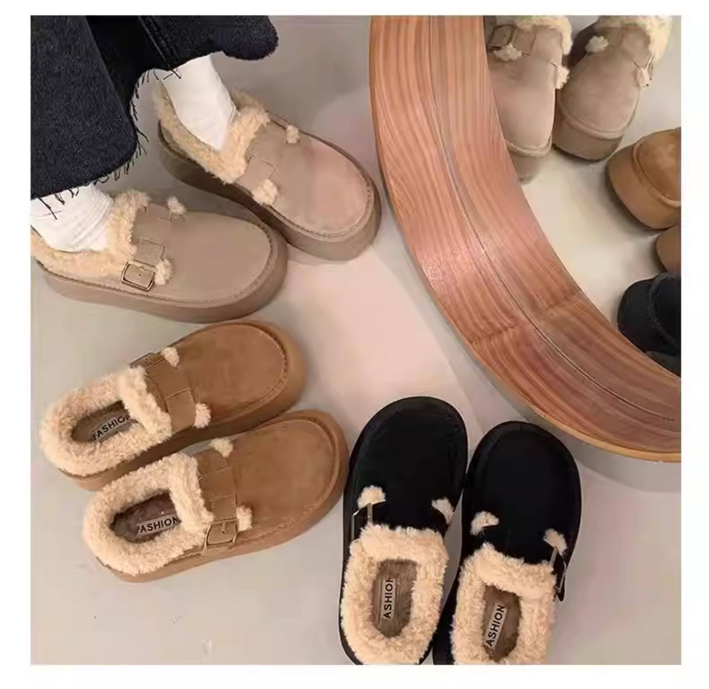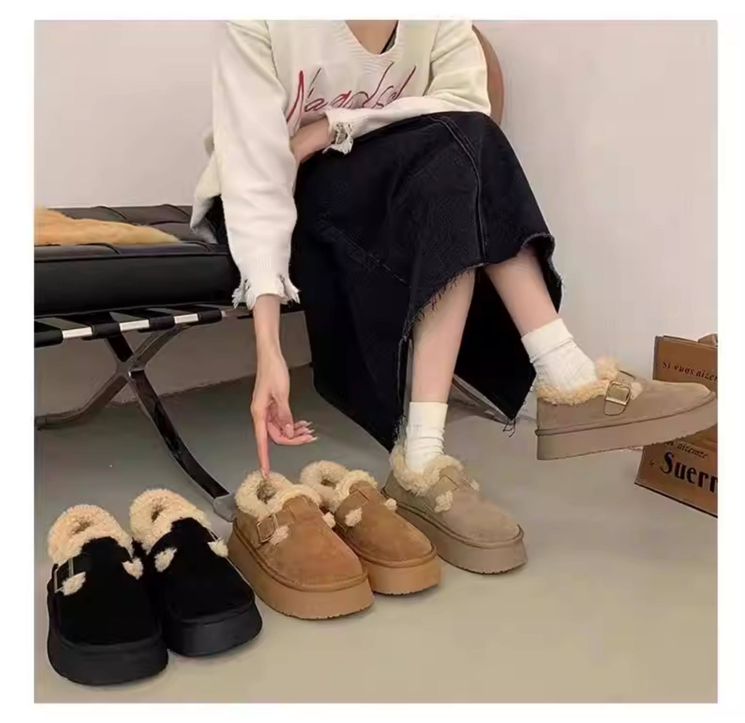 Large size women's shoes 41 43 wide feet fat feet snow boots women's autumn plus velvet thickened fur warm Birkenstock shoes cotton shoes