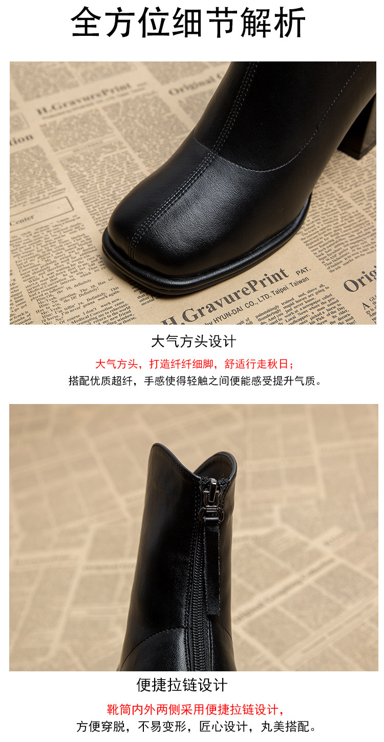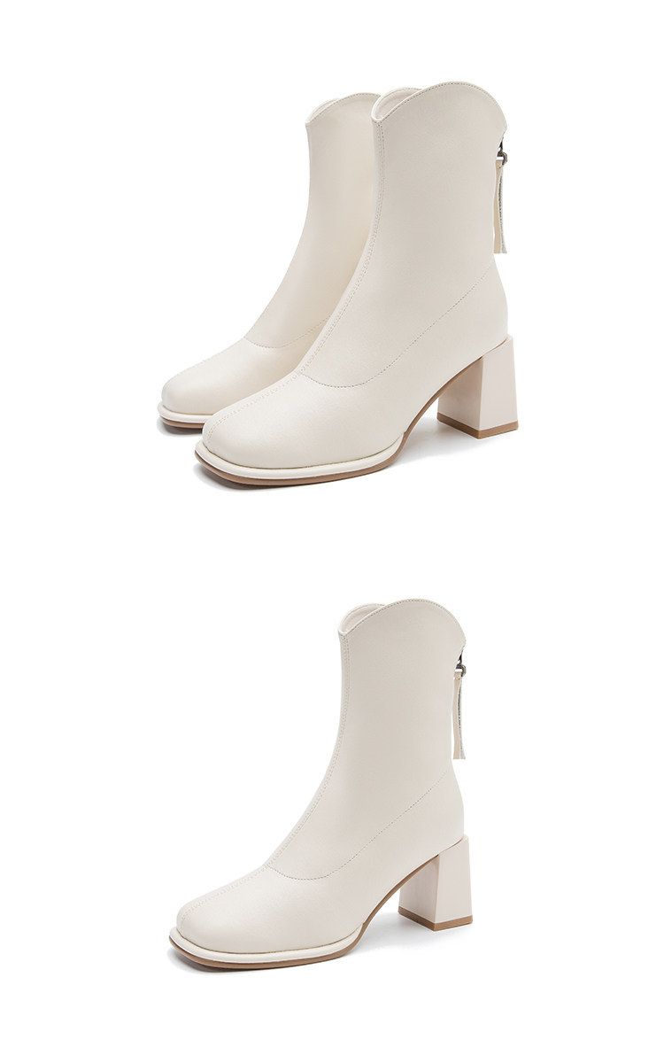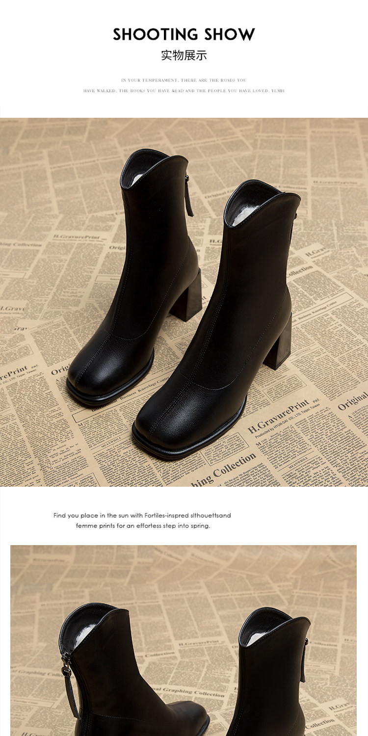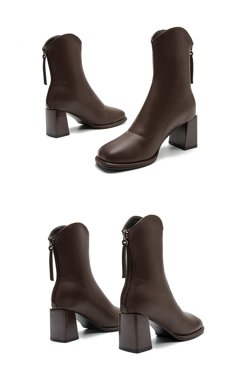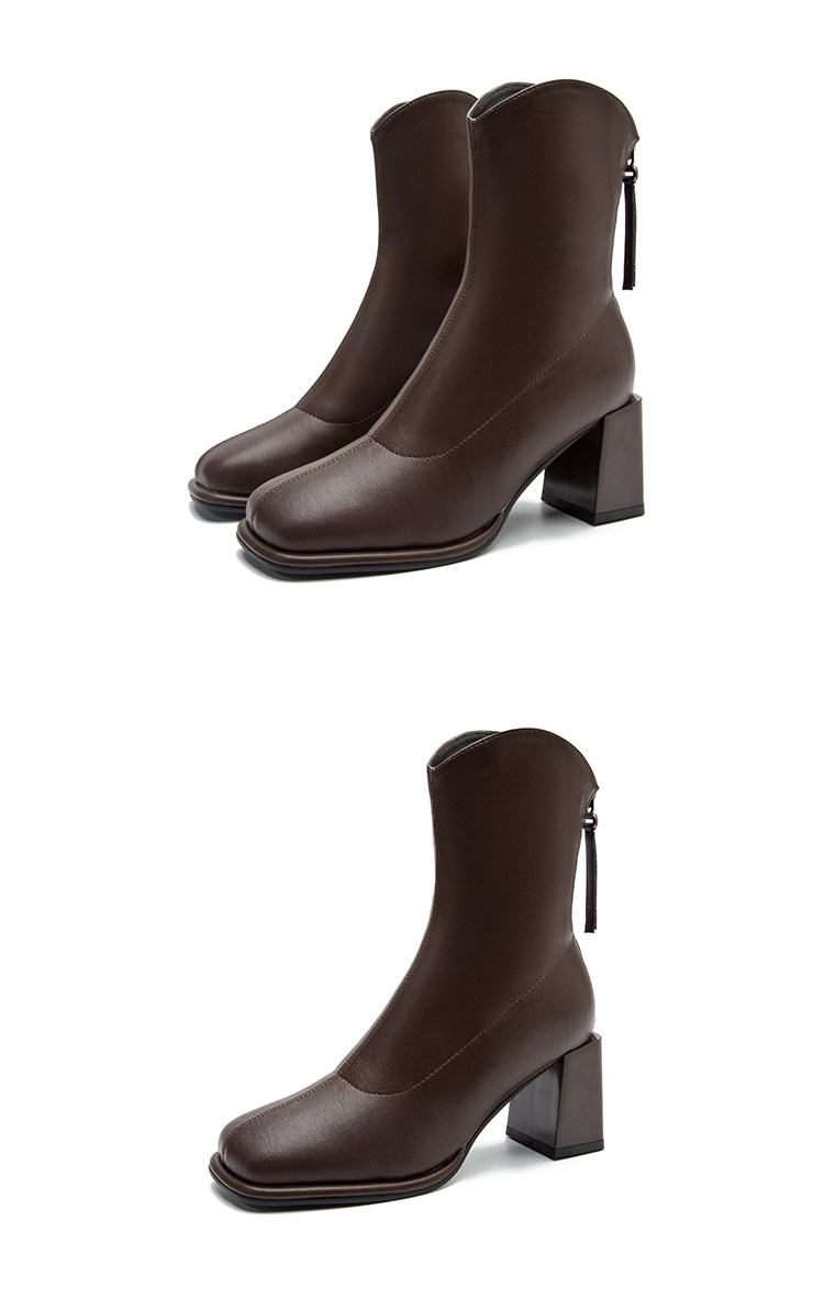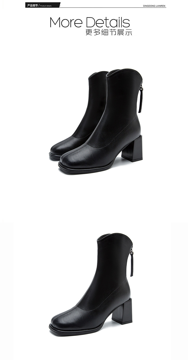 Genuine Leather, Very Stylish, Fleece-Lined, Fashionable High-Heeled Short Boots for Women, Cotton Shoes, 2025 Autumn and Winter New Model, Warm Furry Snow Boots