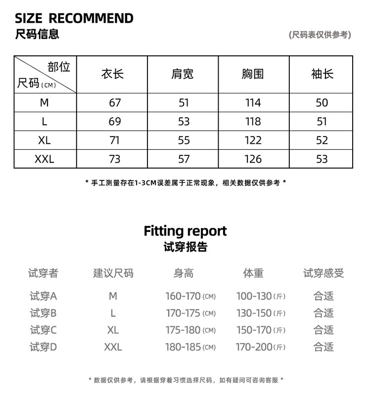 China (cm) 160-165/84-86 165-170 / 88-90 167-172 / 92-96 168-173 / 98-102 170-176 / 106-110