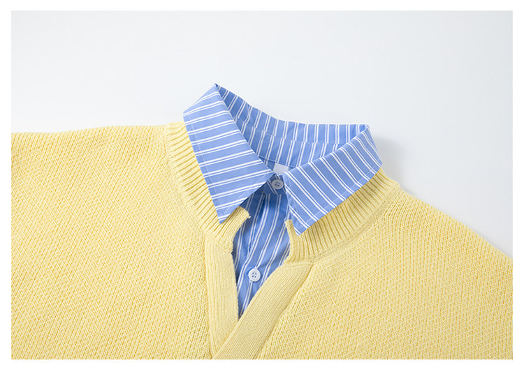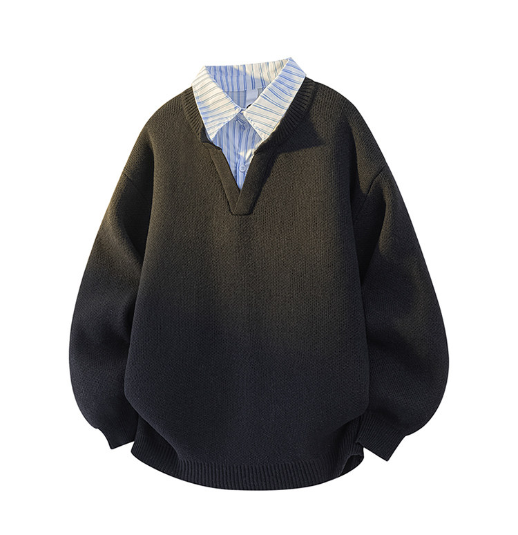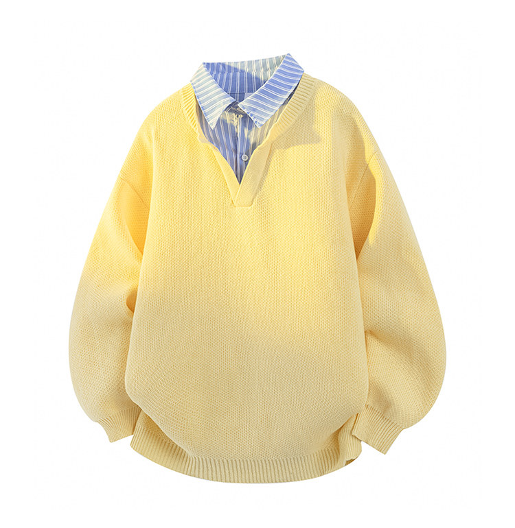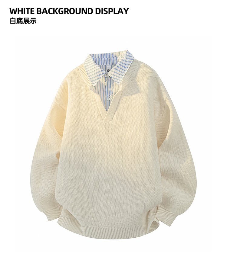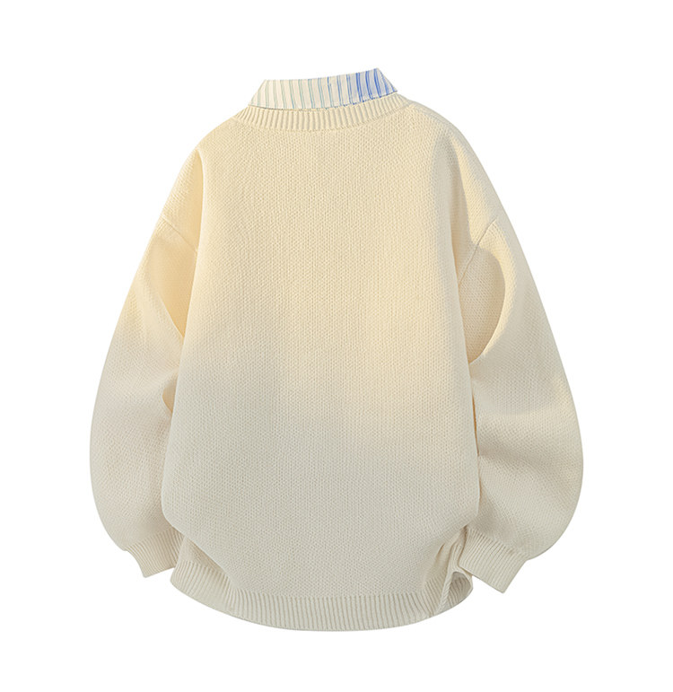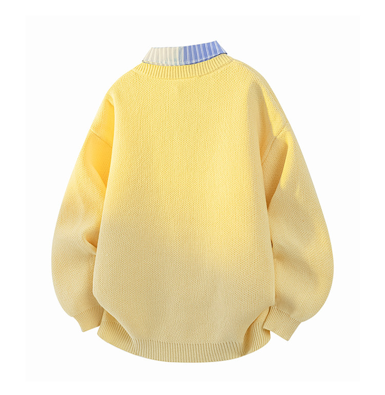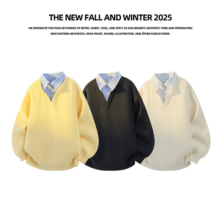 Wassup Tenet American Style Fake Two-Piece Sweater for Men, Autumn and Winter Trendy Brand, Lazy Style, Loose Knitwear for Couples