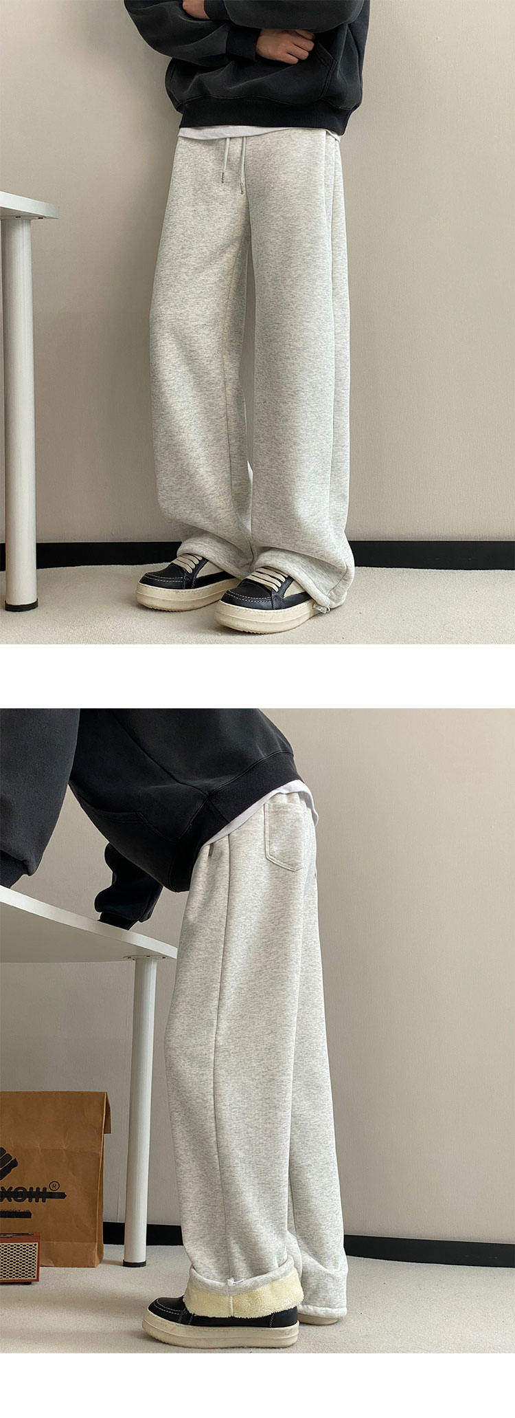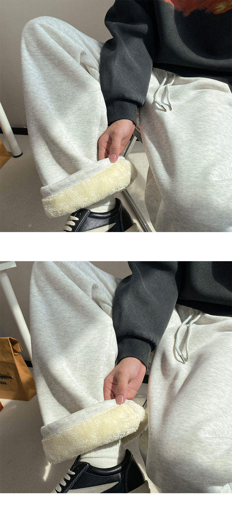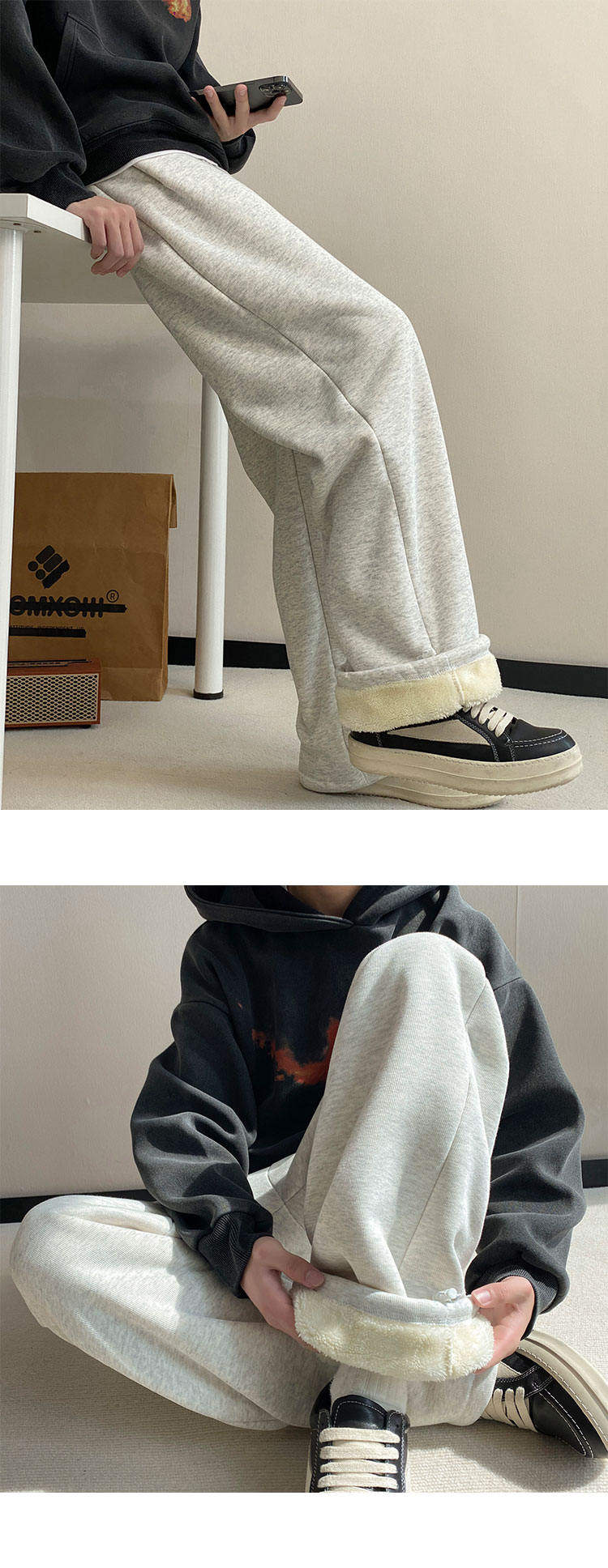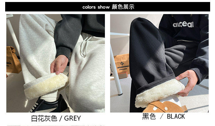 Gray heavyweight sherpa sweatpants for boys in winter plus velvet and thickened warm casual pants straight-leg loose wide-leg pants