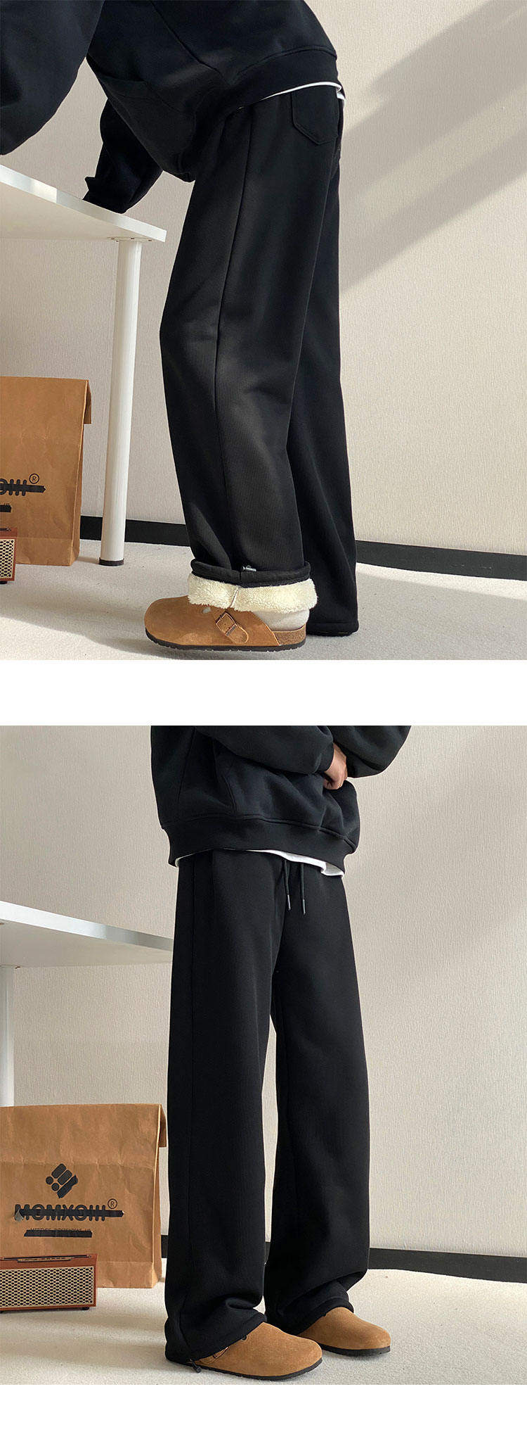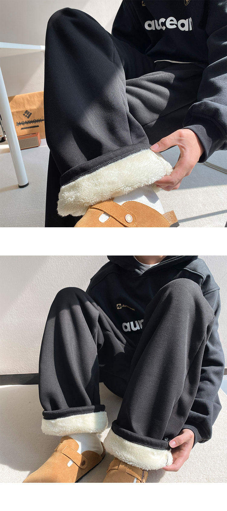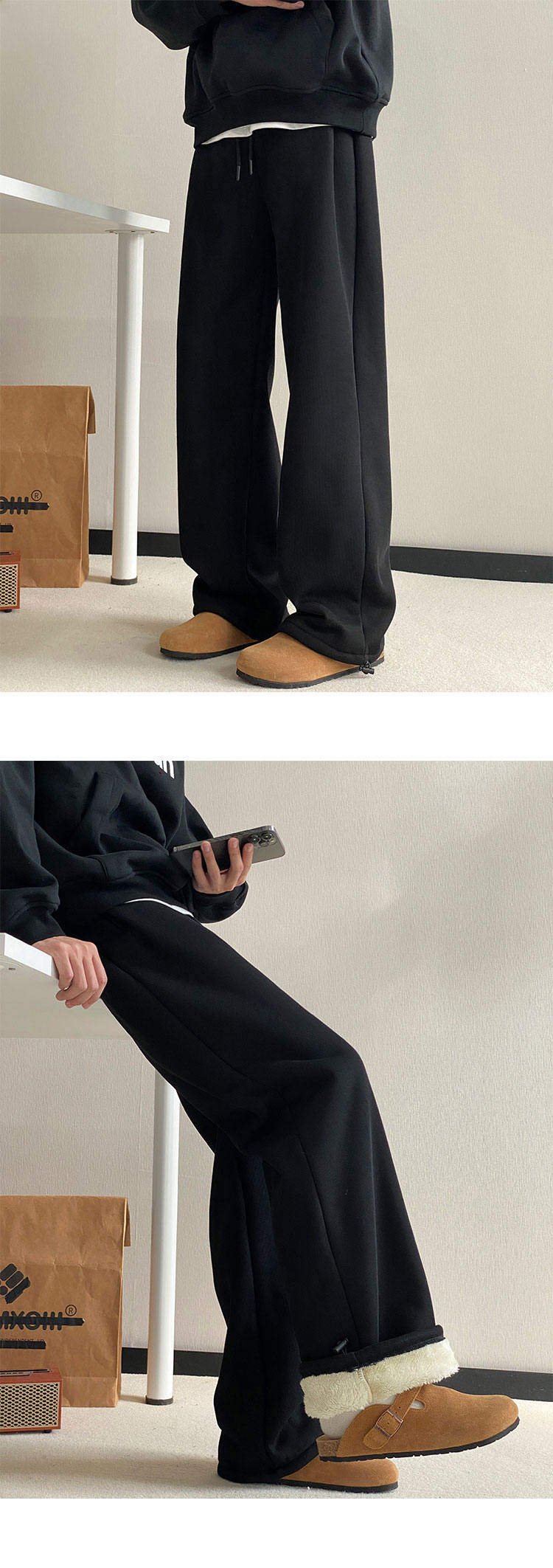 Gray heavyweight sherpa sweatpants for boys in winter plus velvet and thickened warm casual pants straight-leg loose wide-leg pants