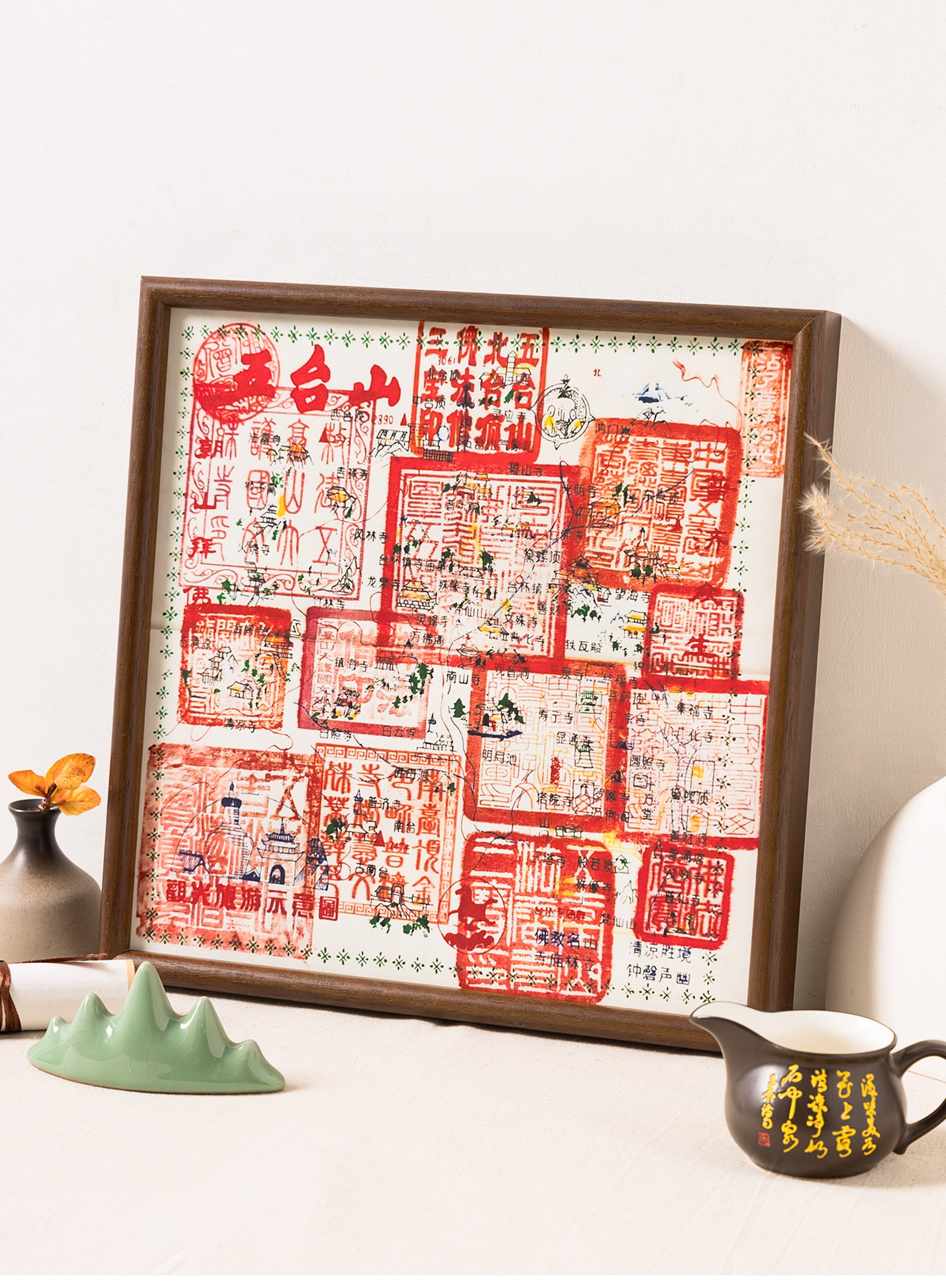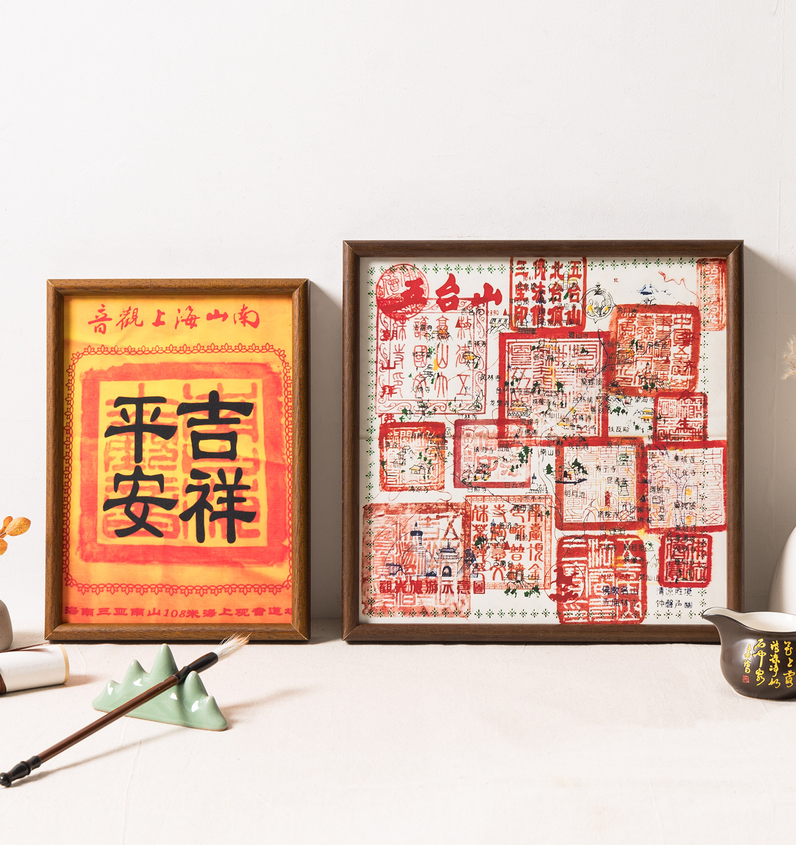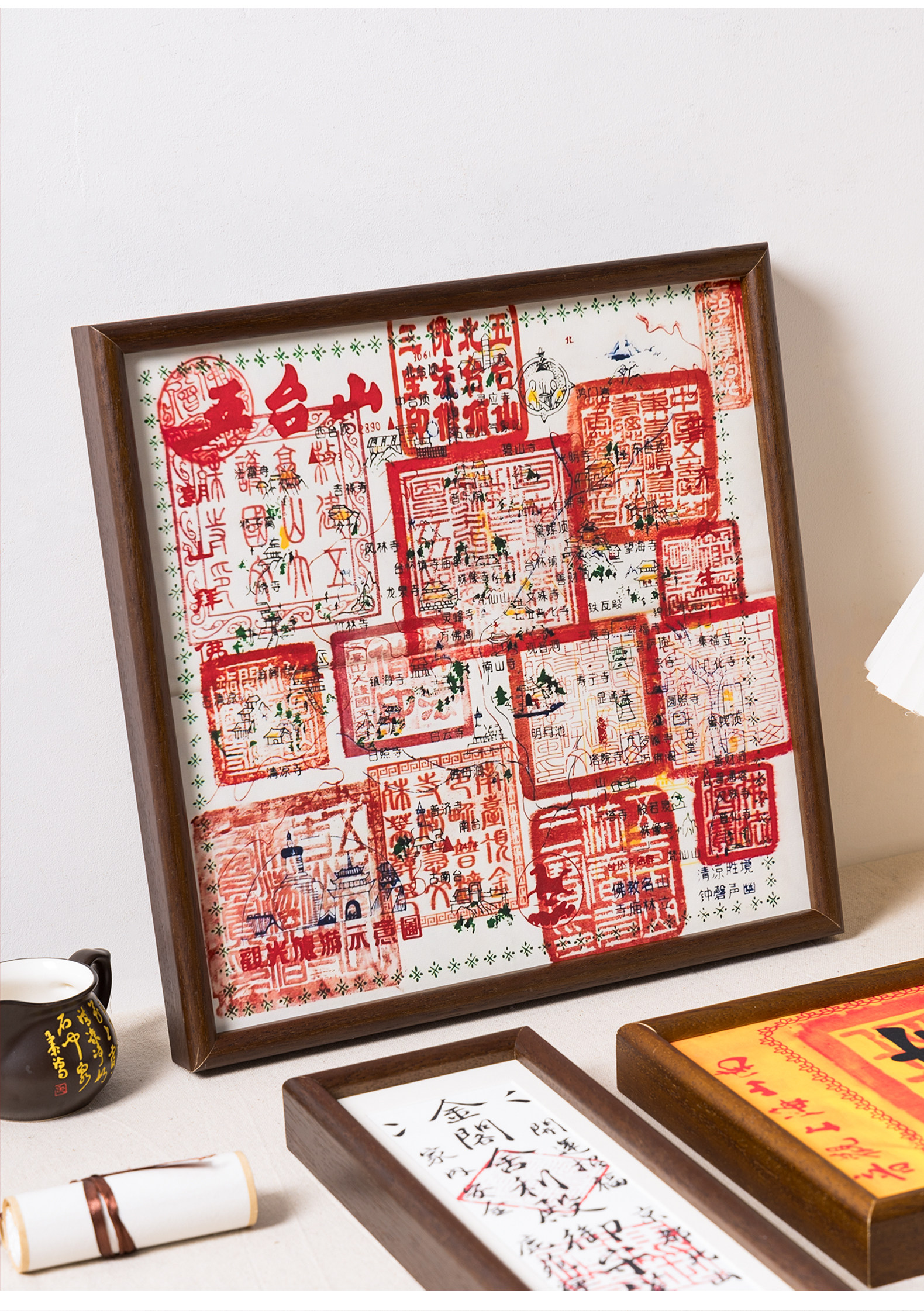 Wutai Mountain Stamp Cloth Photo Frame, Pilgrimage Road, Hainan Sanya Guanyin Nanshan Temple, Shunyuan Temple, Kinkakuji Ticket Frame