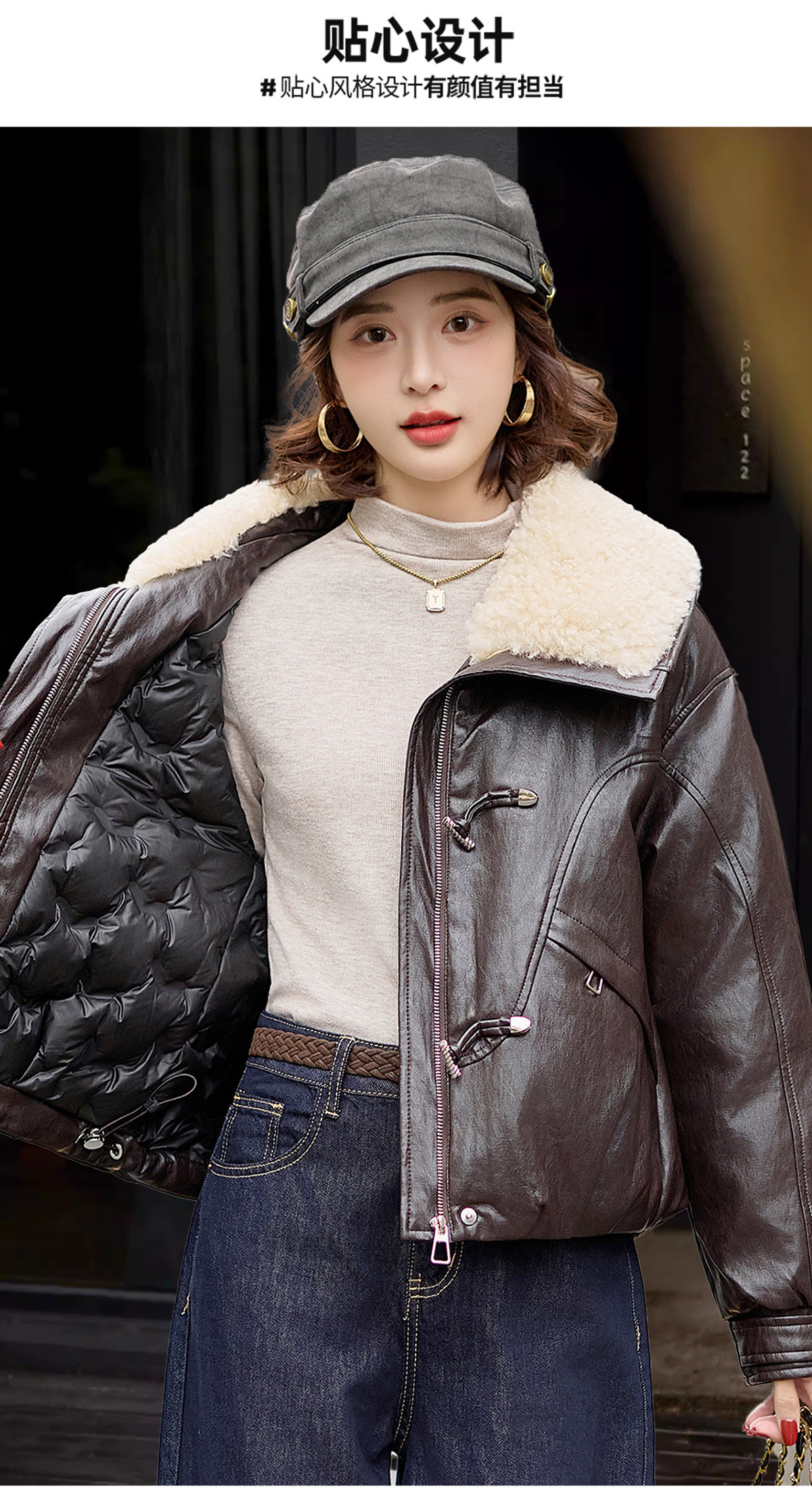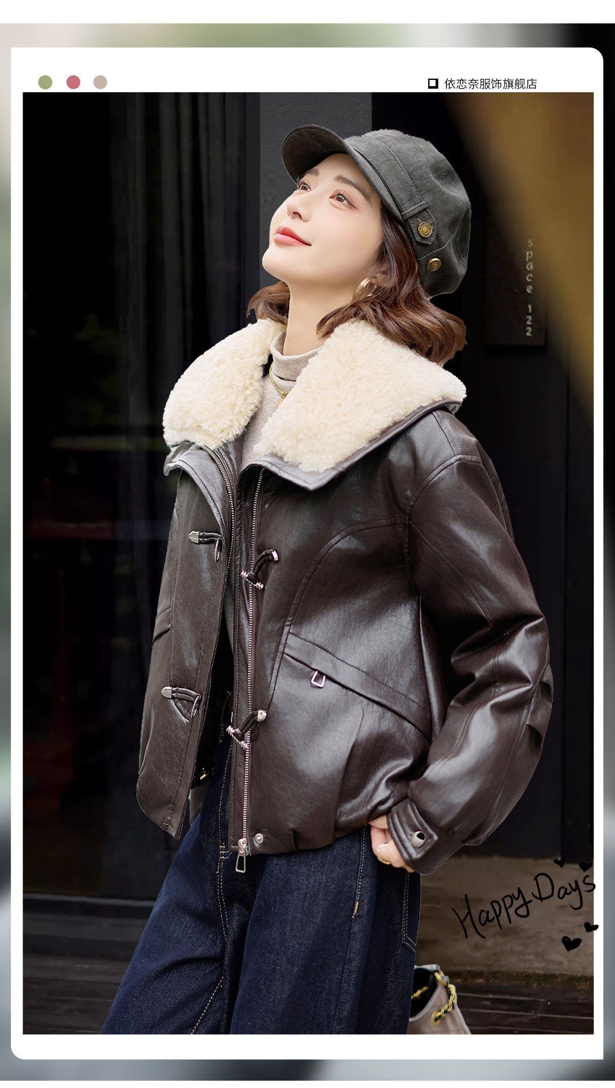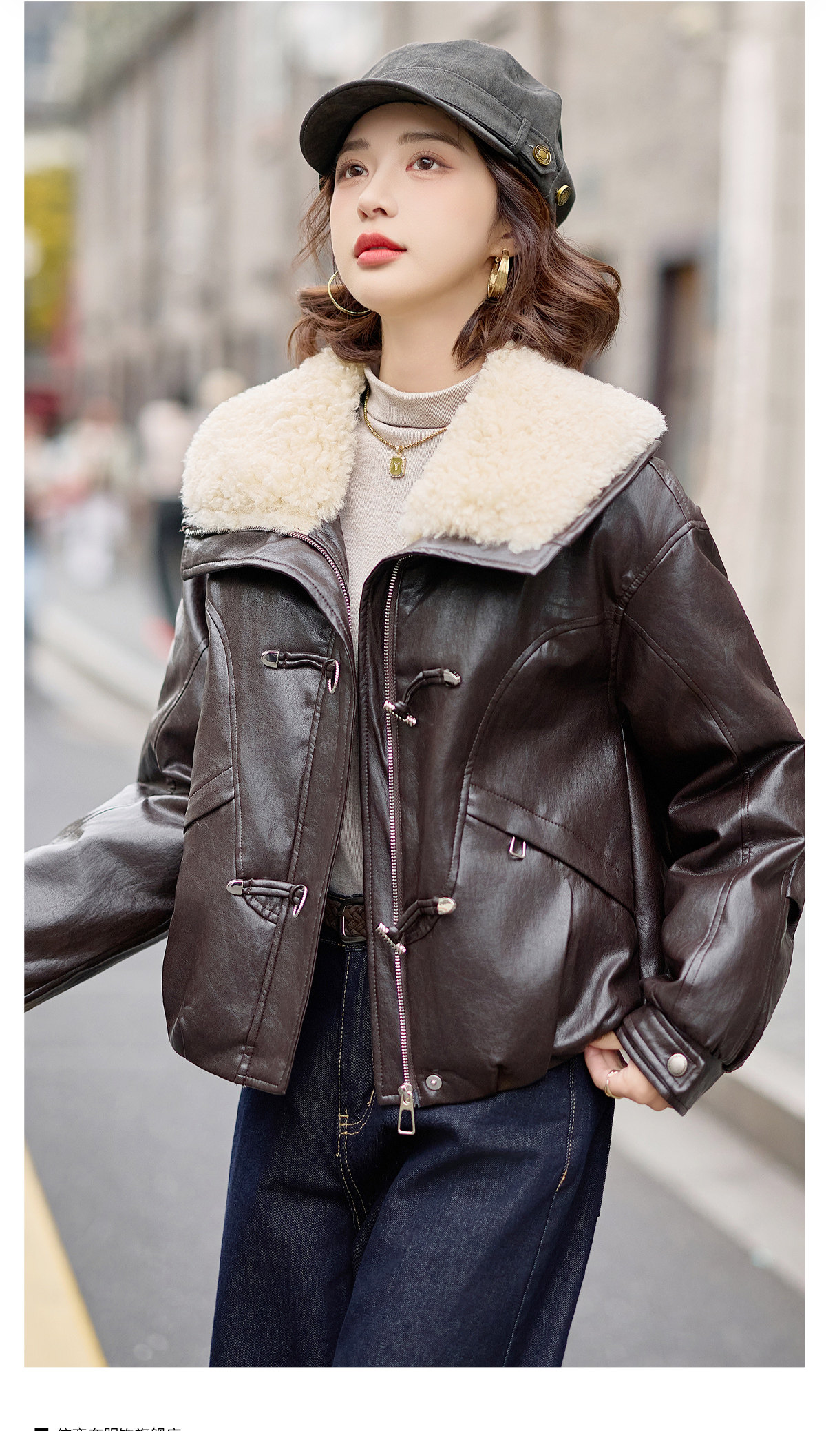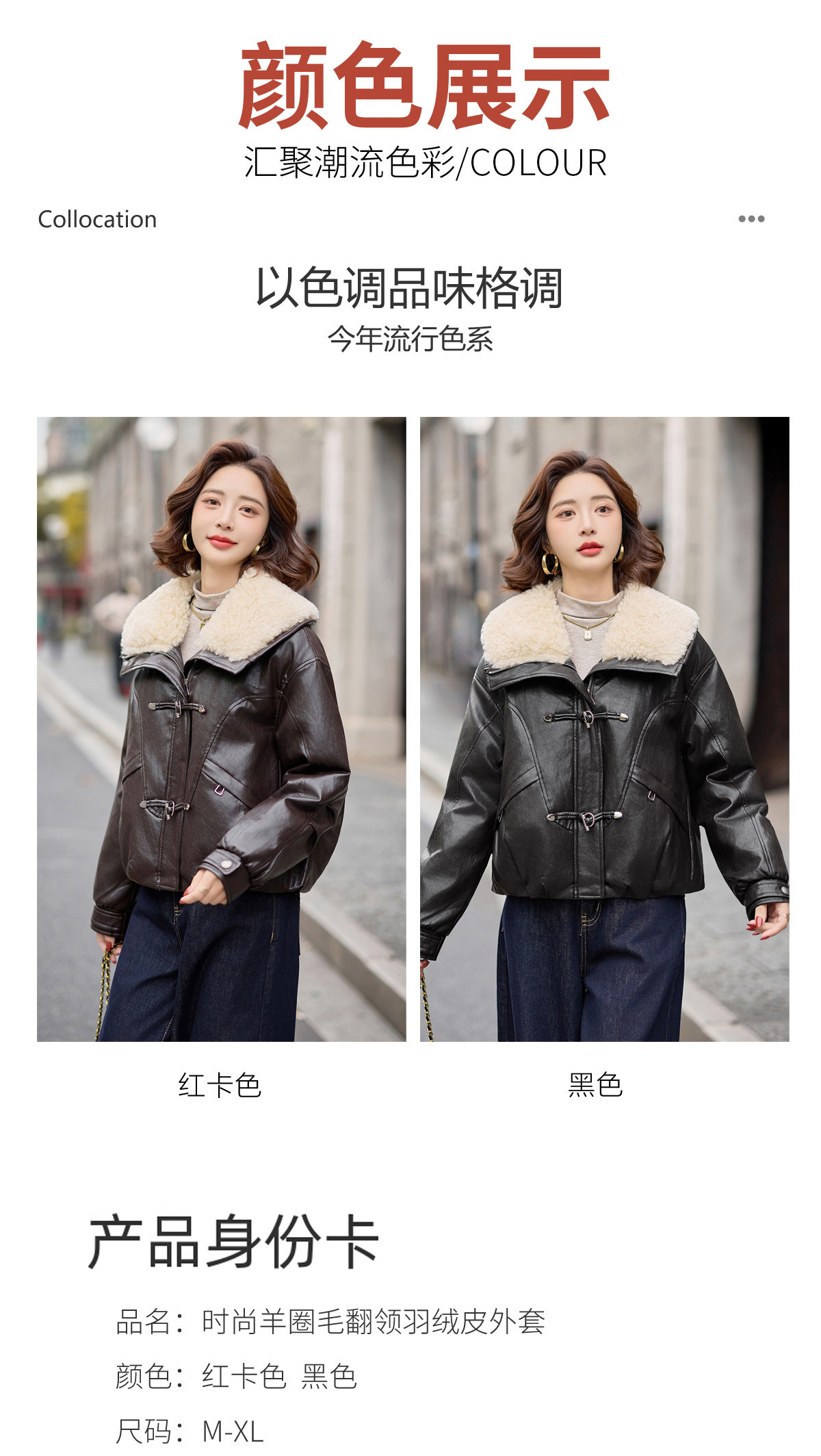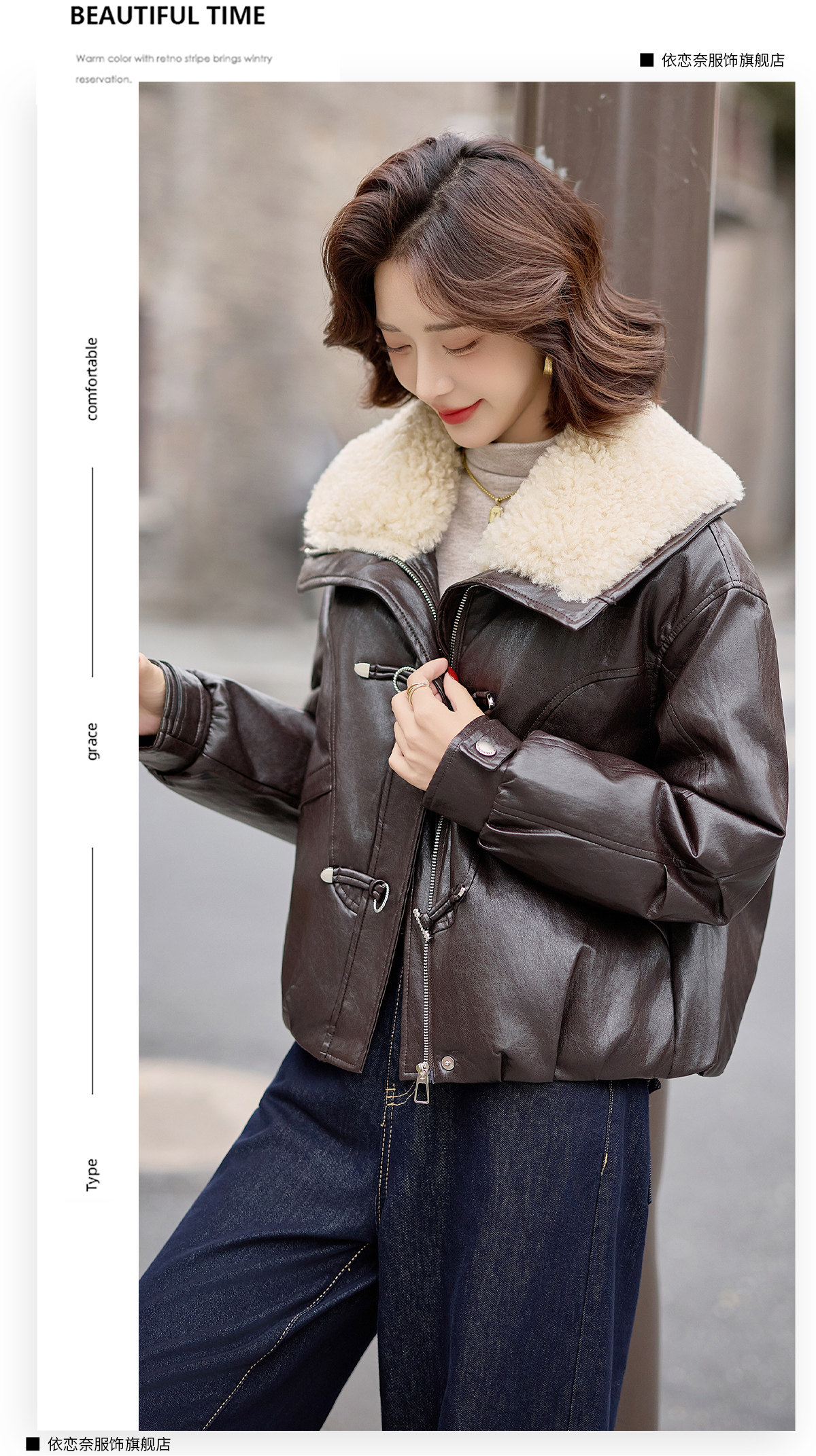 Plush lapel leather down jacket women's short winter 2026 new style fashionable and versatile warm jacket