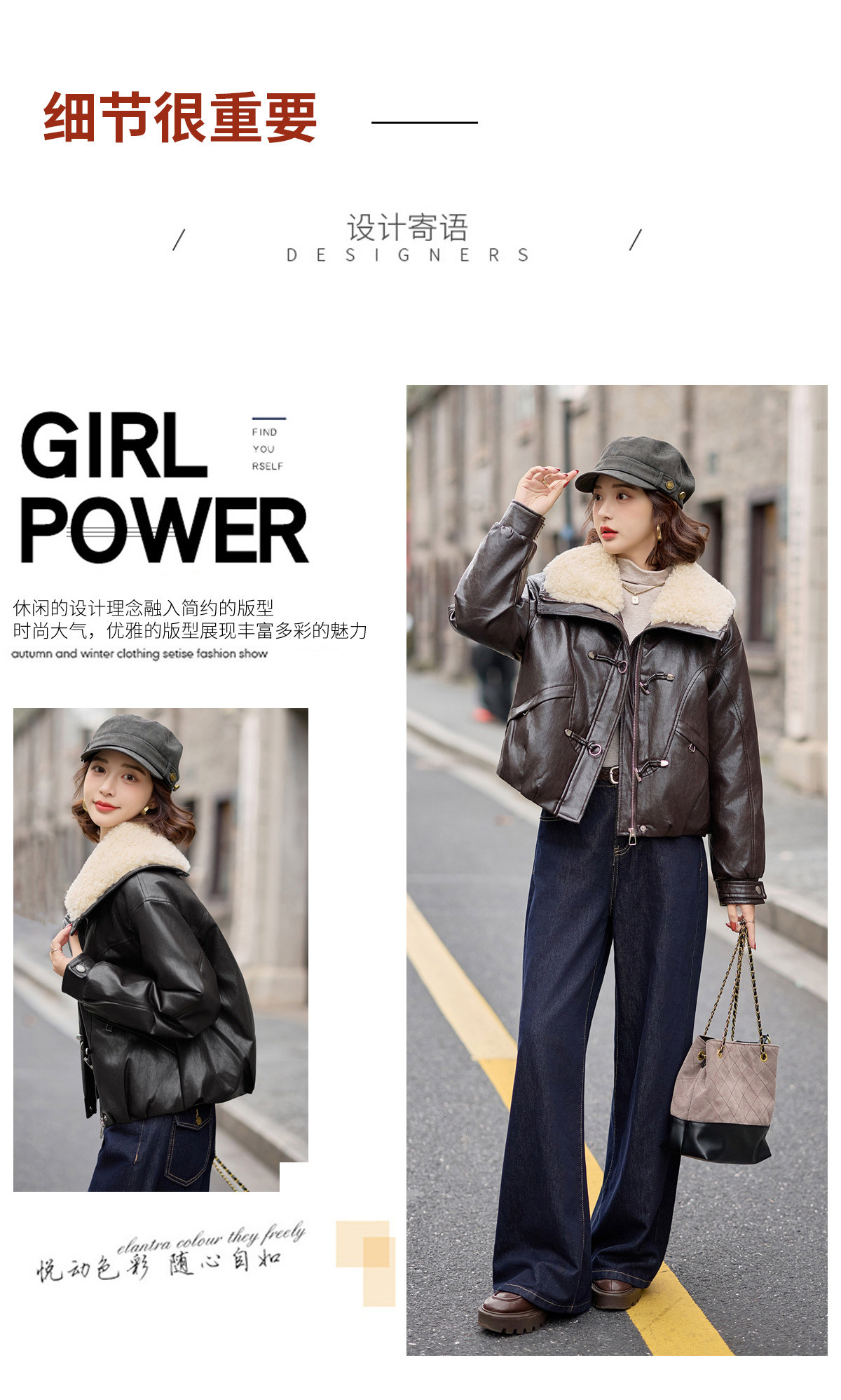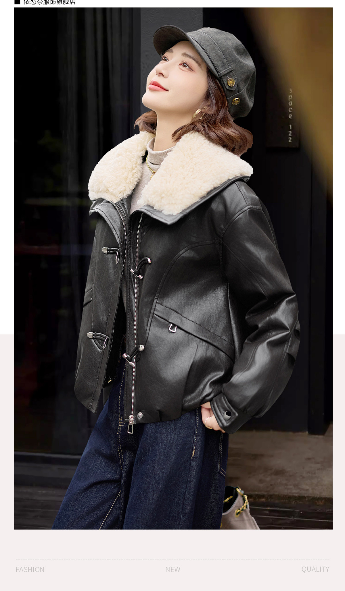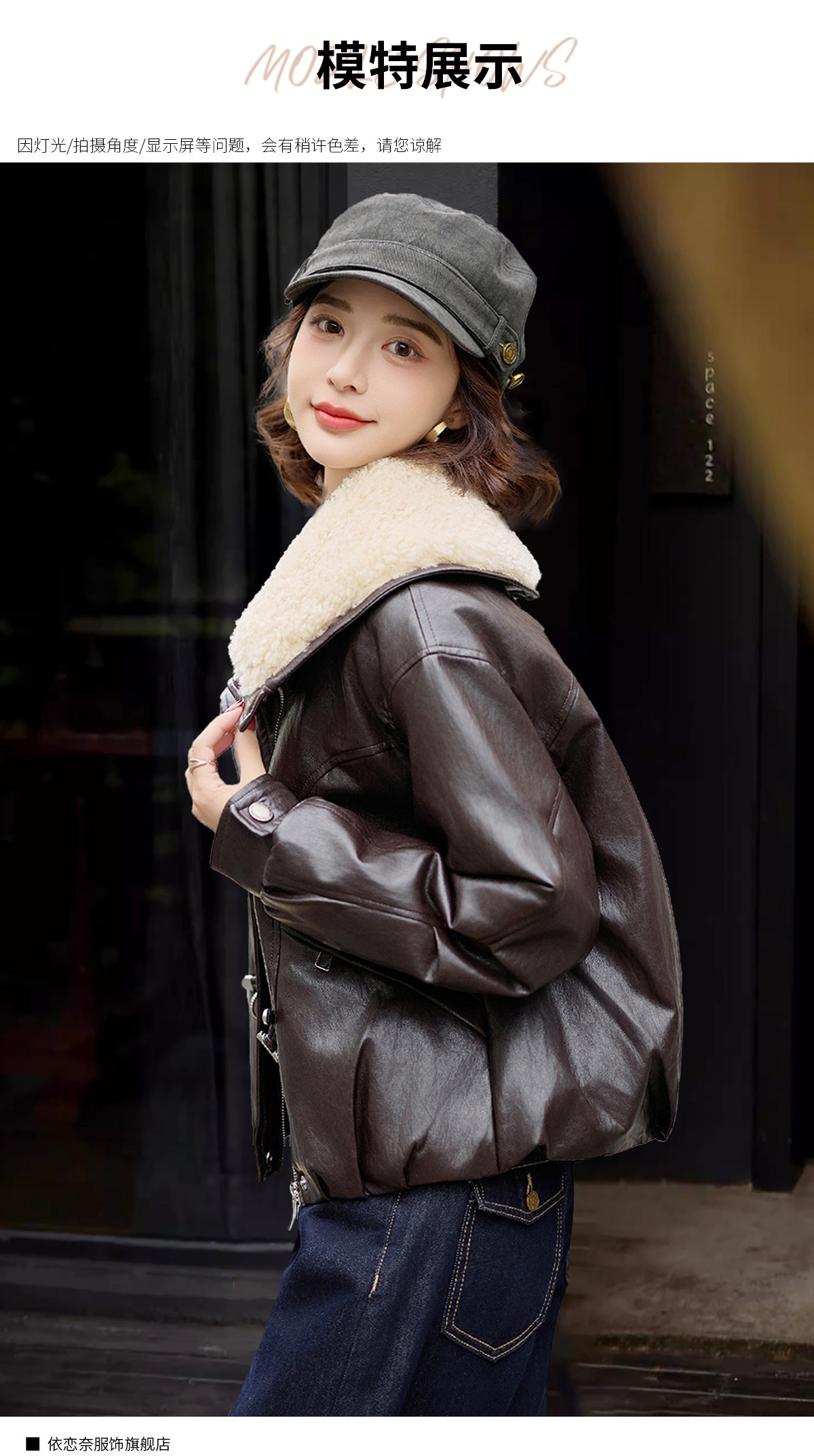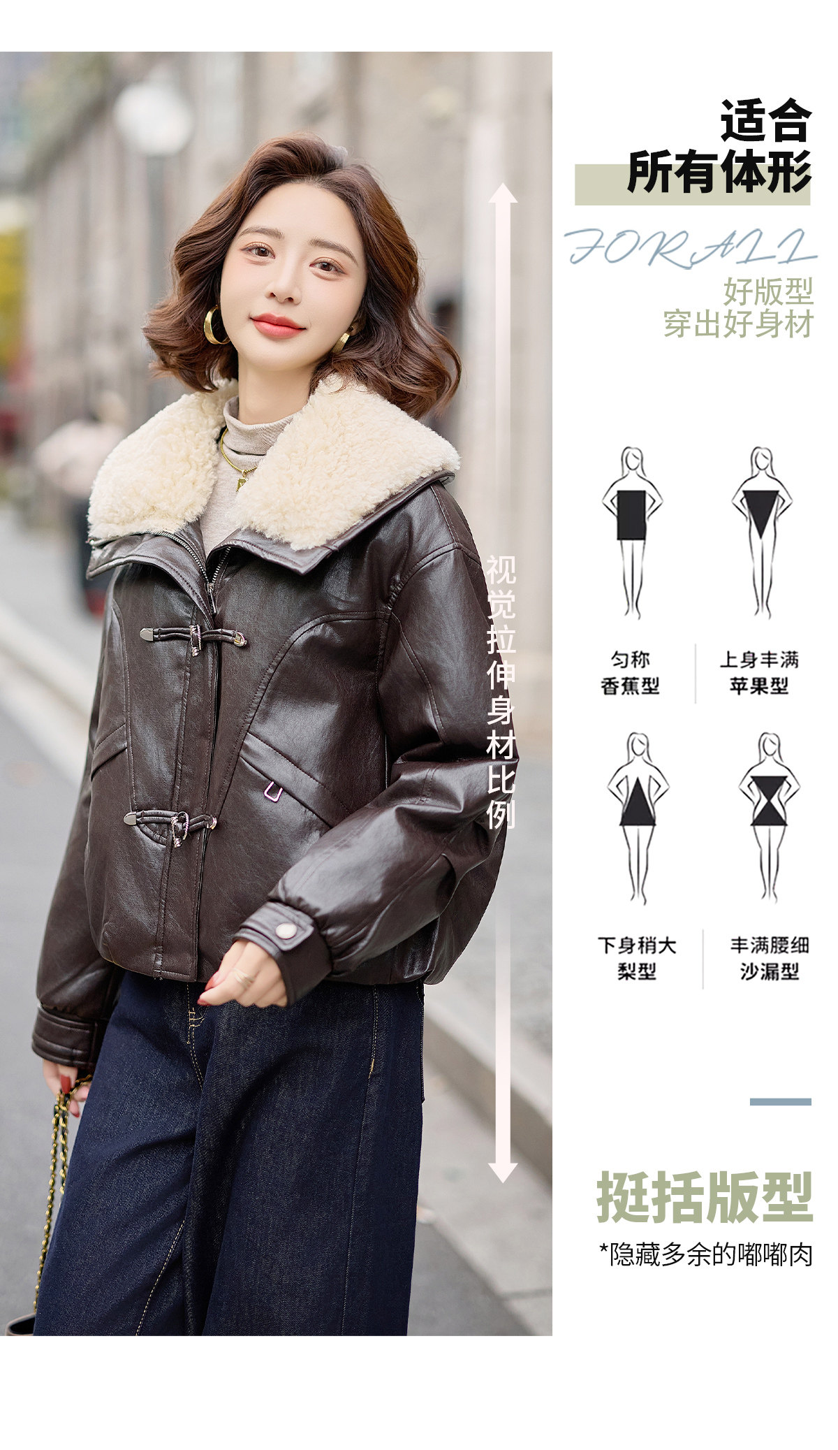 Plush lapel leather down jacket women's short winter 2026 new style fashionable and versatile warm jacket