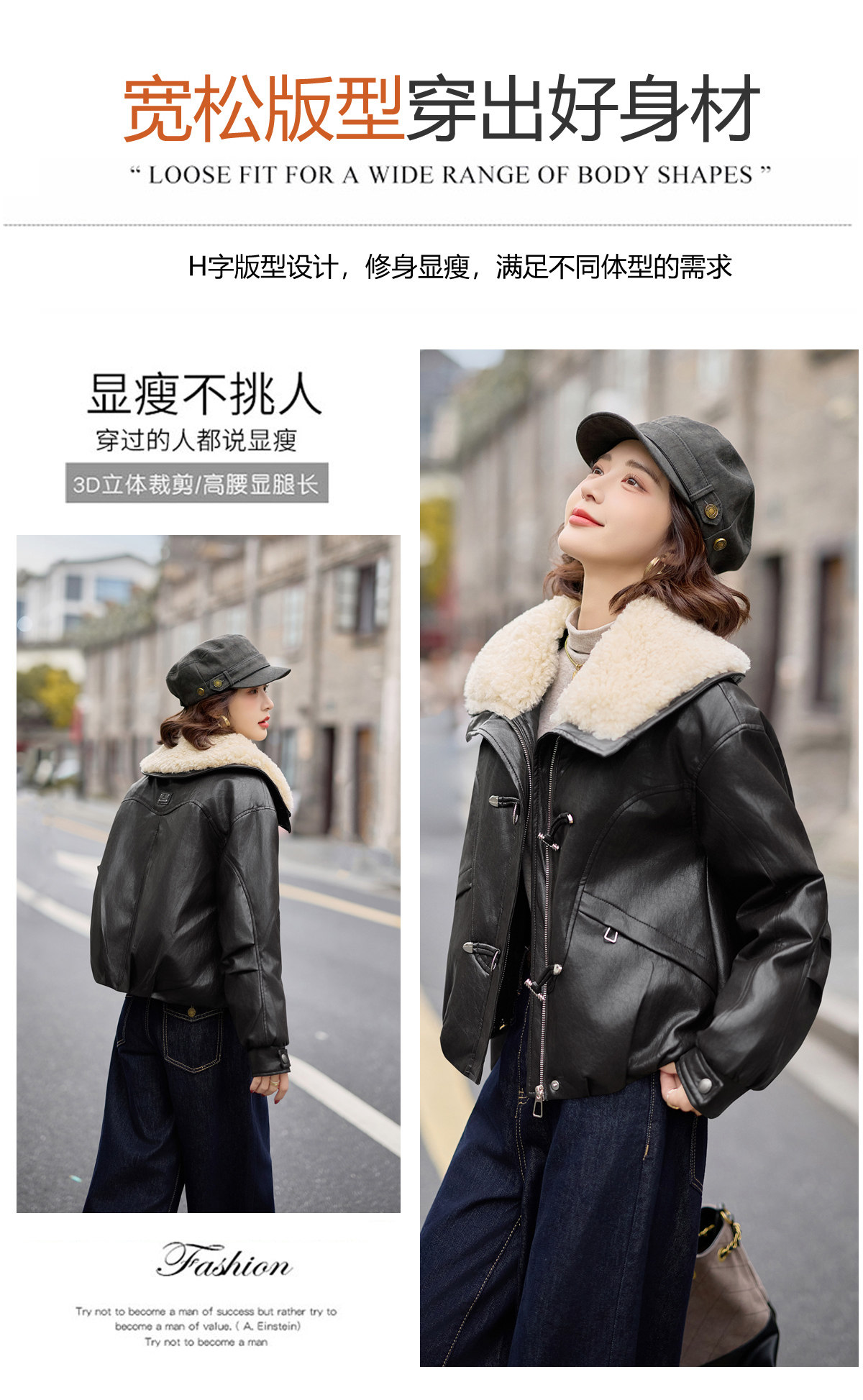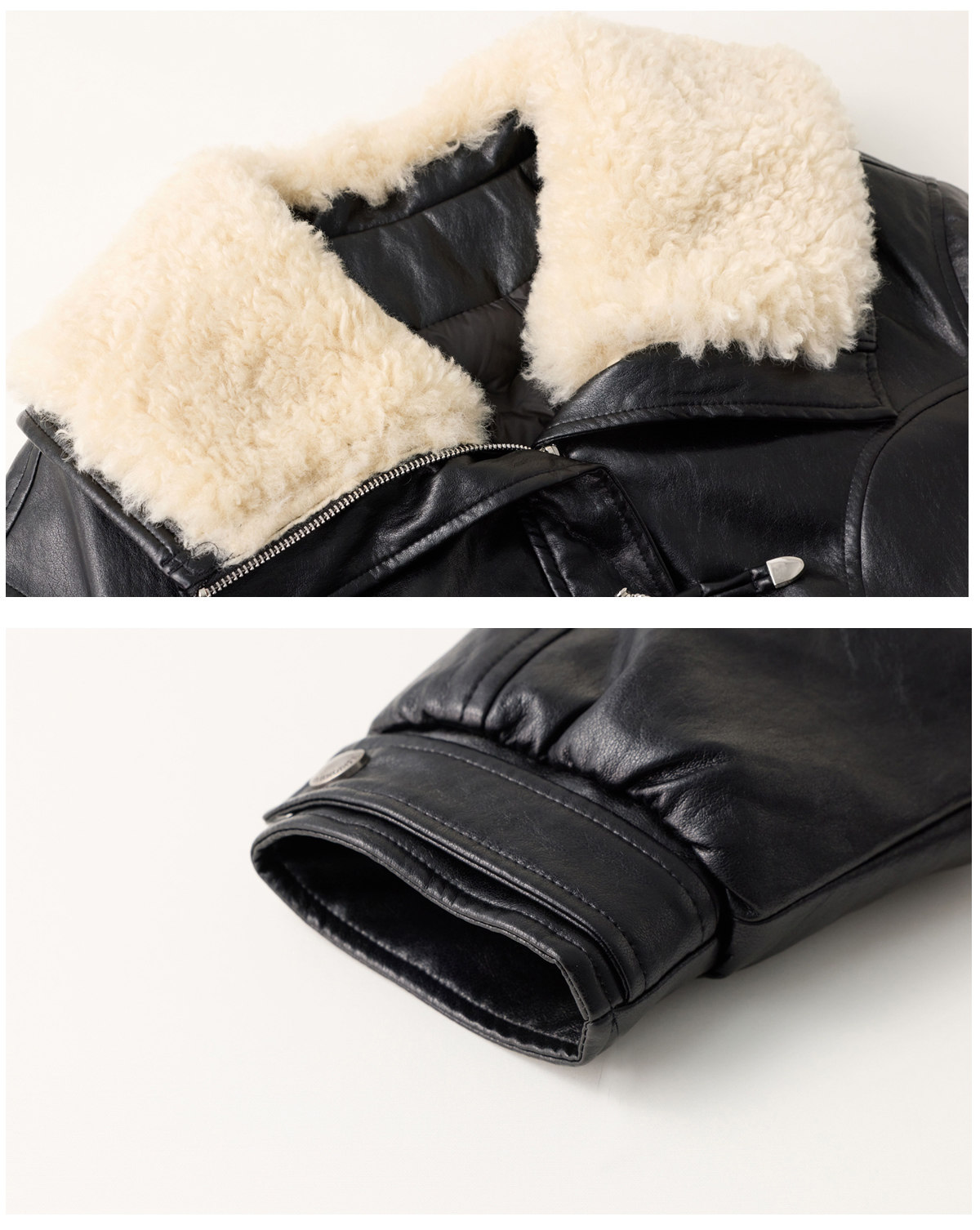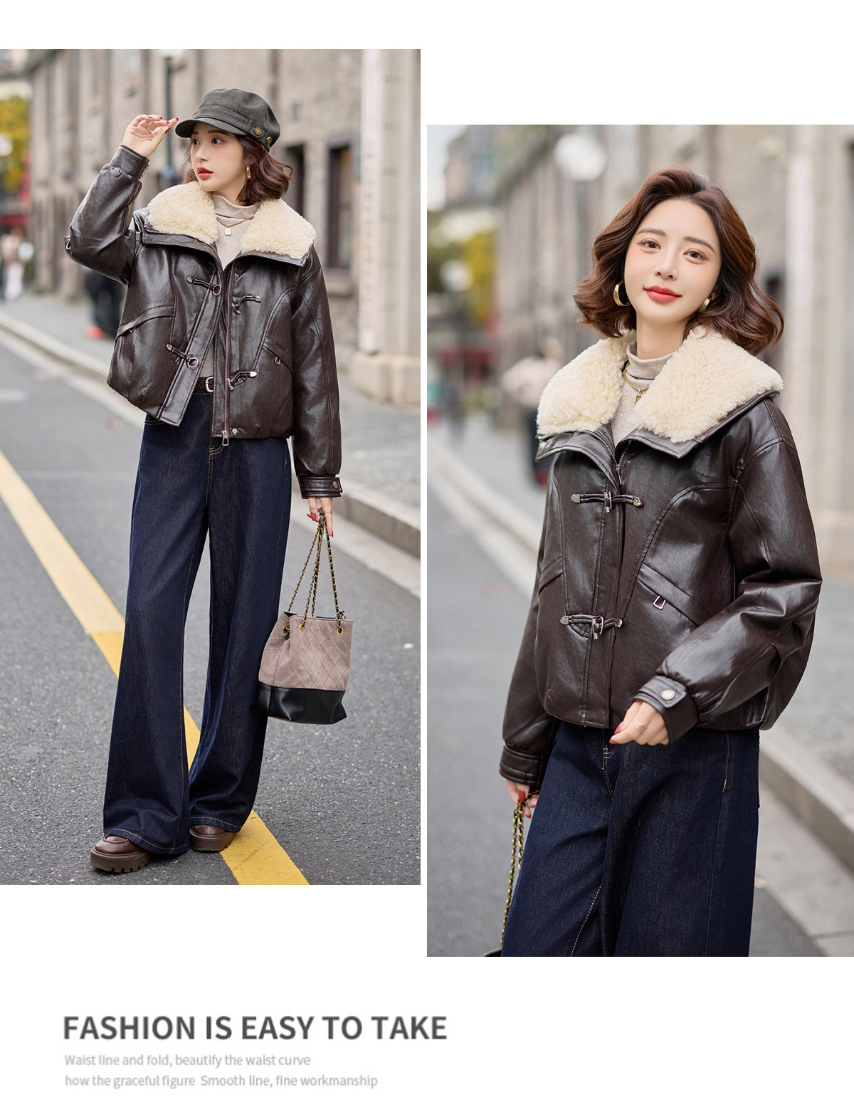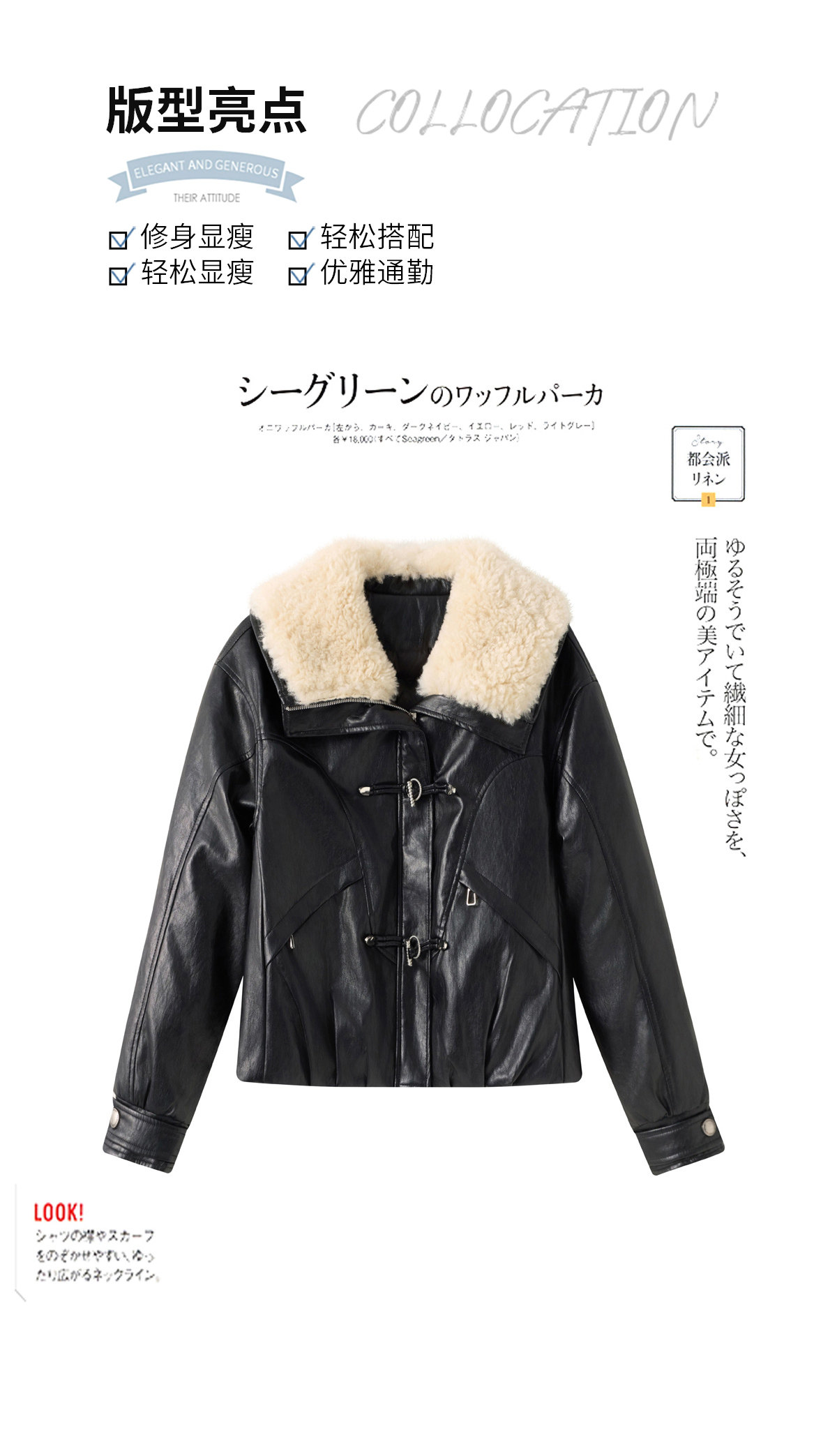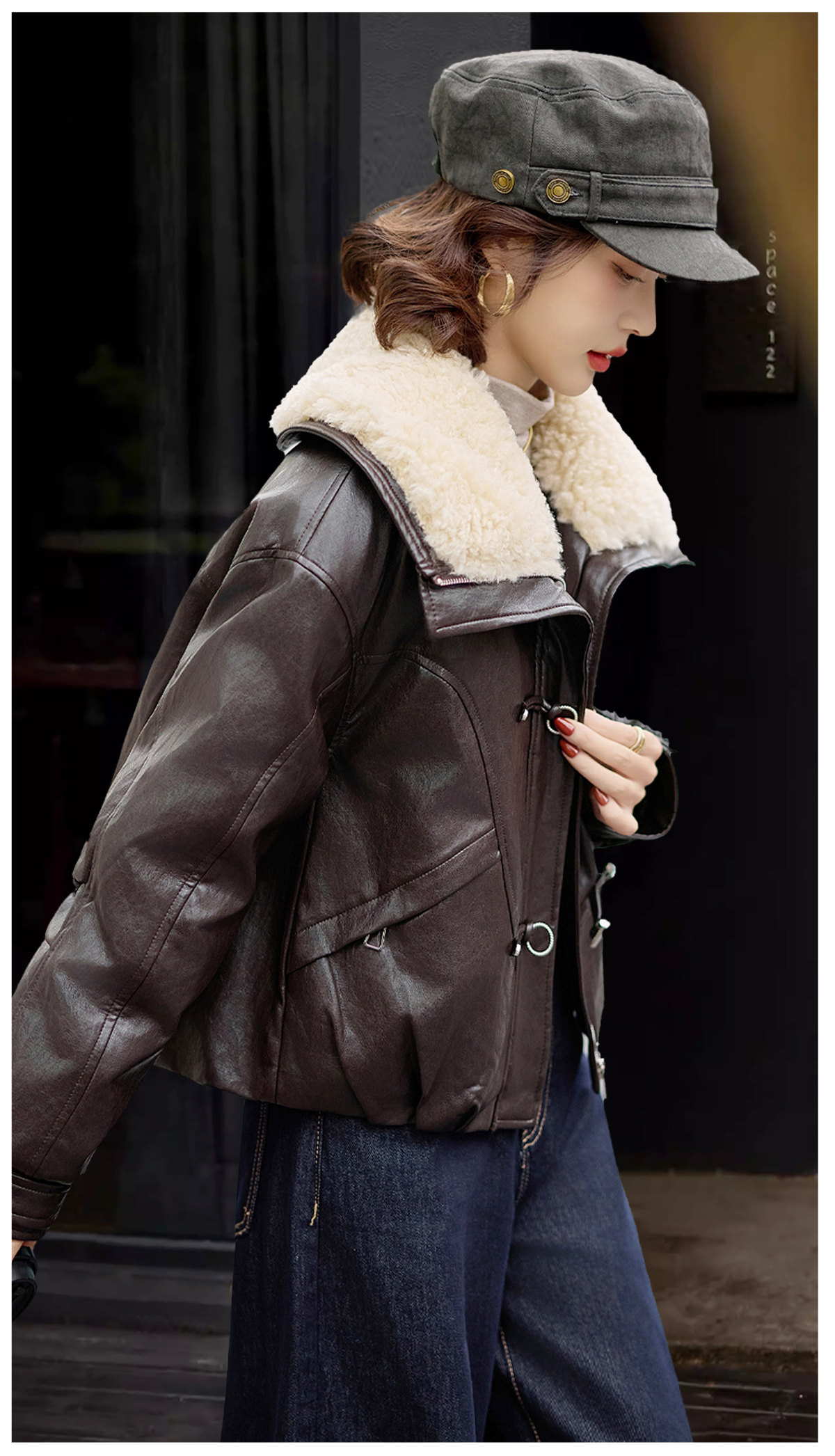 Plush lapel leather down jacket women's short winter 2026 new style fashionable and versatile warm jacket