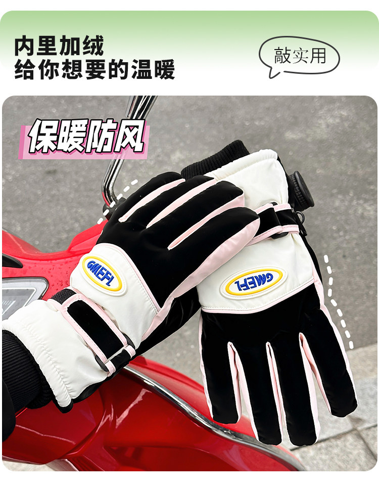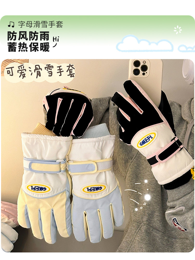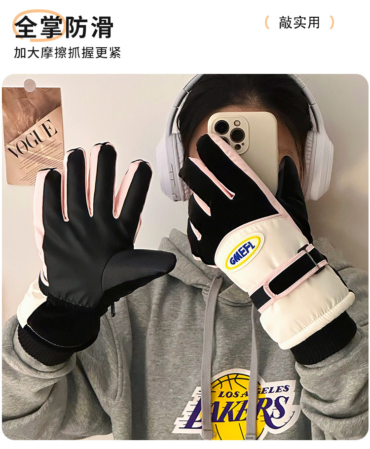 Cute Touch Screen Ski Riding Gloves for Women, Winter Thickened Plush Warm Gloves, Windproof and Waterproof Full-Finger Gloves