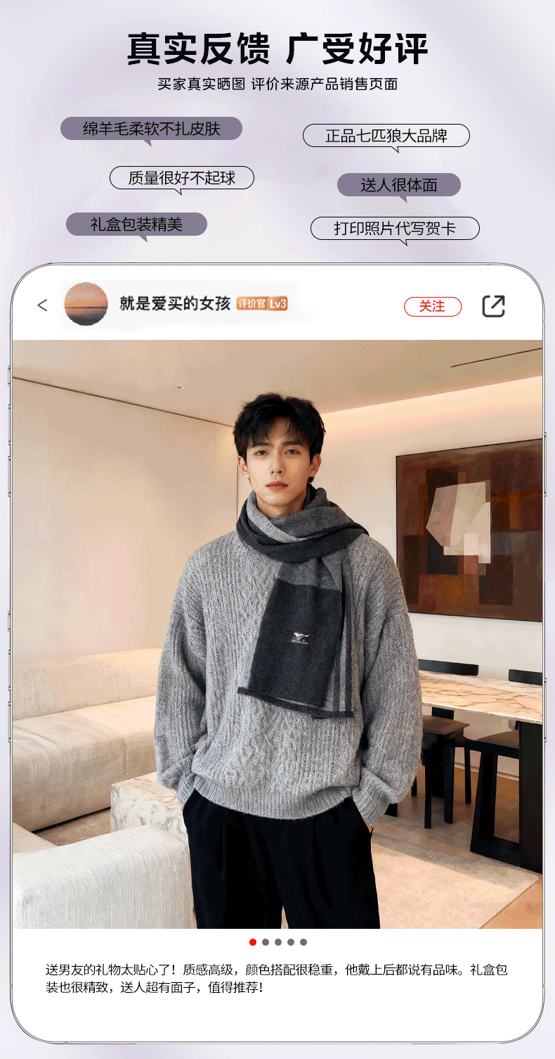 Men's scarf birthday gift 2025 new winter thickened warm wool practical gift for boys New Year