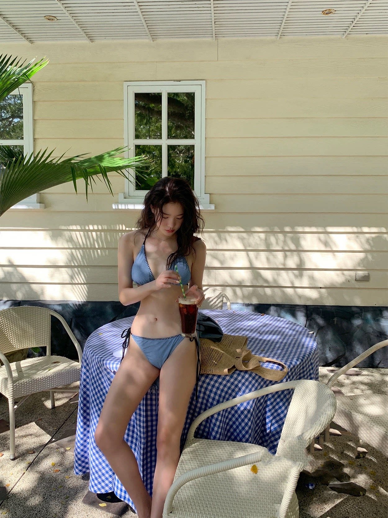 Korean Niche Retro Striped Pure Desire Girl Style Two-Piece Bikini, Sexy and Slimming, Suitable for Small Busts, Vacation, and Hot Spring Swimming