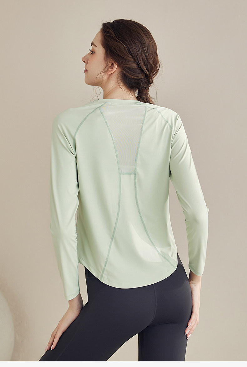 Quick-Drying Sports Tops for Women, Loose Slimming Long-Sleeved T-Shirts, Yoga Clothes, Breathable Mesh Running Training Fitness Clothes, Autumn