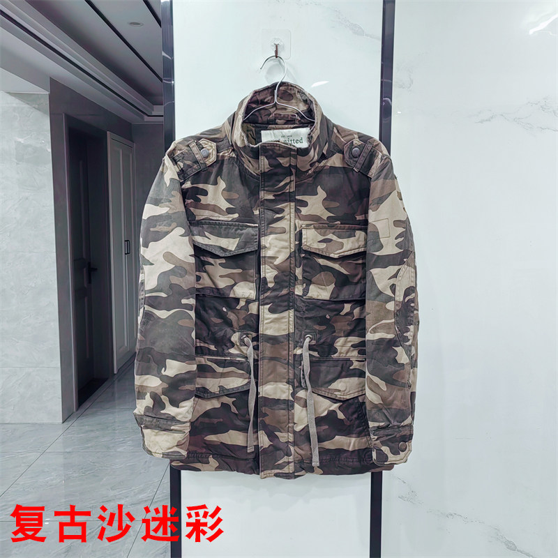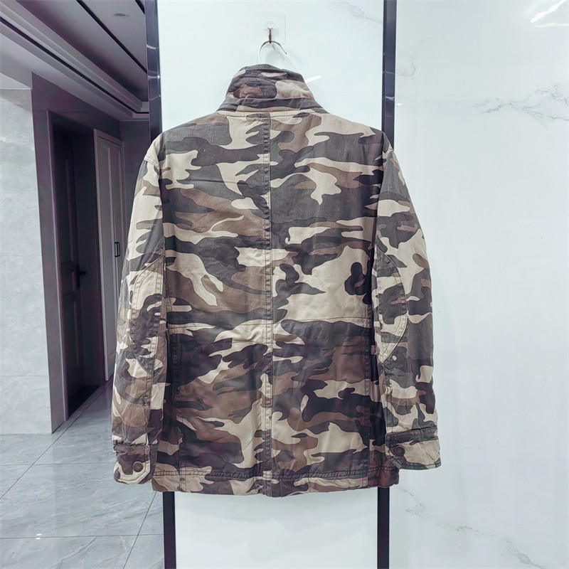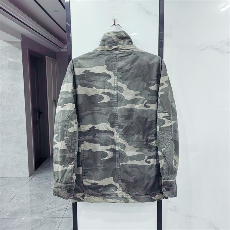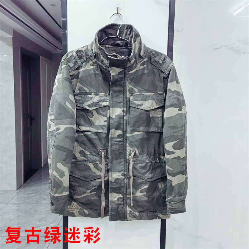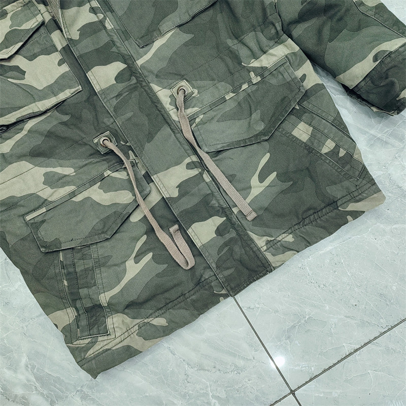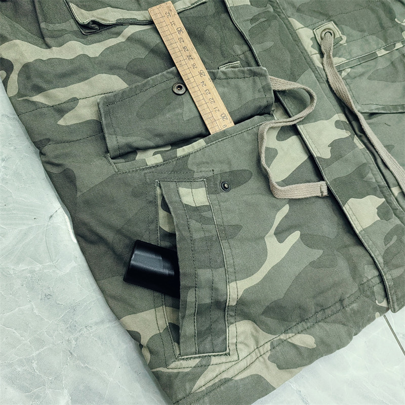 Washed retro winter thickened warm camouflage cotton coat men's loose casual multi-pocket workwear cotton coat