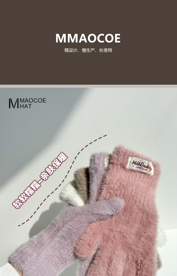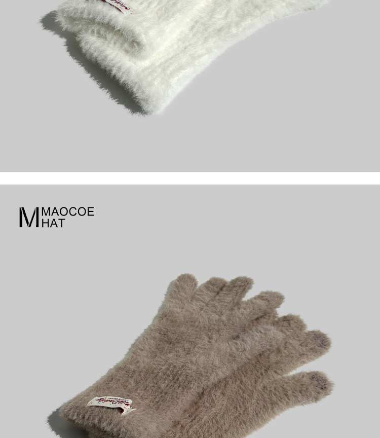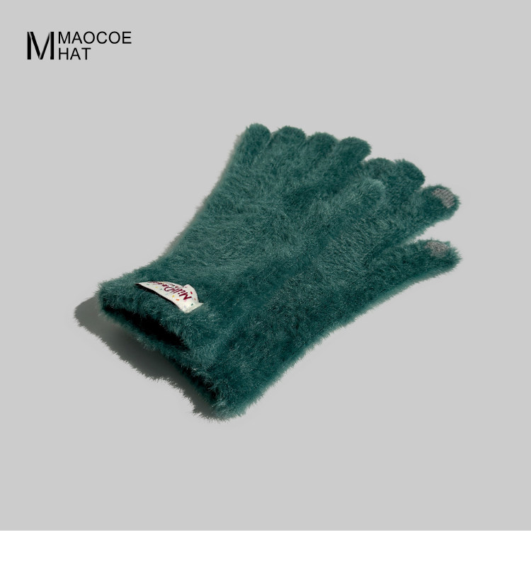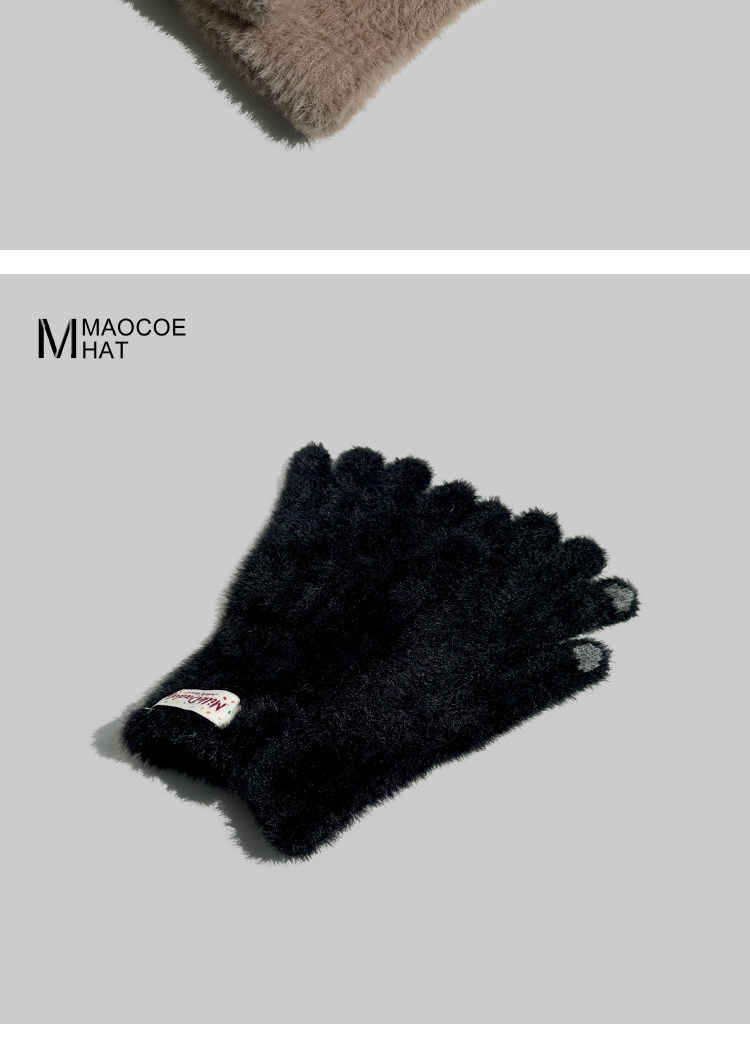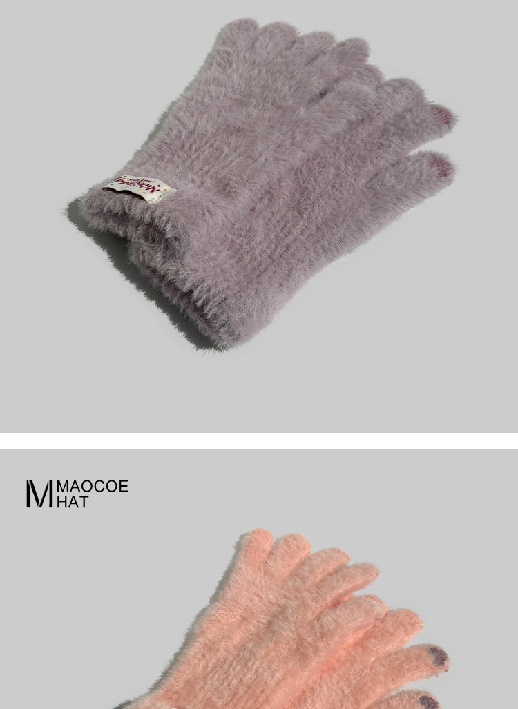 2025 New Plush Gloves for Women Winter Korean Version Trendy Finger Playing Mobile Phone Touch Screen Outdoor Cold-proof Long Gloves