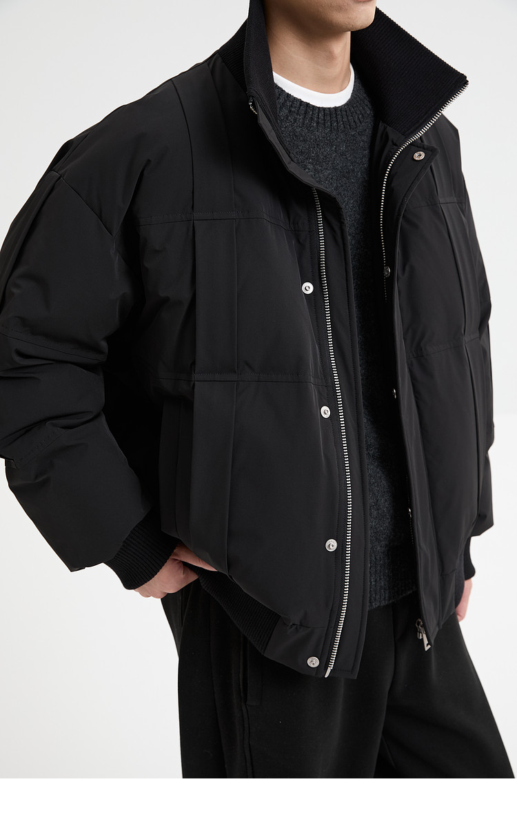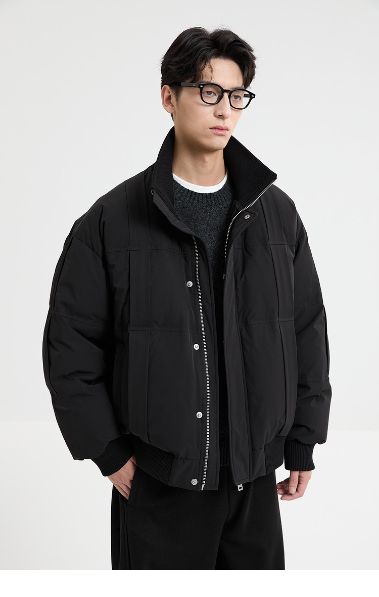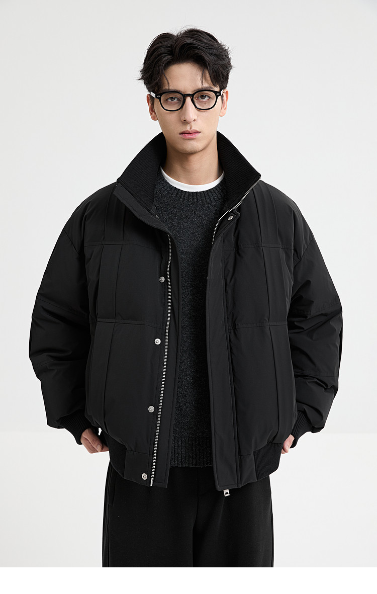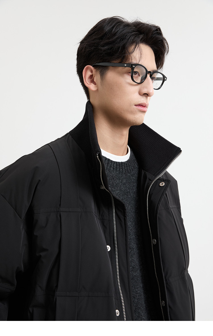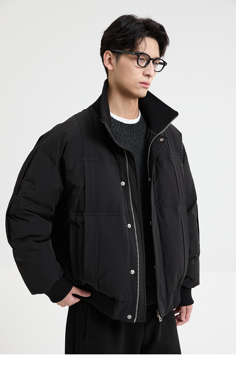 Black Zeming knitted splicing down jacket men's 2025 winter new 90 velvet warm stand-up collar design jacket