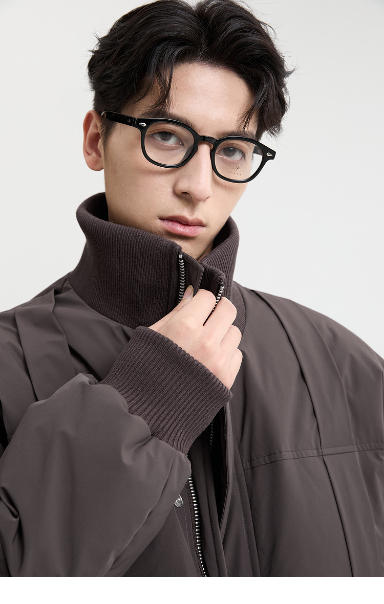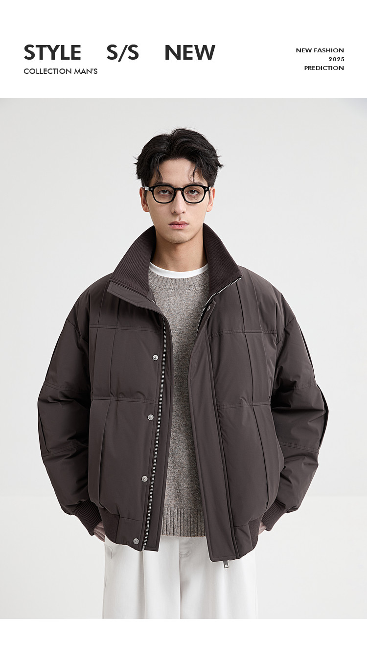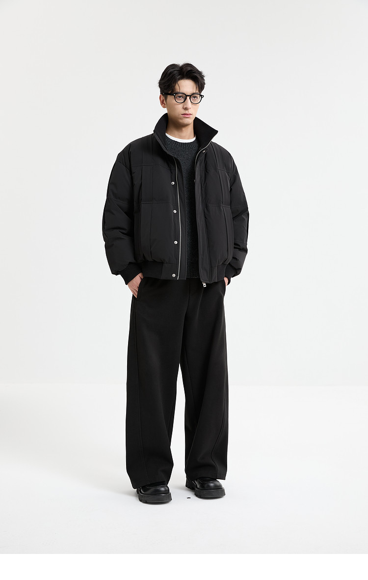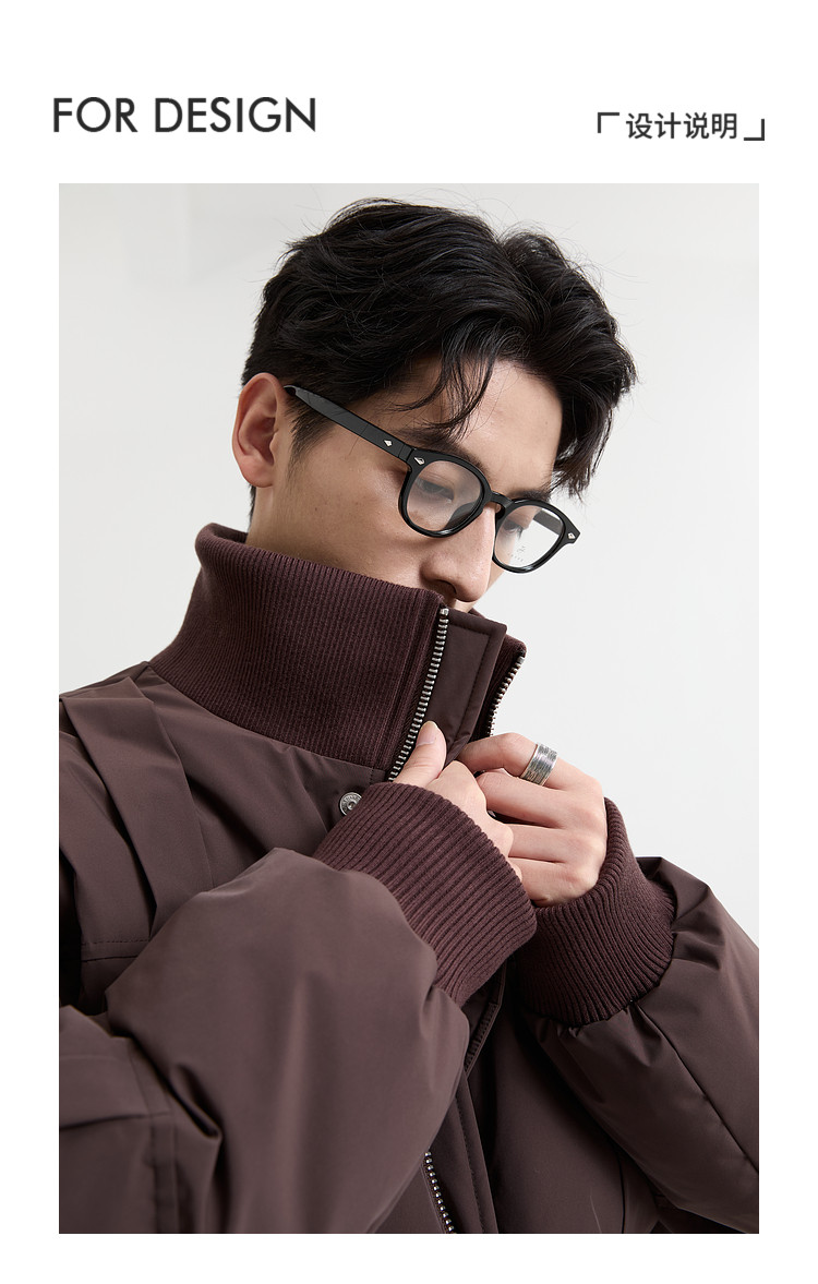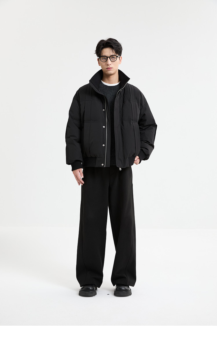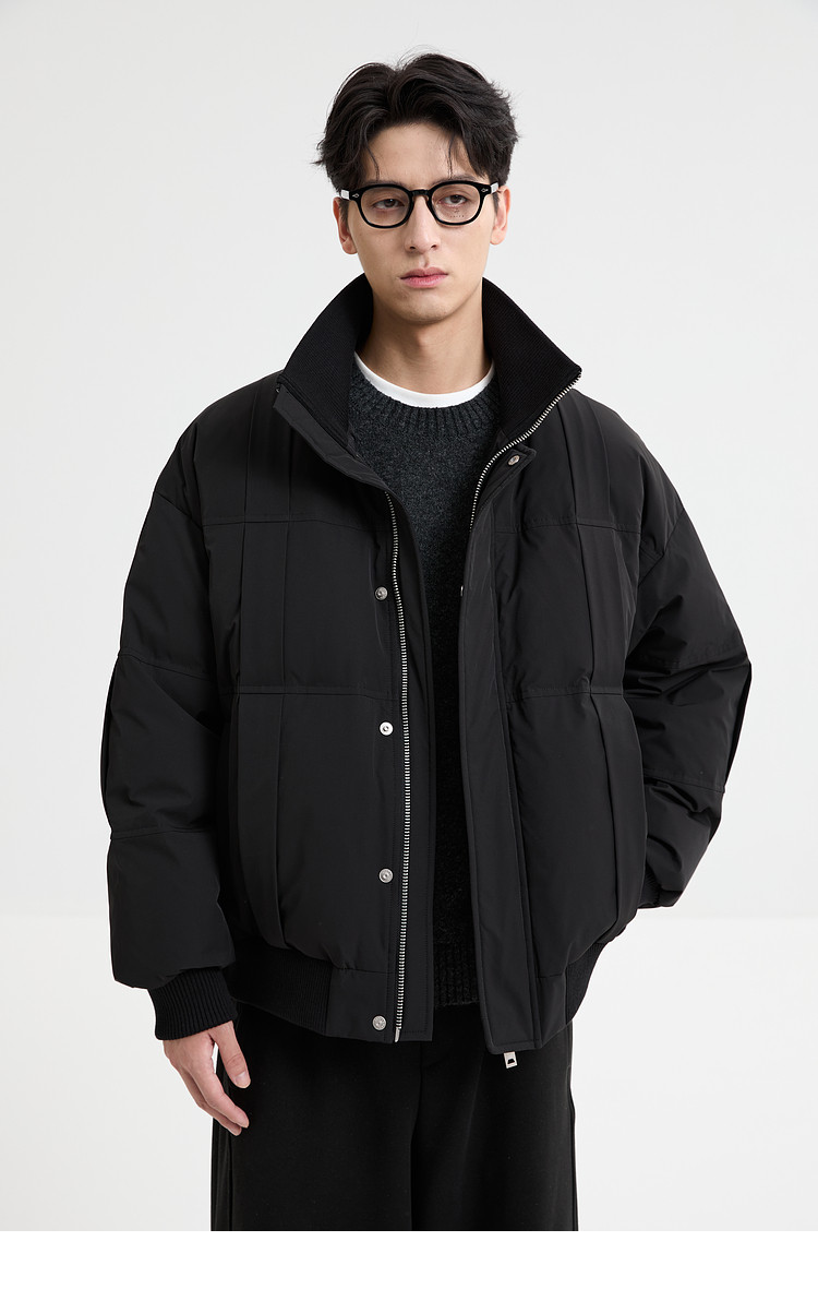 Black Zeming knitted splicing down jacket men's 2025 winter new 90 velvet warm stand-up collar design jacket