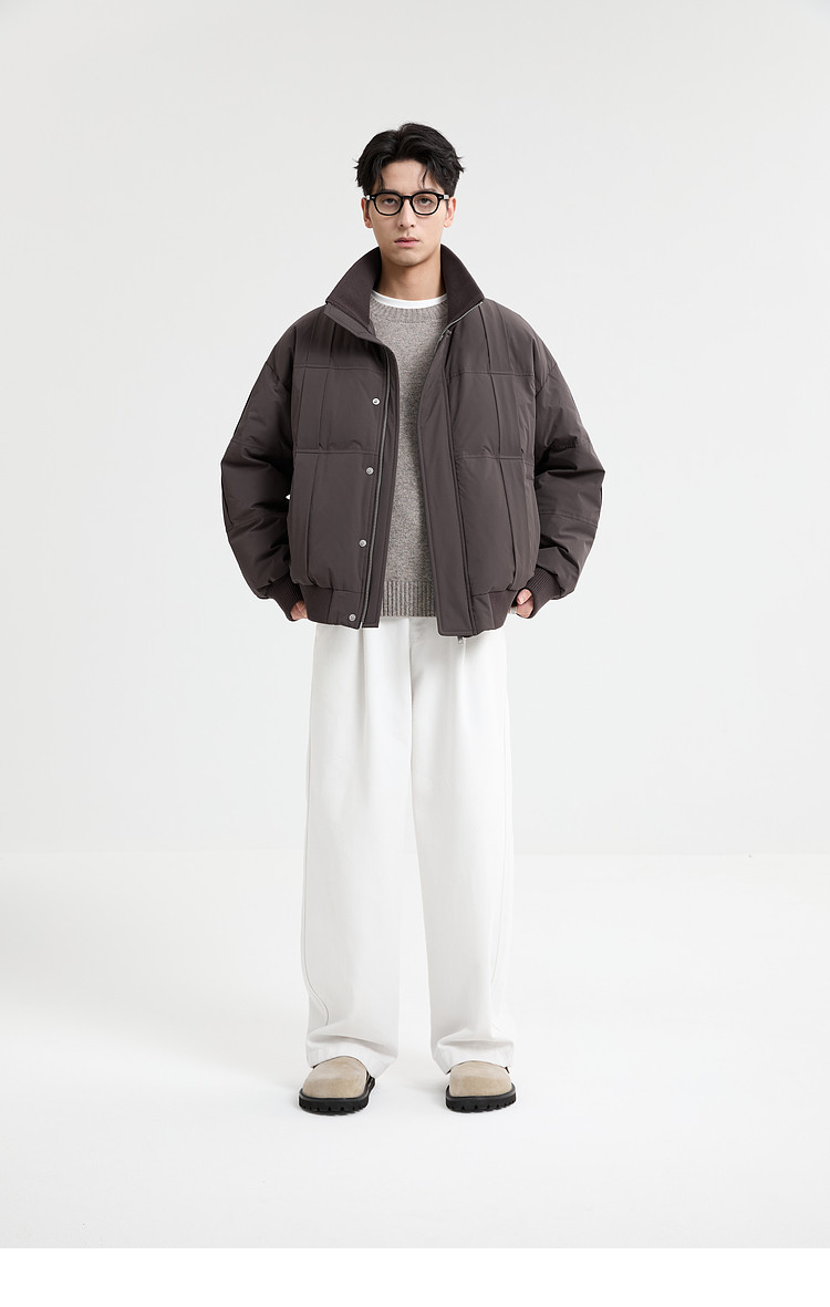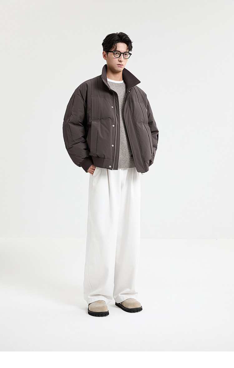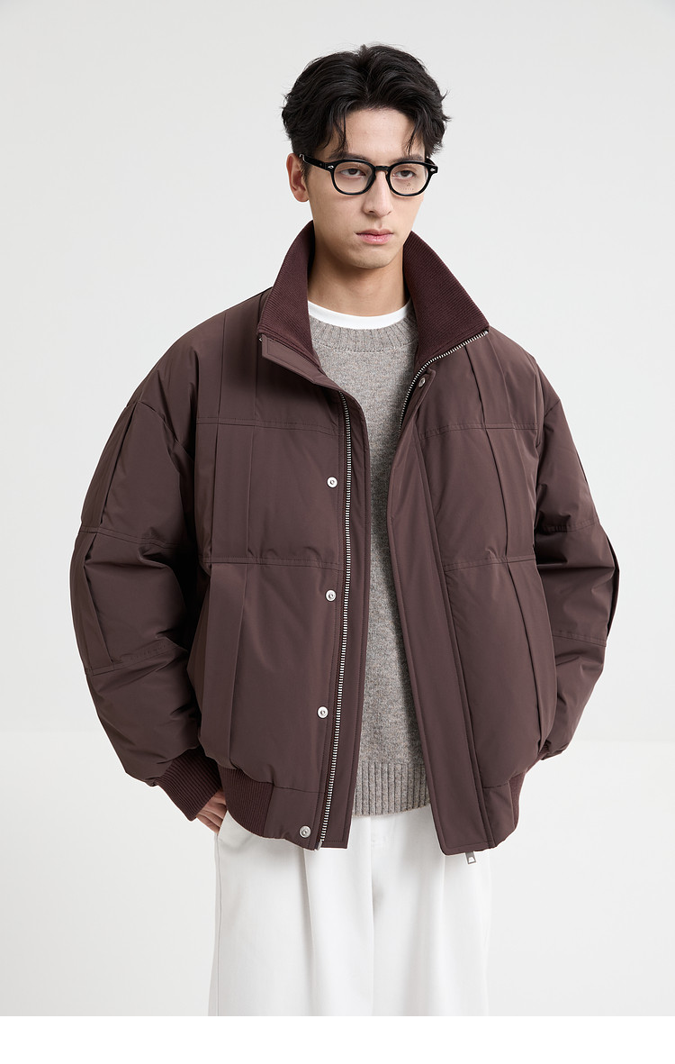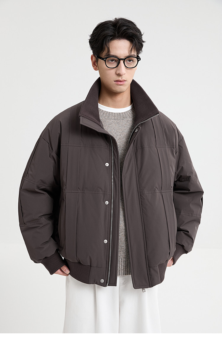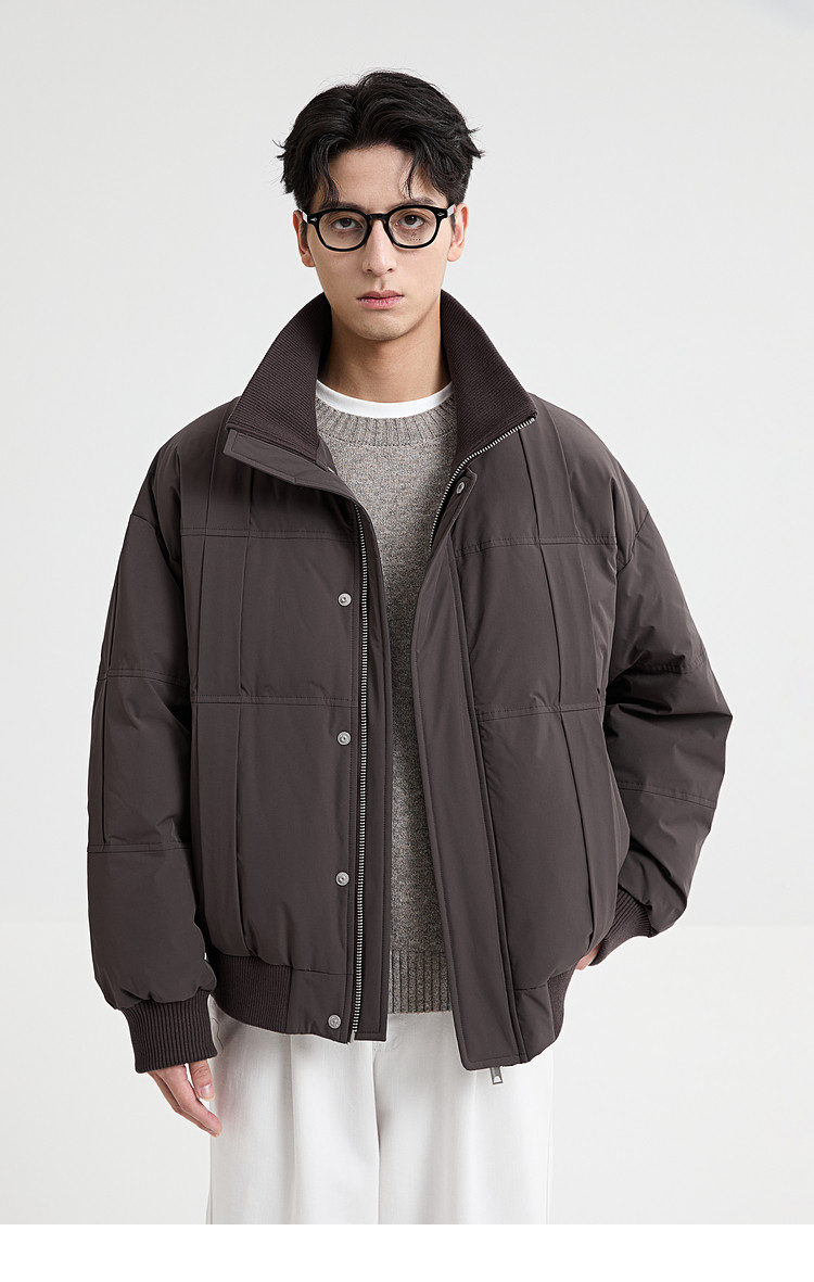 Black Zeming knitted splicing down jacket men's 2025 winter new 90 velvet warm stand-up collar design jacket