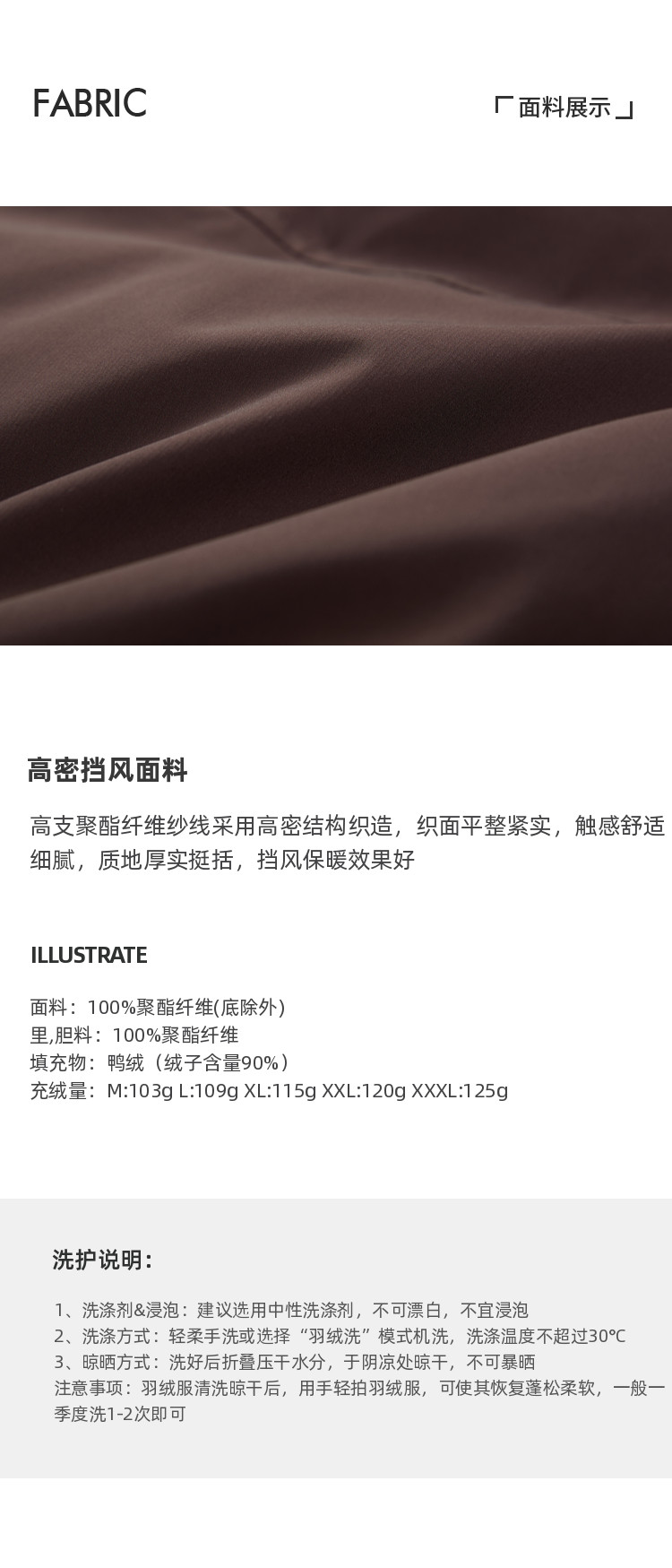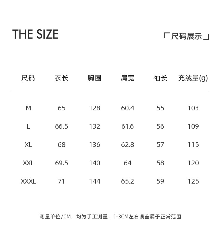 Fleece filling amount 103-125g
