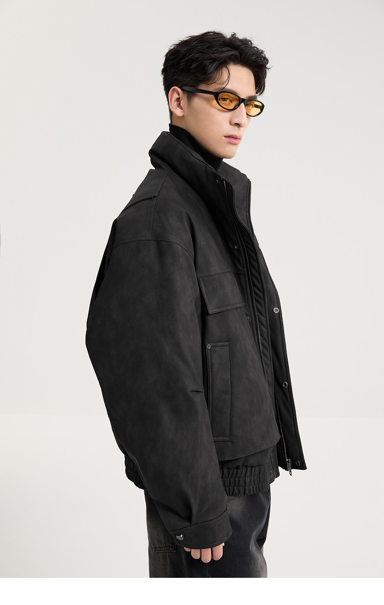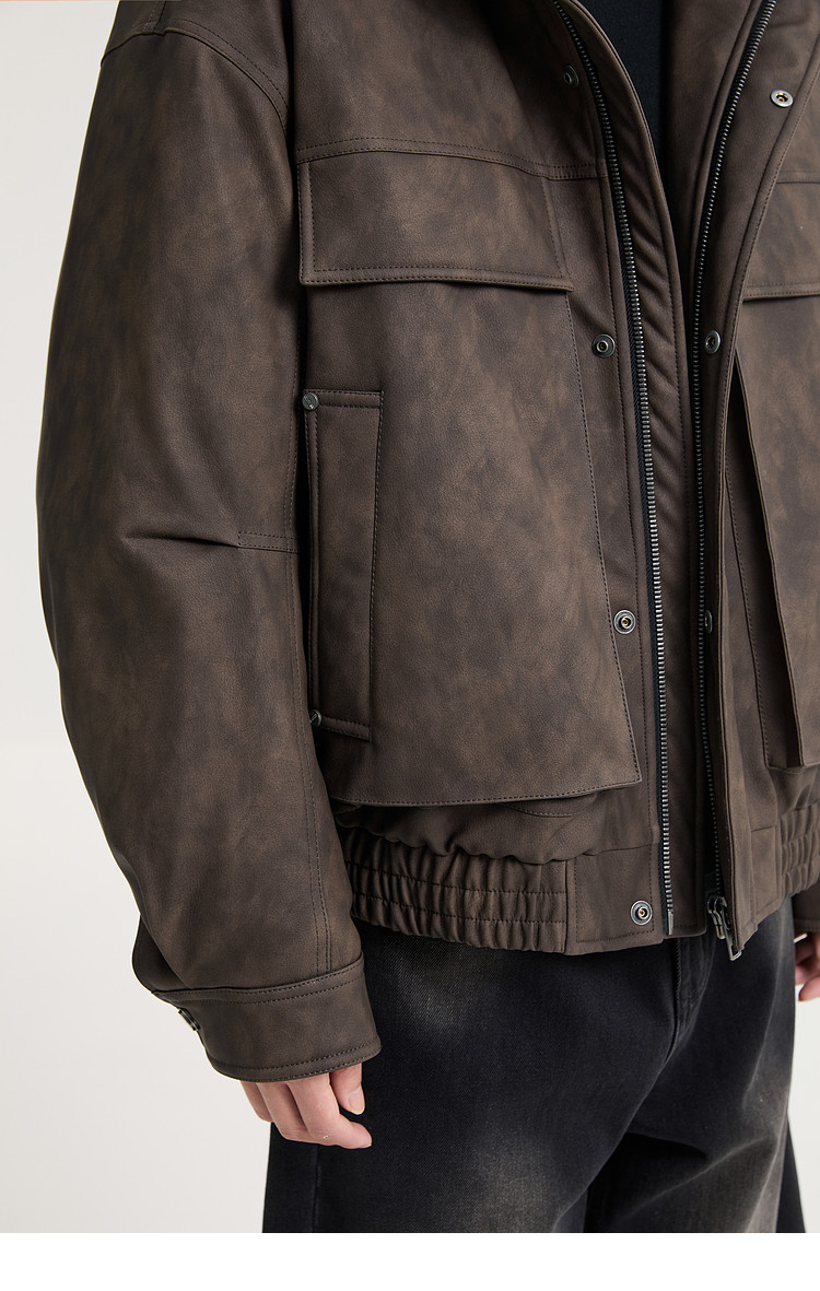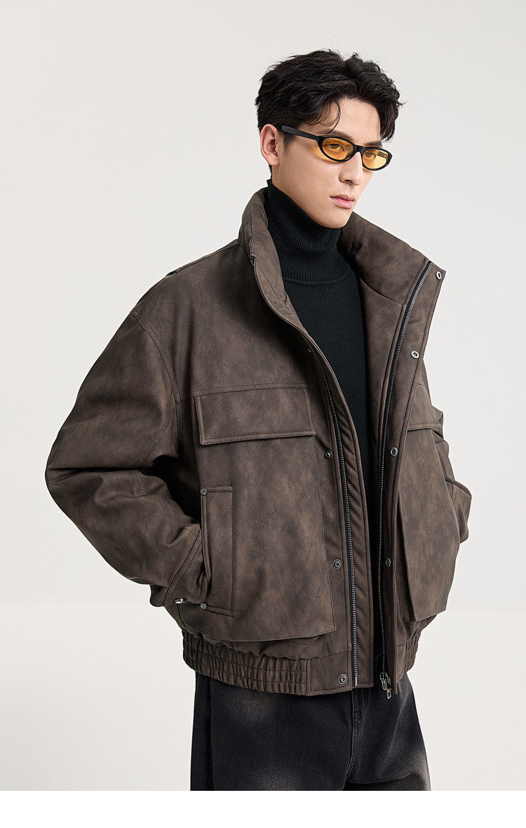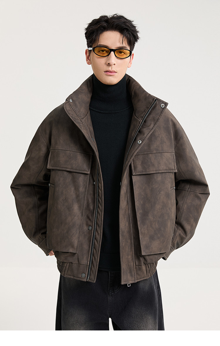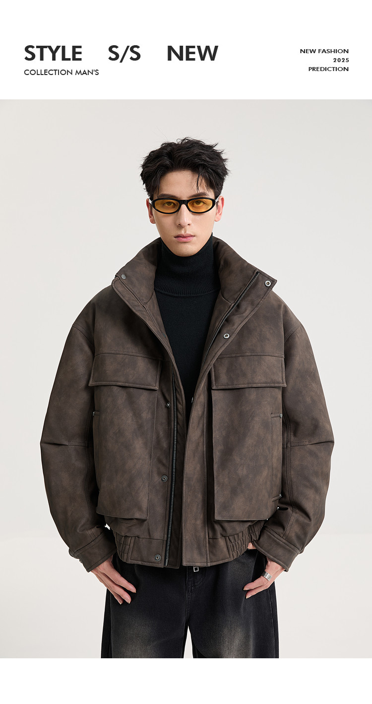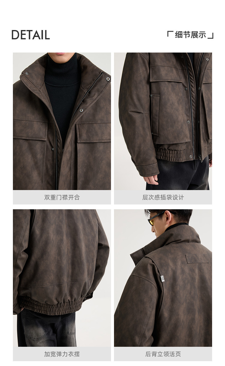 Men's jacket style light down jacket 2025 winter new multi-pocket pu leather motorcycle jacket