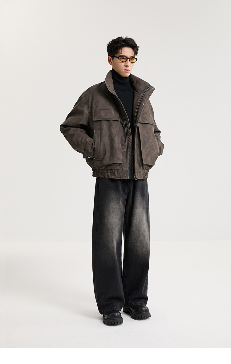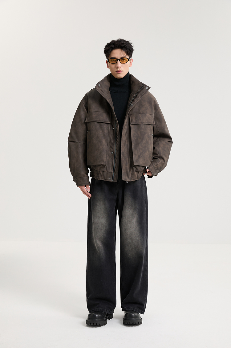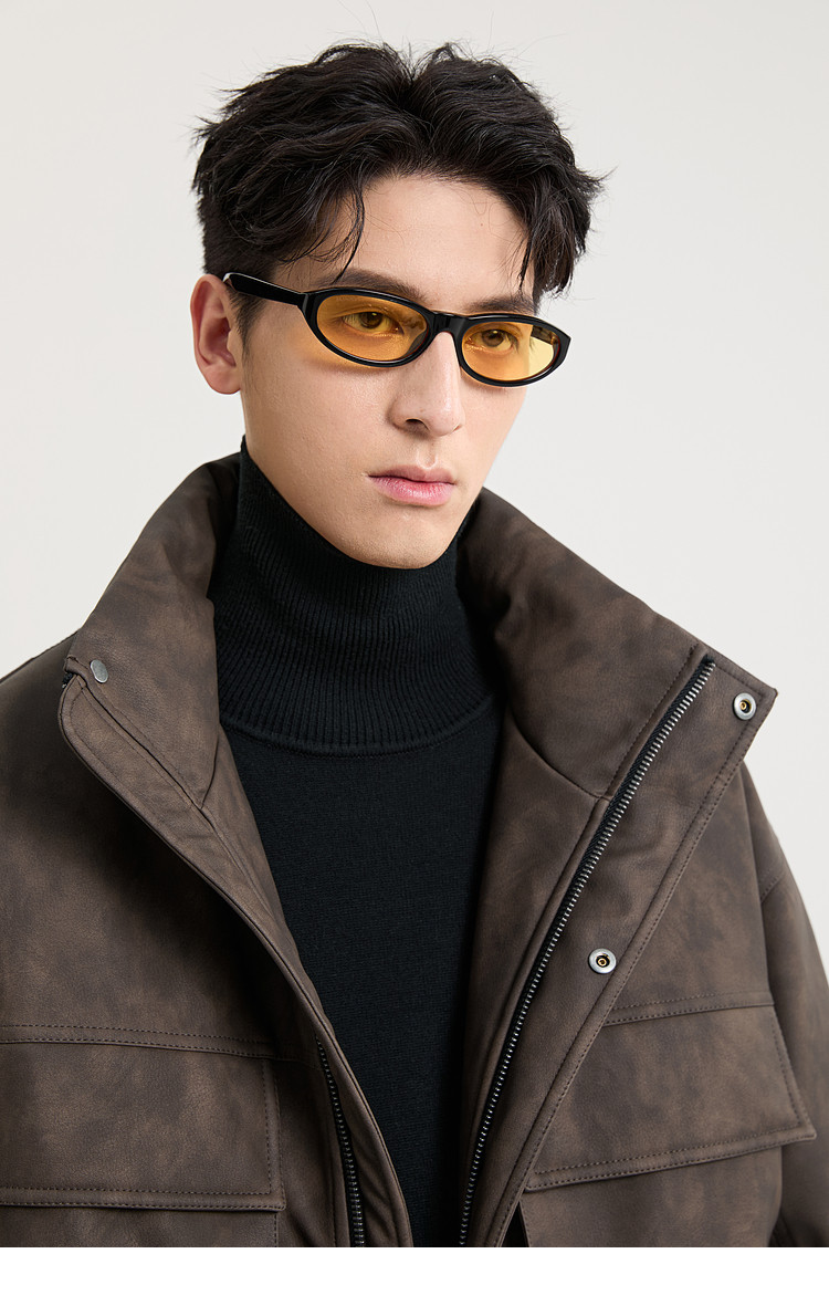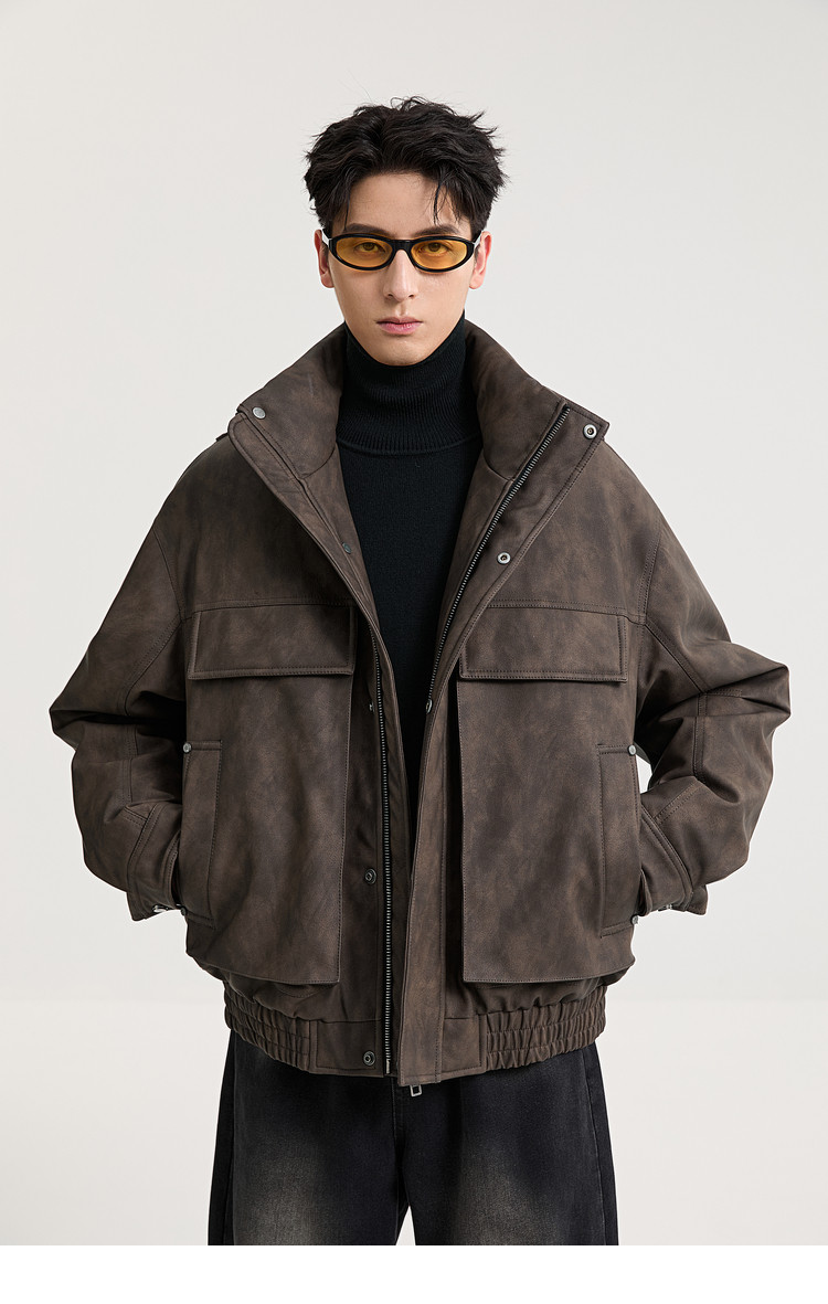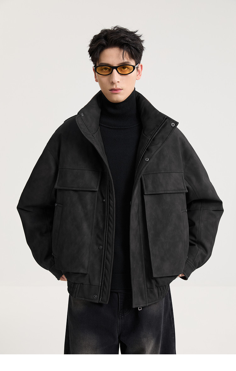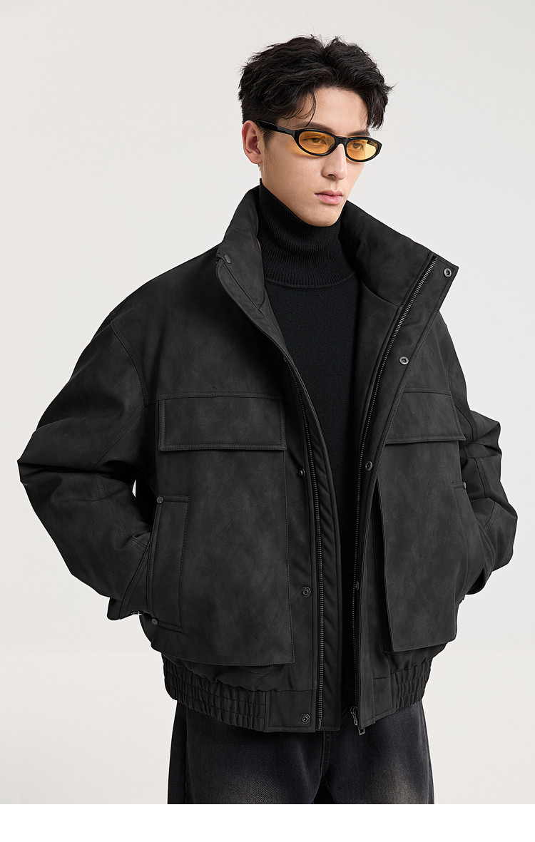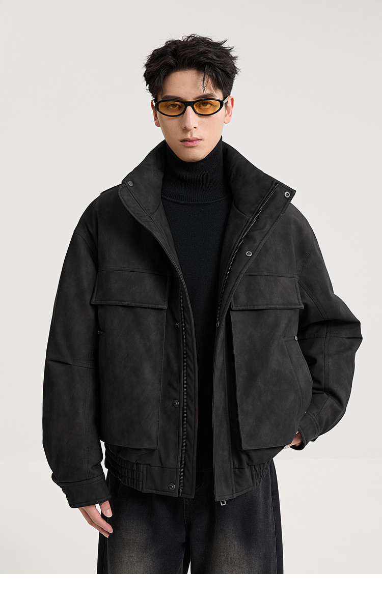 Men's jacket style light down jacket 2025 winter new multi-pocket pu leather motorcycle jacket