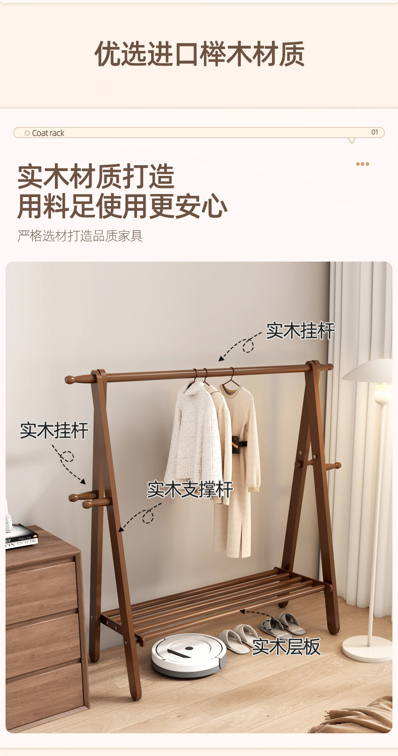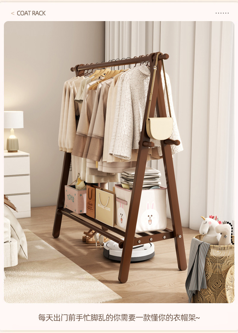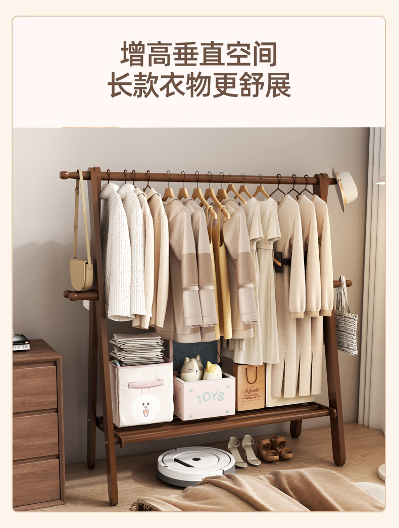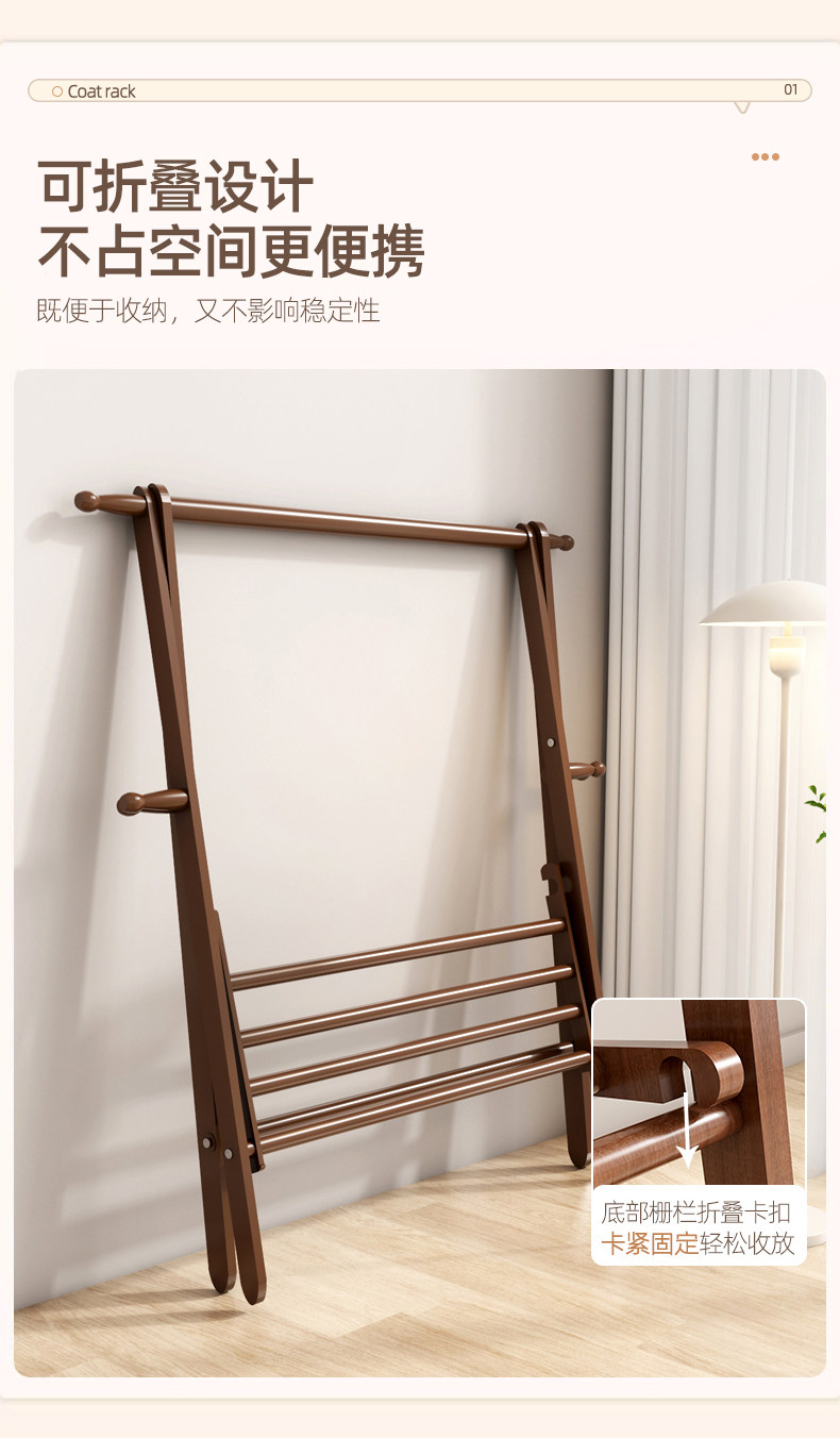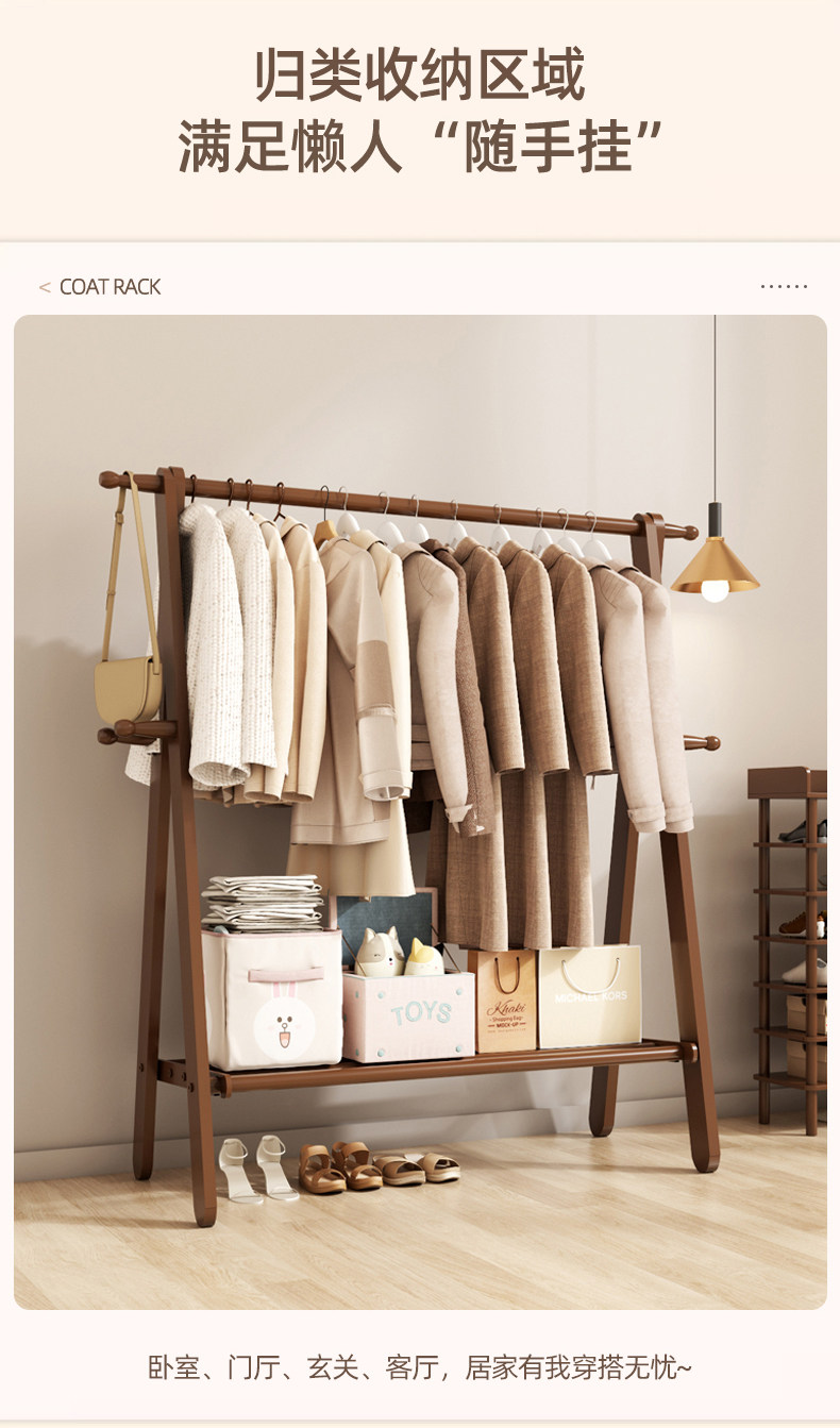 Solid wood clothes hanger floor-standing bedroom clothes hanger home living room clothes storage coat rack folding room clothes drying rack