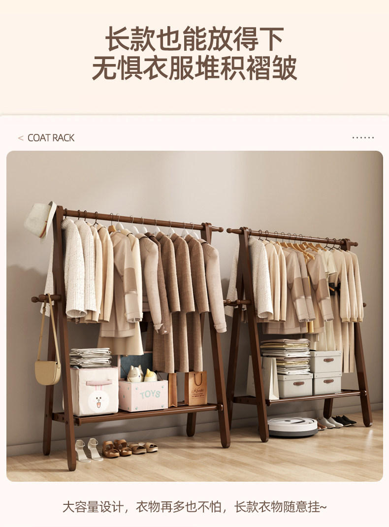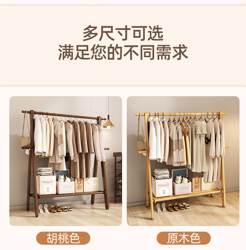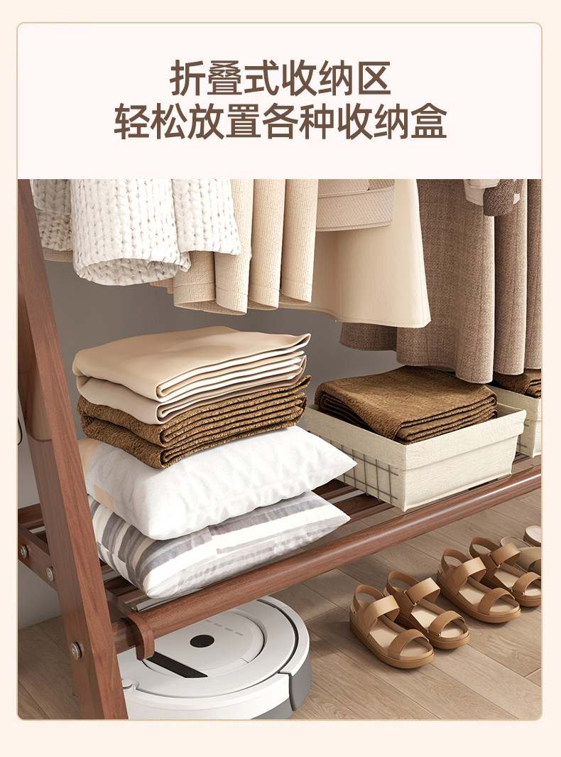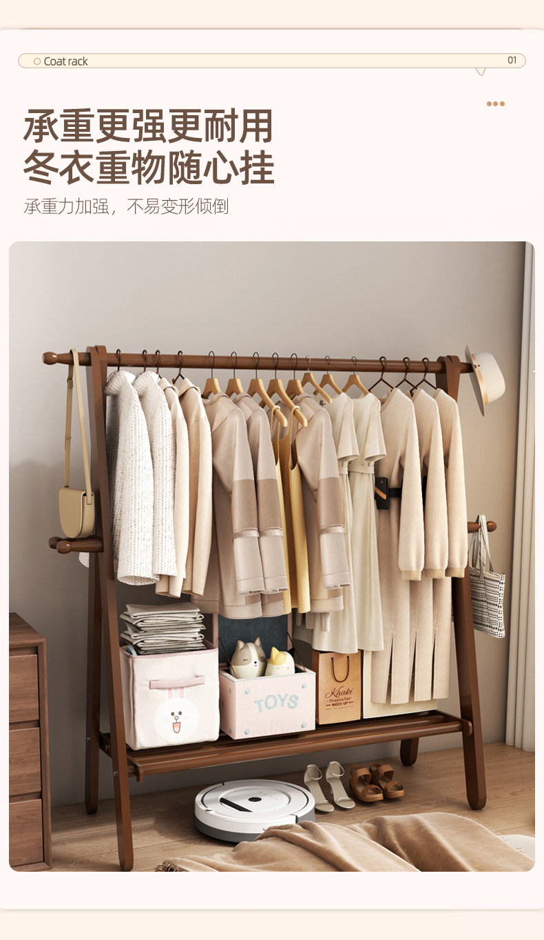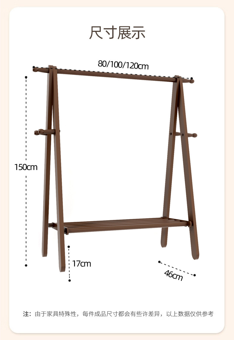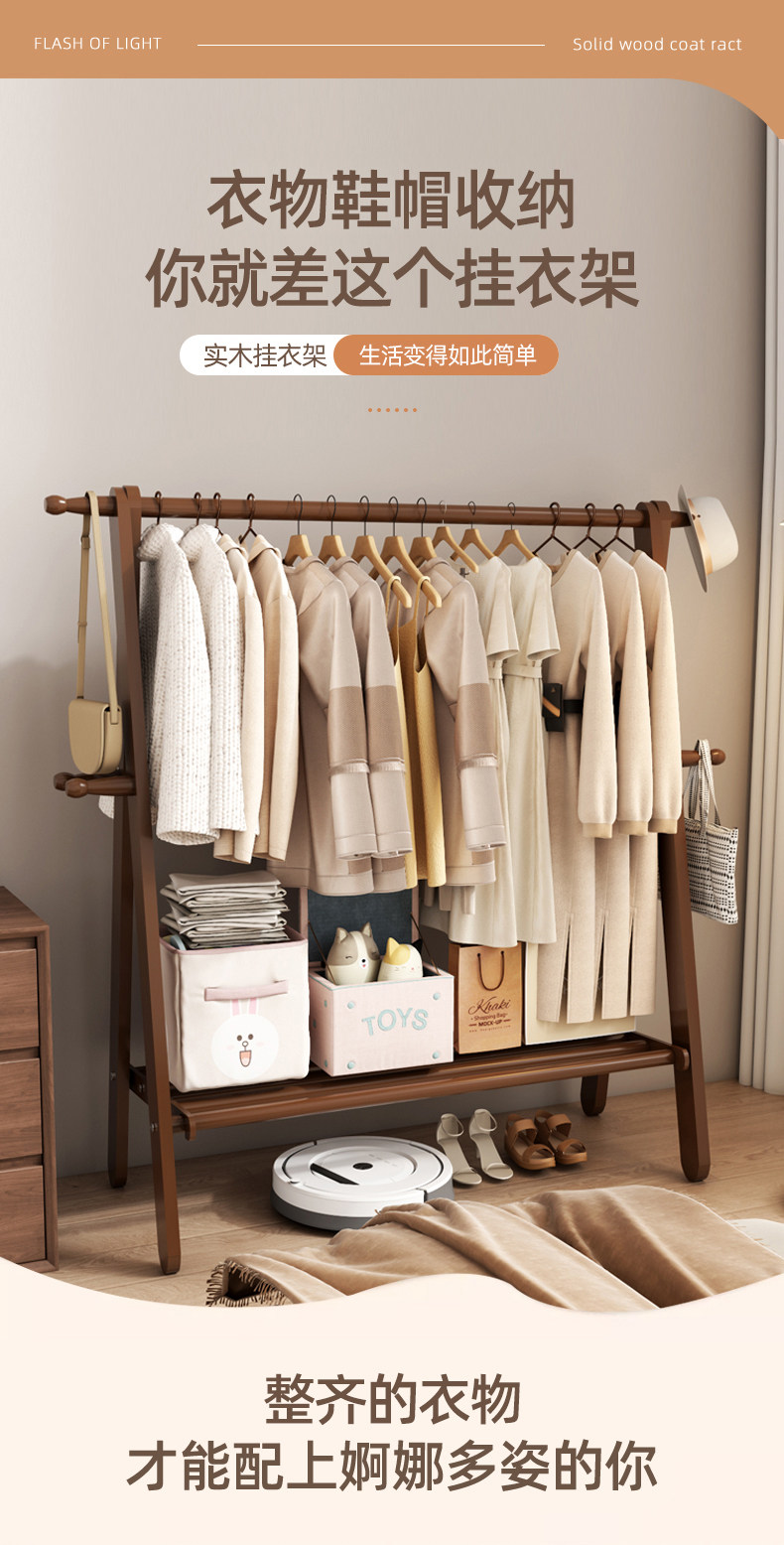 Solid wood clothes hanger floor-standing bedroom clothes hanger home living room clothes storage coat rack folding room clothes drying rack