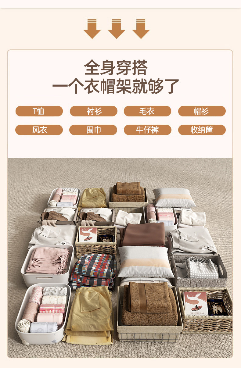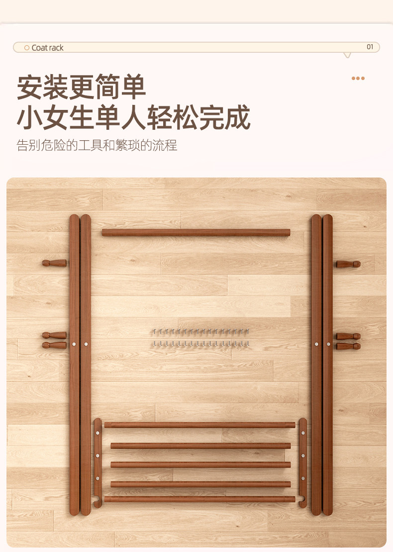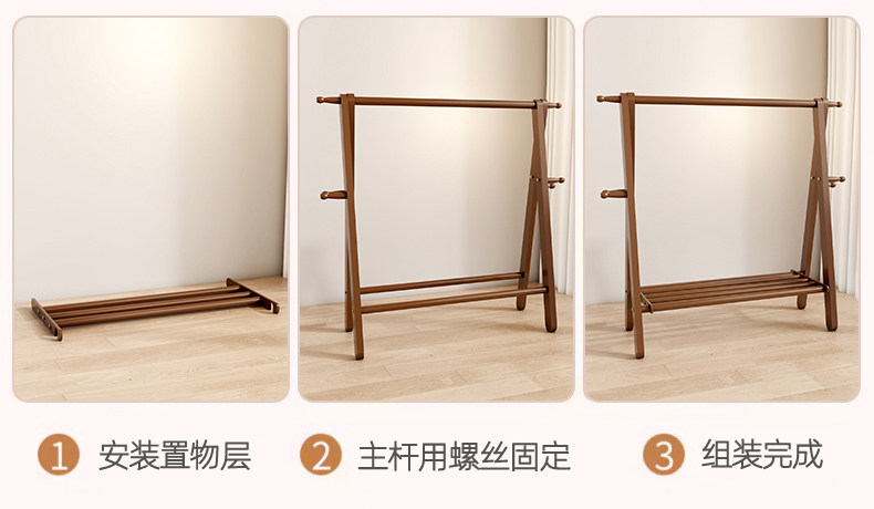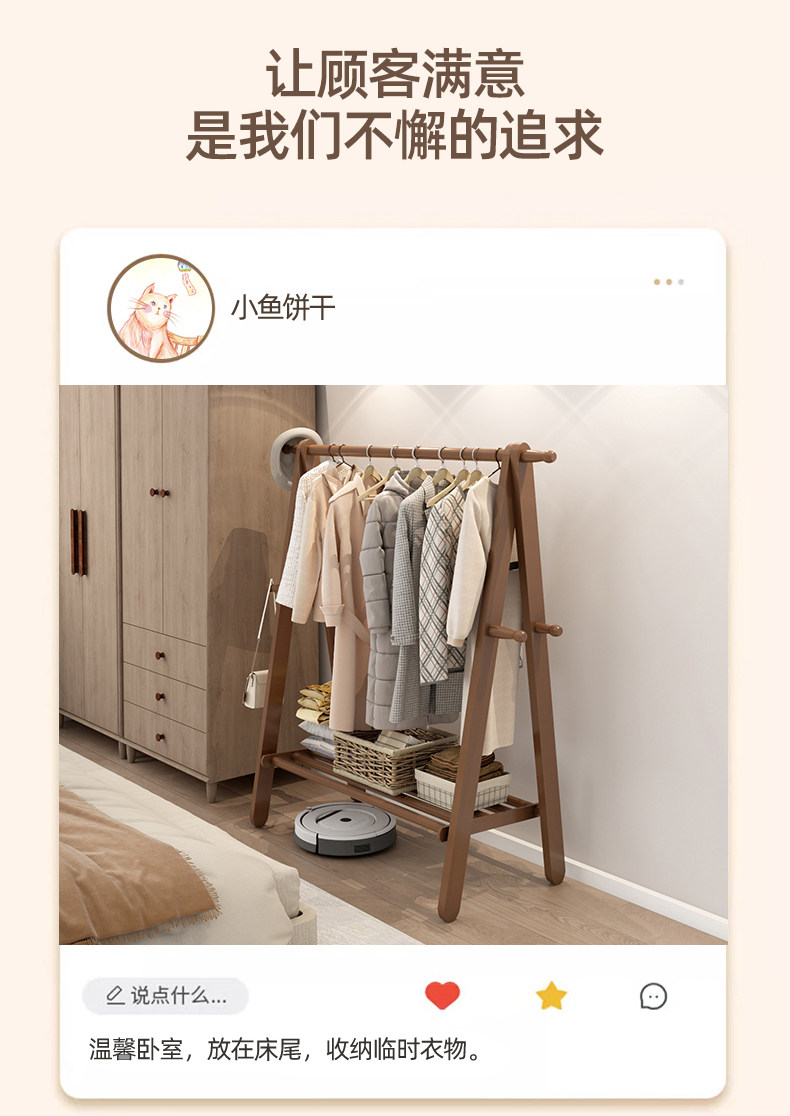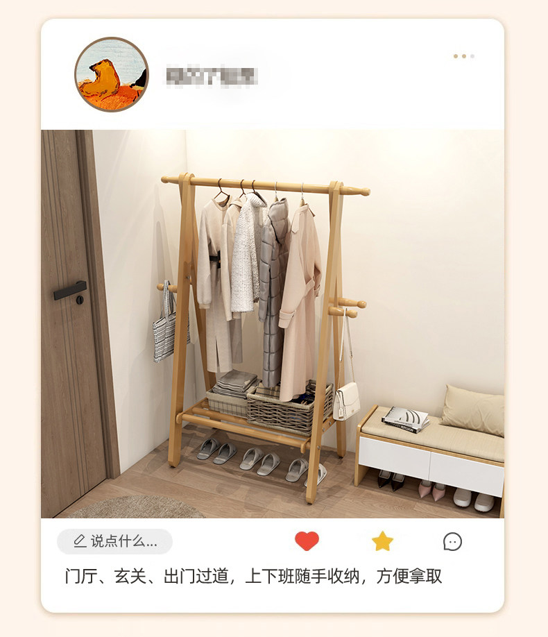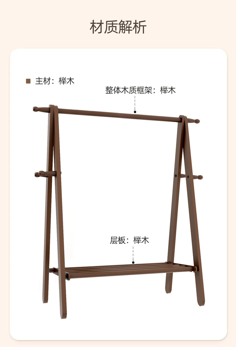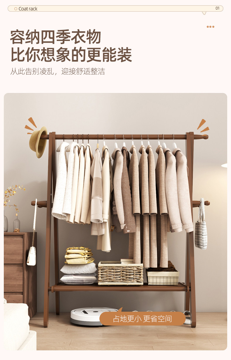 Solid wood clothes hanger floor-standing bedroom clothes hanger home living room clothes storage coat rack folding room clothes drying rack