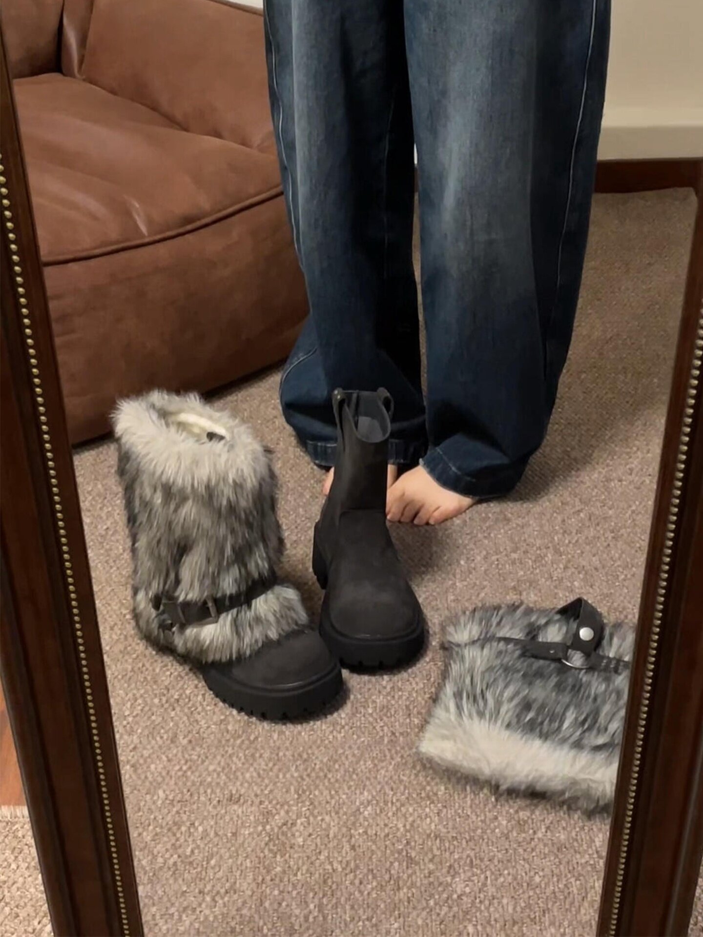 Detachable two-wear thick-soled snow boots for women in winter plus velvet to keep warm and non-slip plush cotton shoes, genuine leather versatile short boots