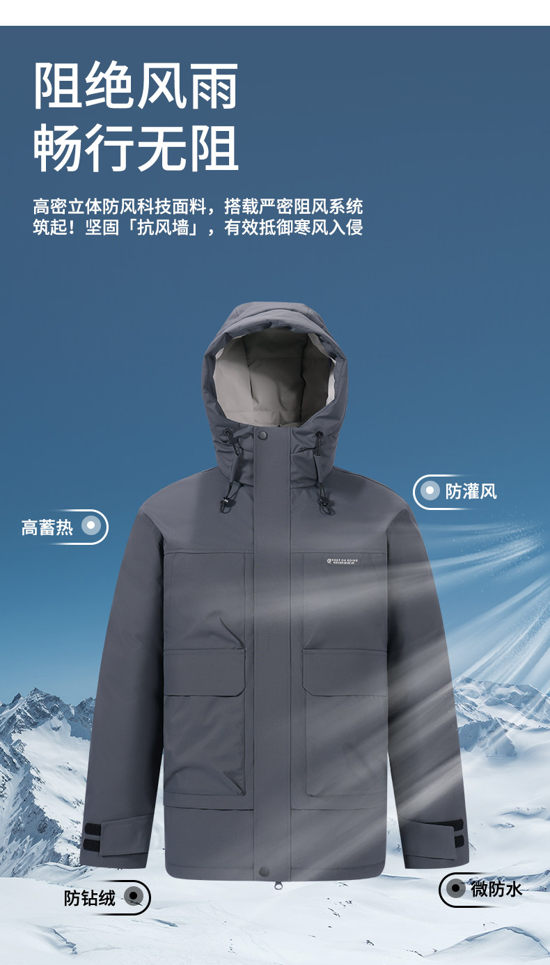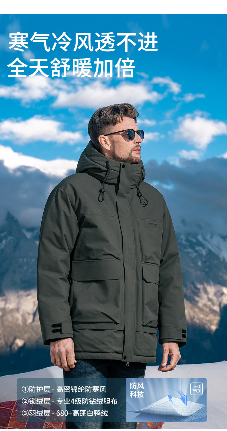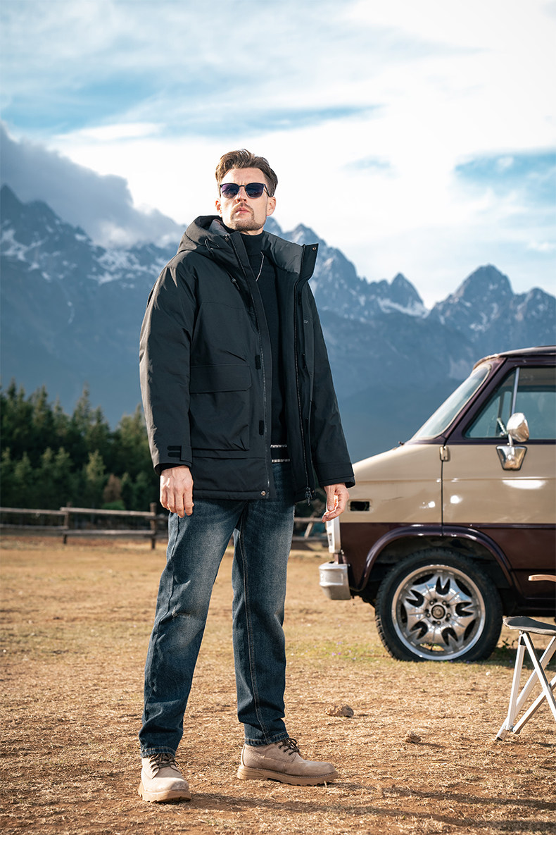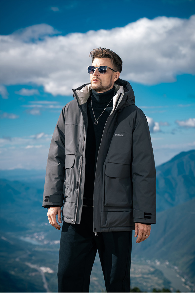 Yingjuerun gold ion heat storage and temperature locking mid-length hooded men's down jacket outdoor functional white duck down work jacket