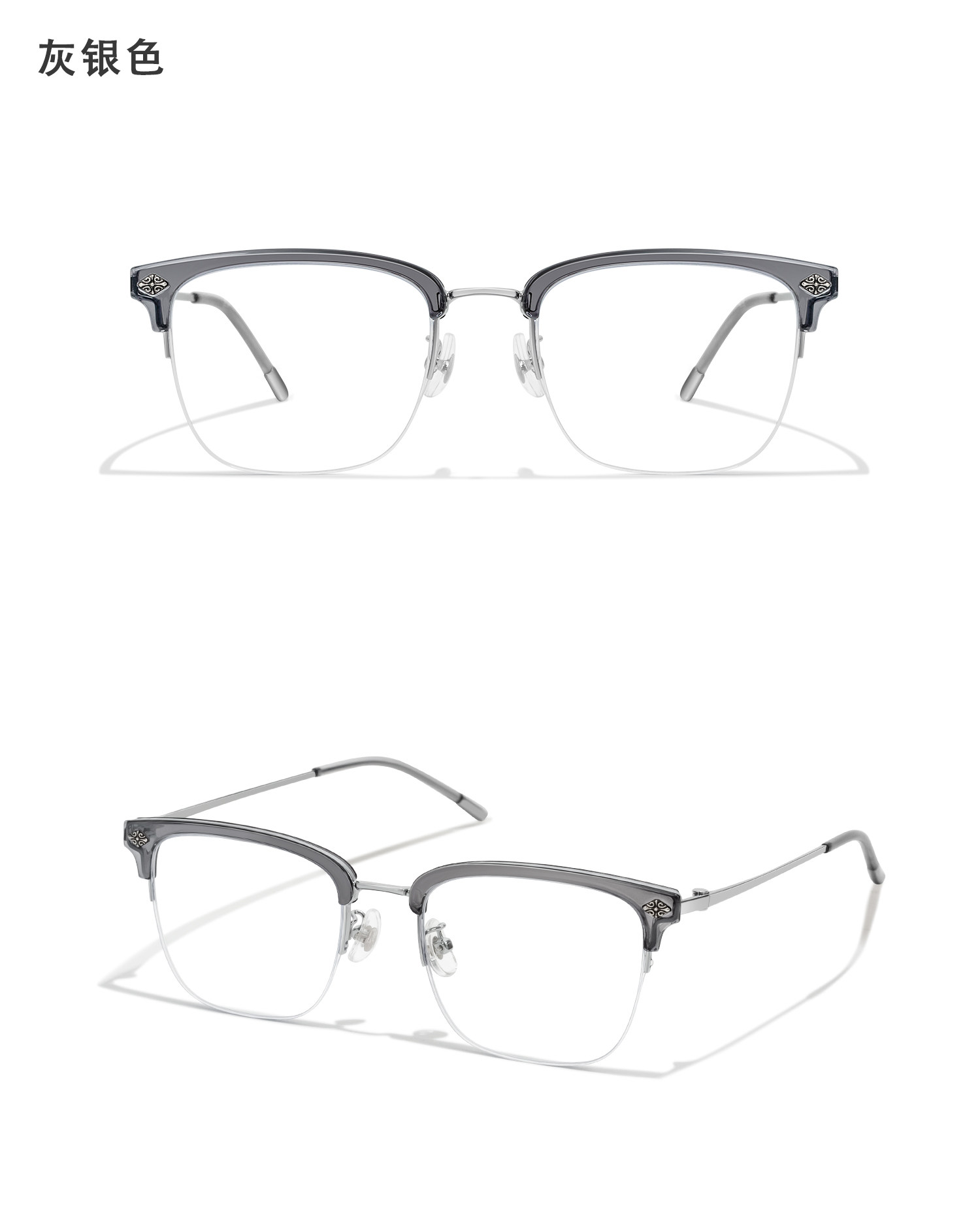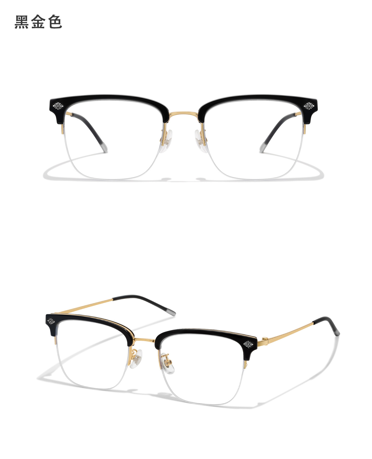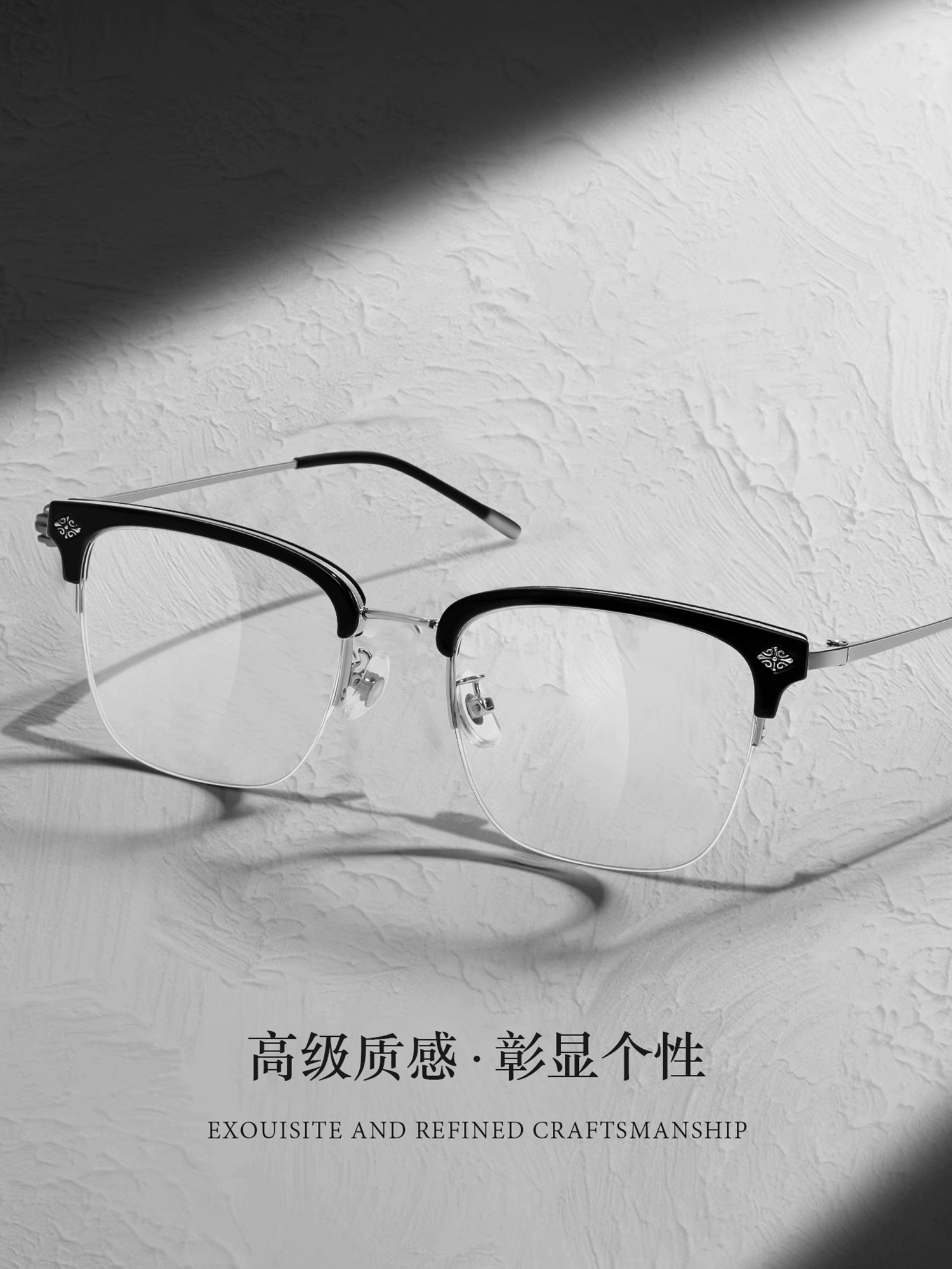 Stylish and Cool Blue Light Blocking Half-Frame Glasses for Men, Trendy High-End Japanese-Style Decorative Browline Frames, Suitable for Prescription Lenses