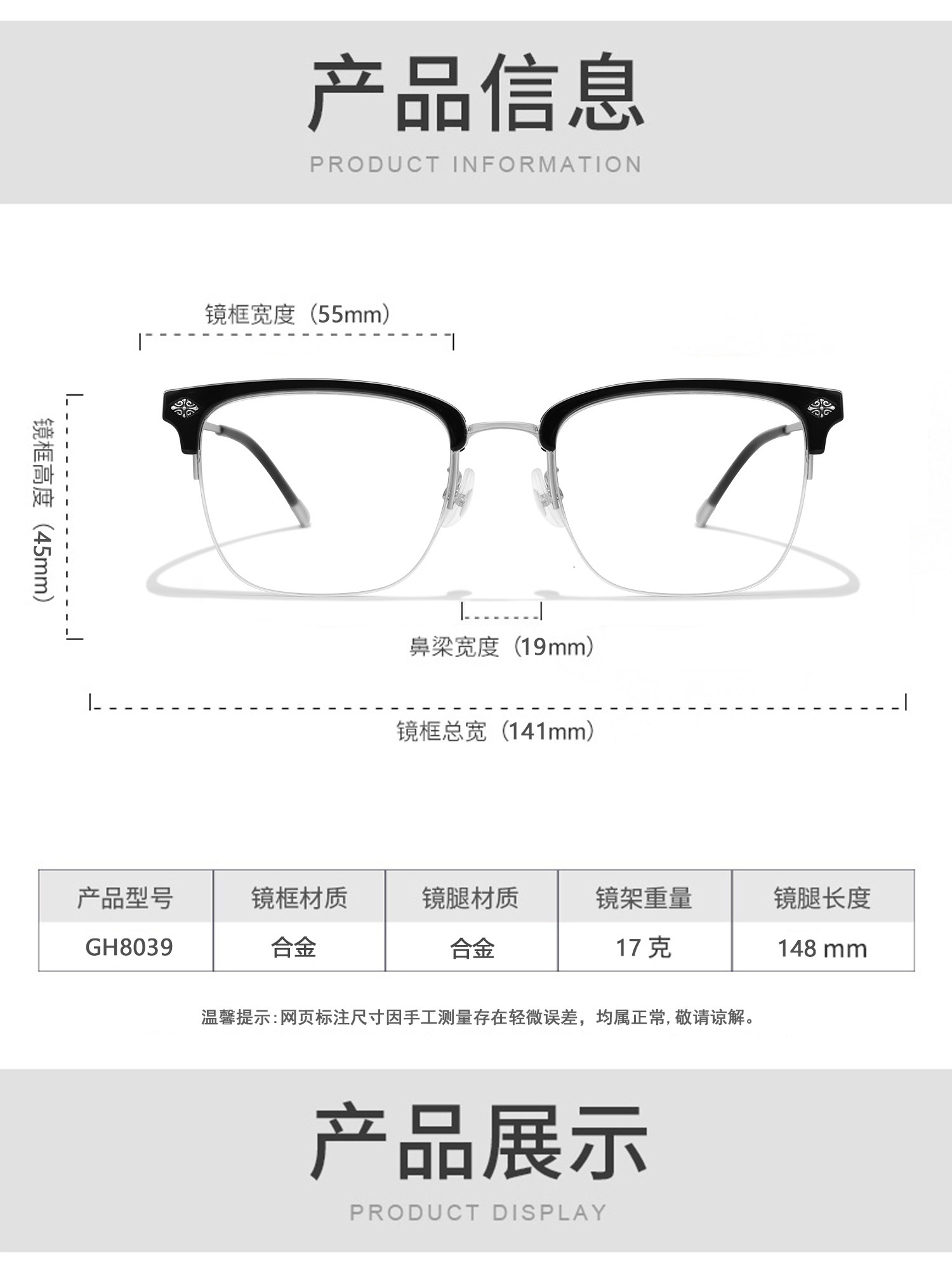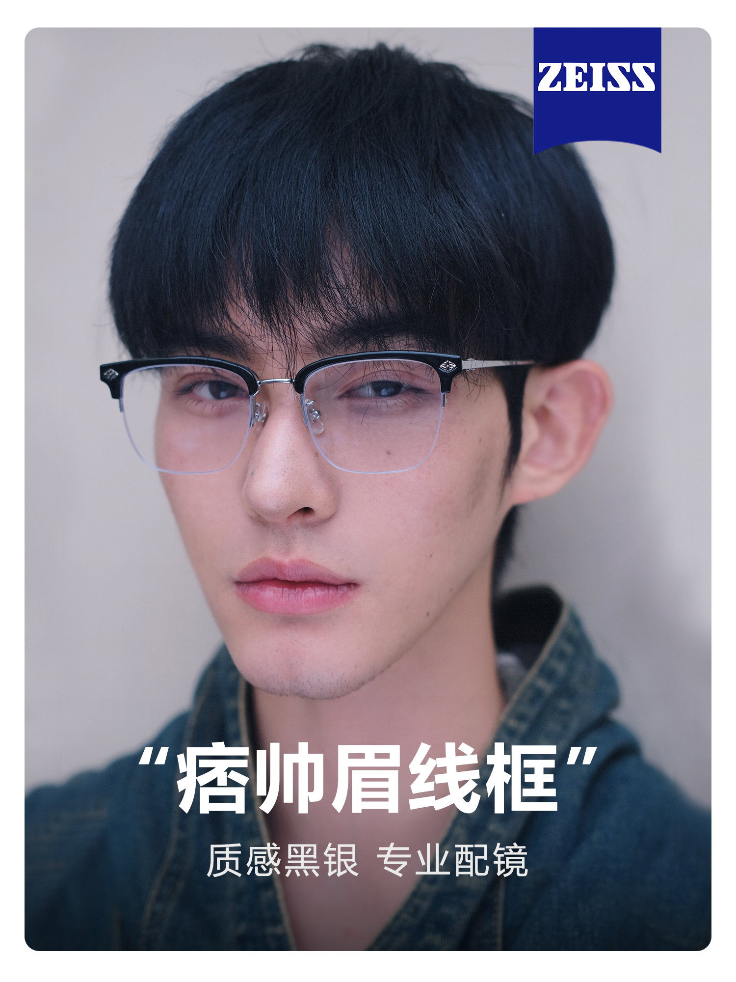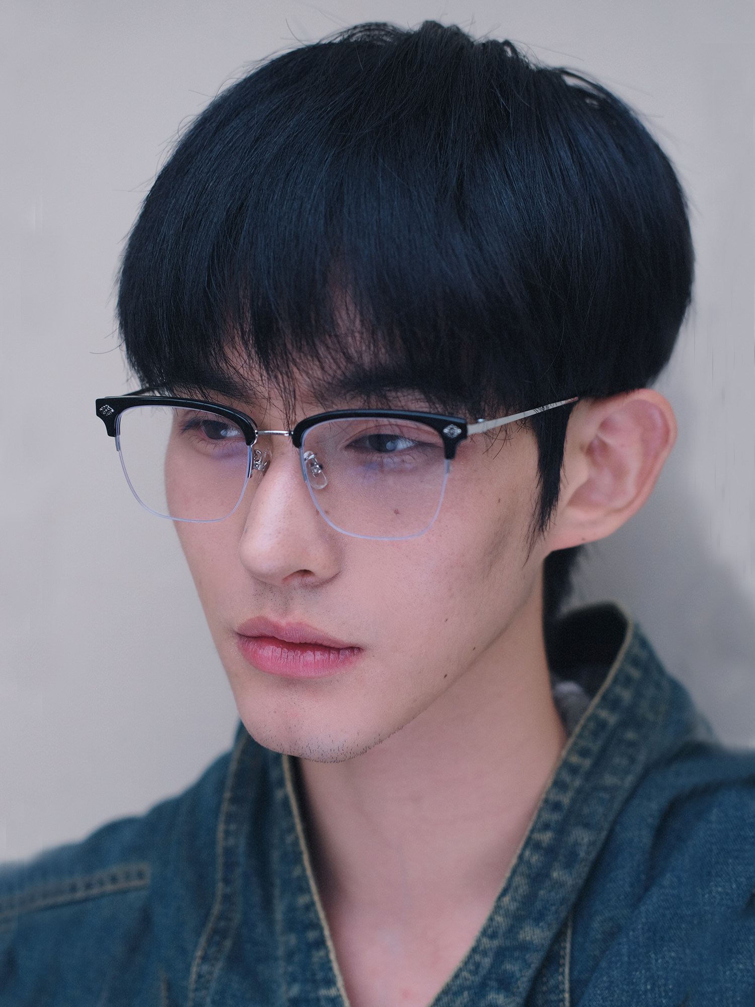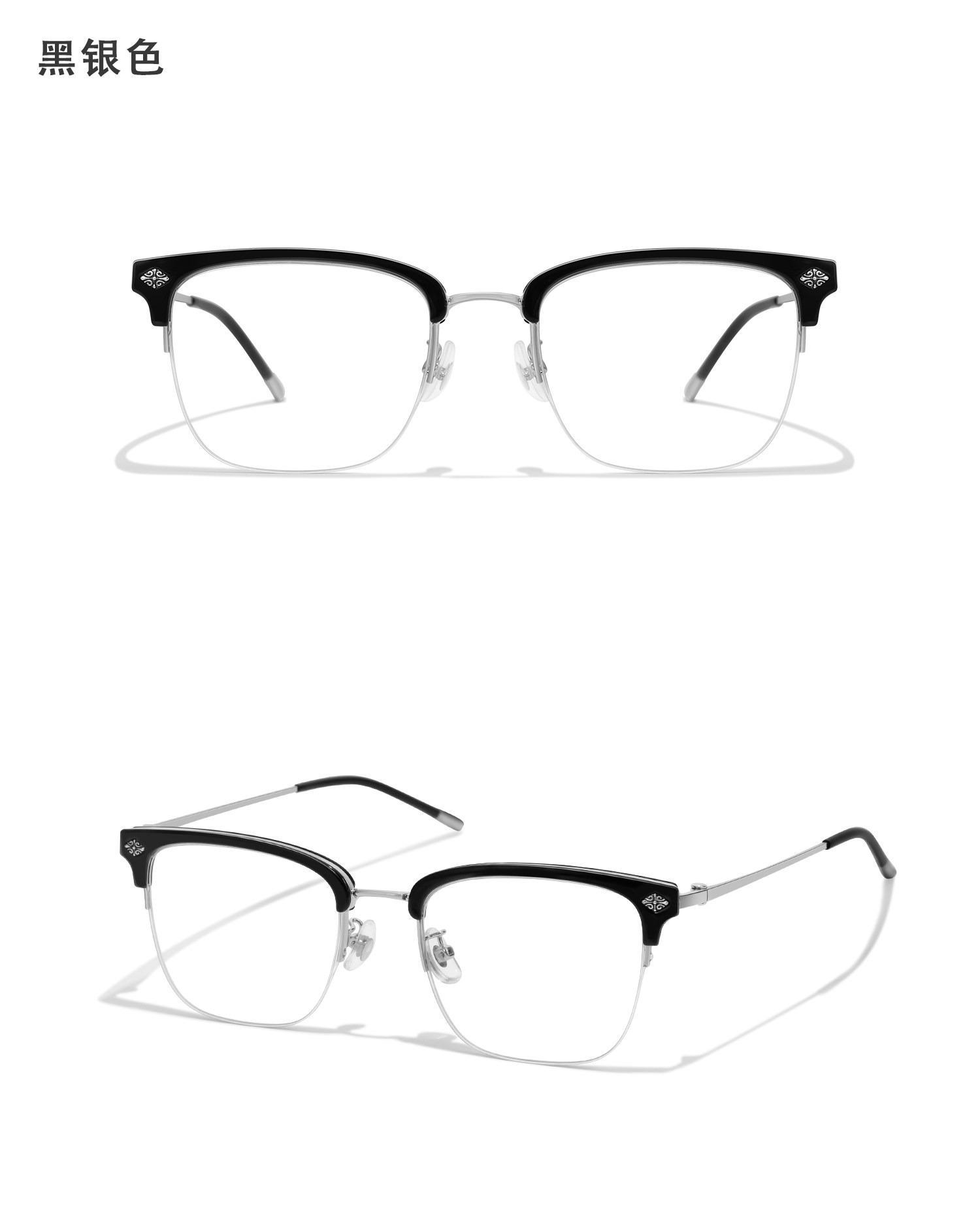 Stylish and Cool Blue Light Blocking Half-Frame Glasses for Men, Trendy High-End Japanese-Style Decorative Browline Frames, Suitable for Prescription Lenses