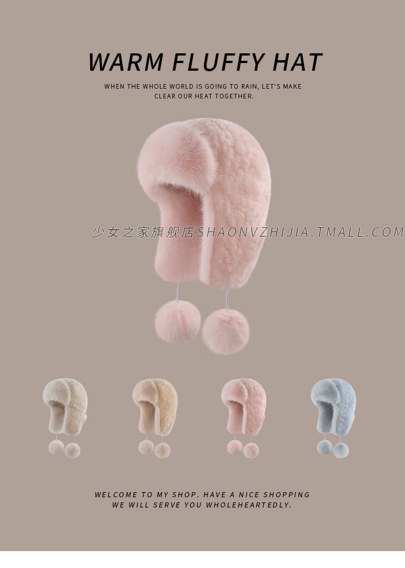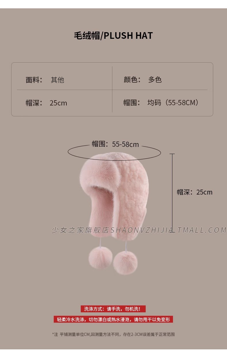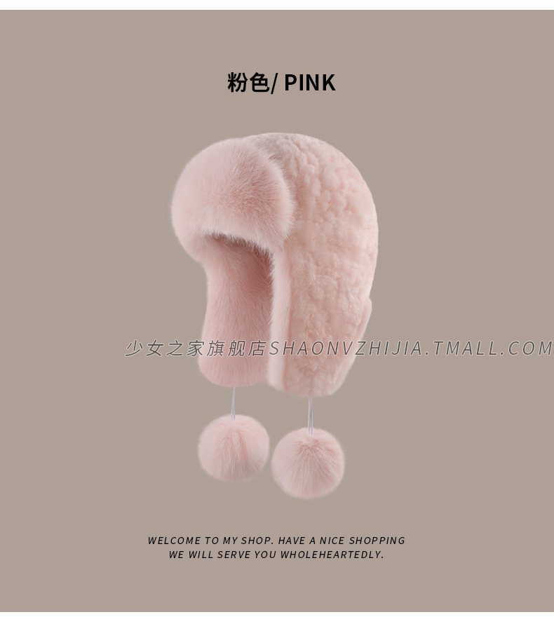 Pink Warm Lei Feng Hat for Women, Winter Fleece-Lined and Thickened, Windproof and Cold-Resistant, Ear-Protecting Plush Hat That Makes the Face Look Smaller