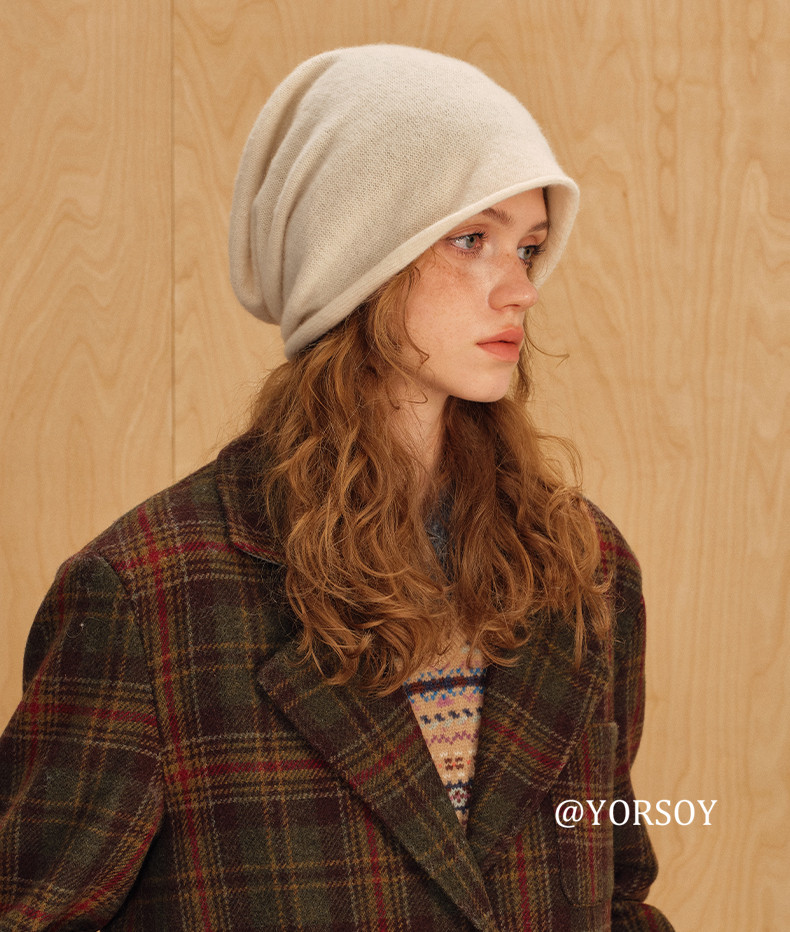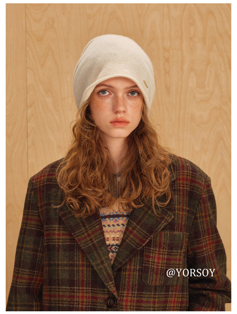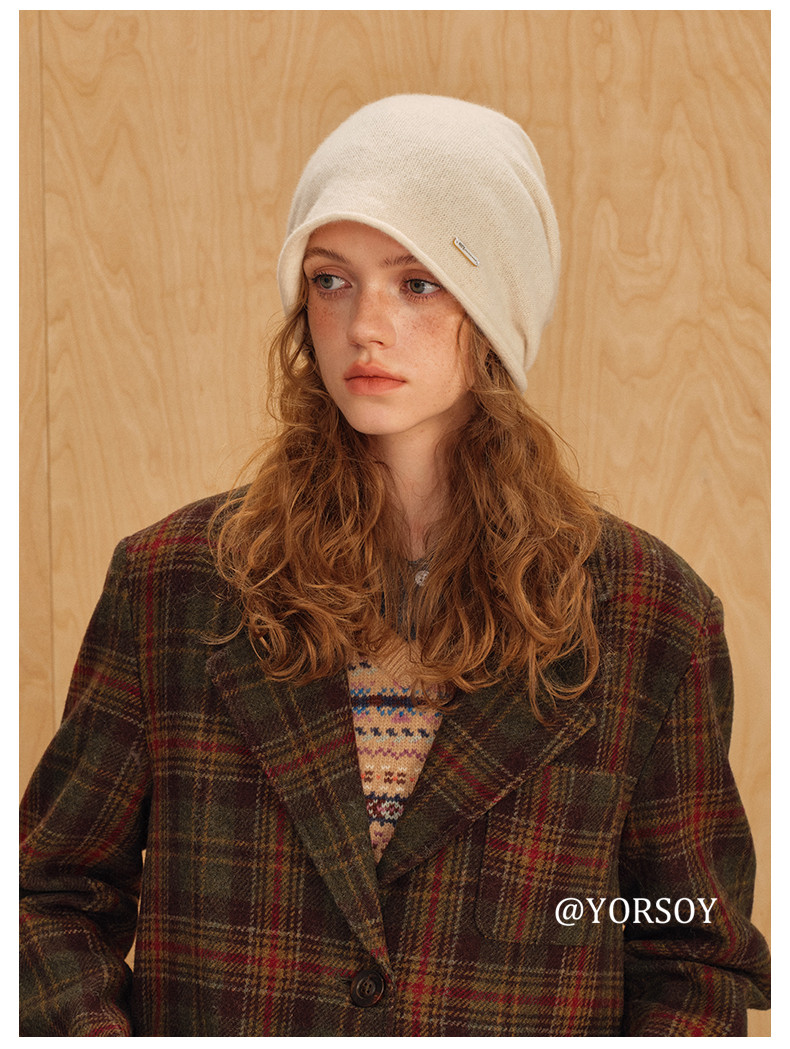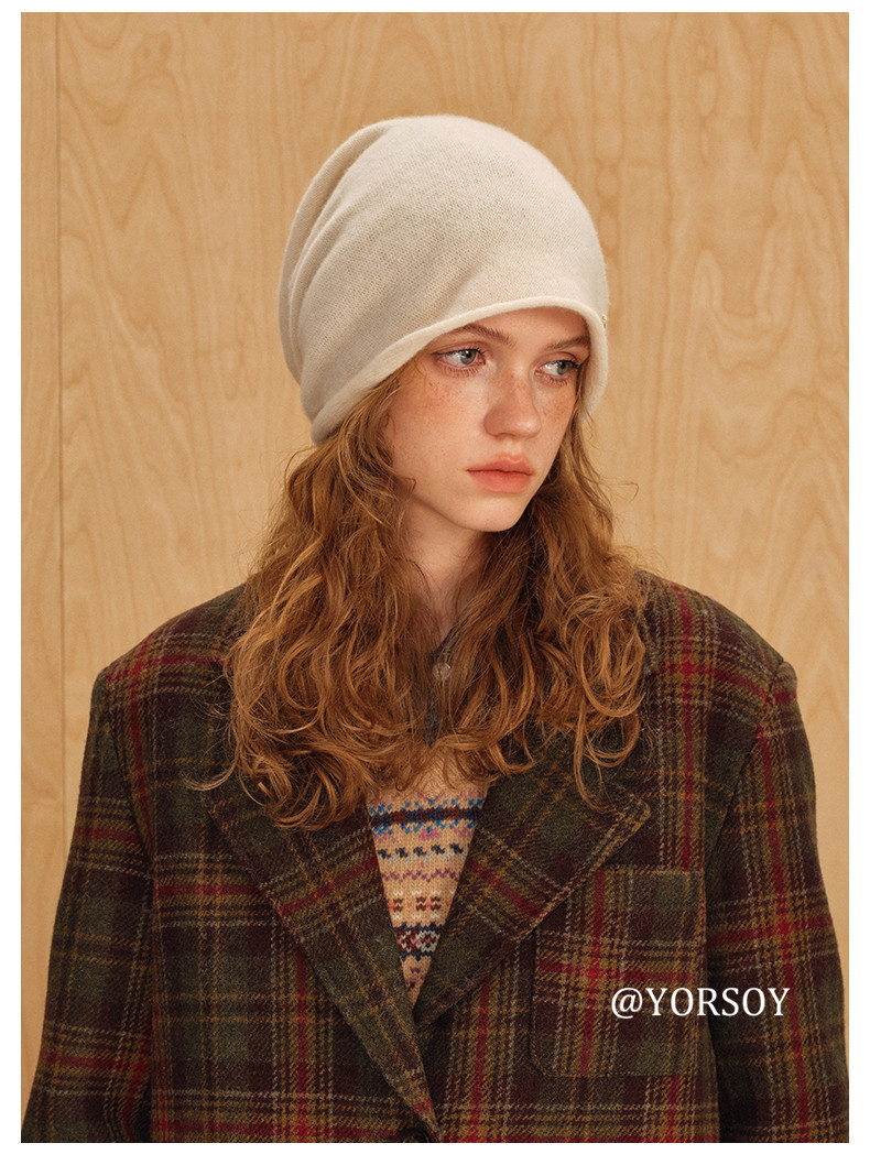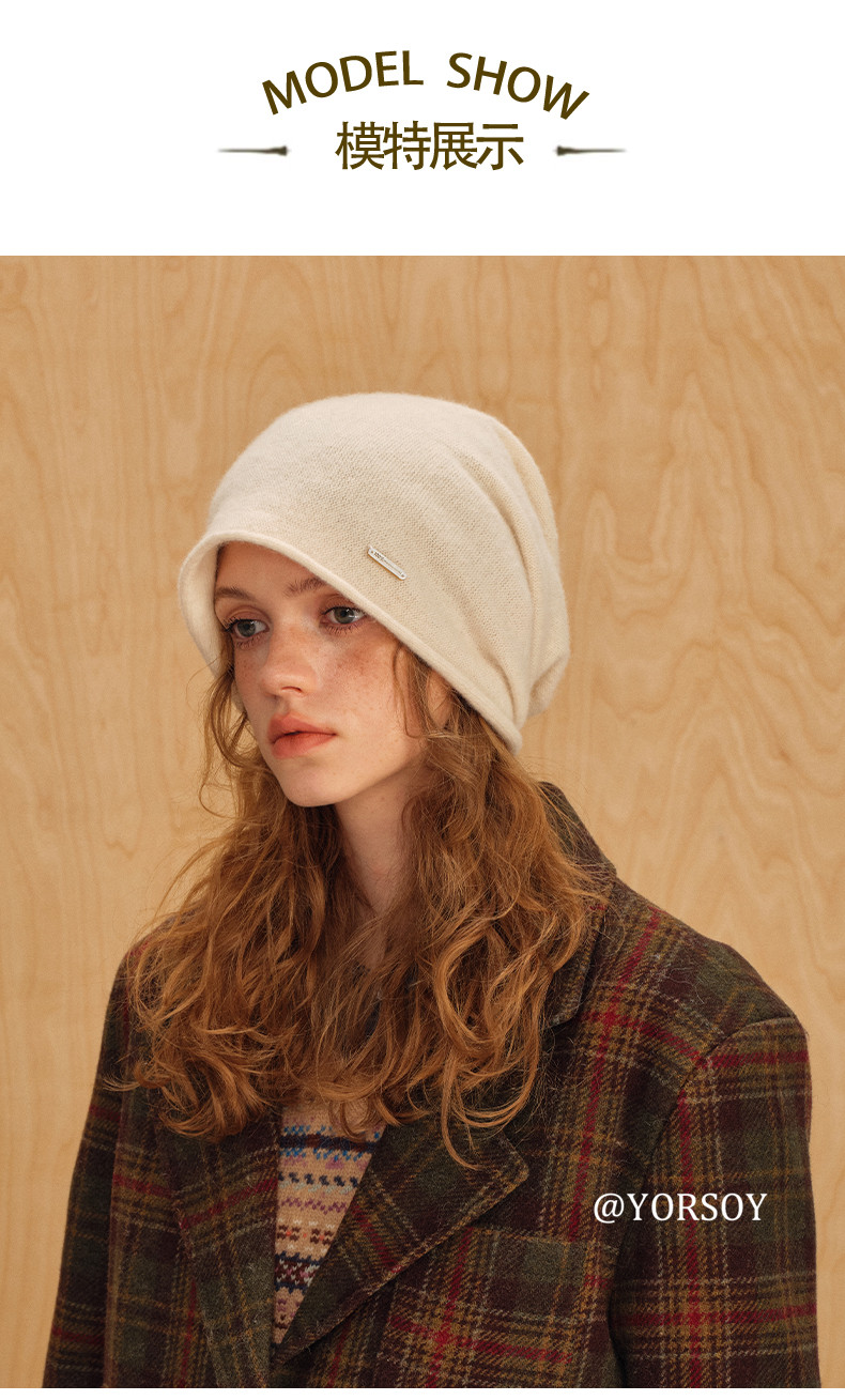 100% Pure Wool Retro Beanie Hat for Women, Autumn and Winter Beige Versatile Knitted Ear-Protecting Wool Hat, Cold Weather Hat