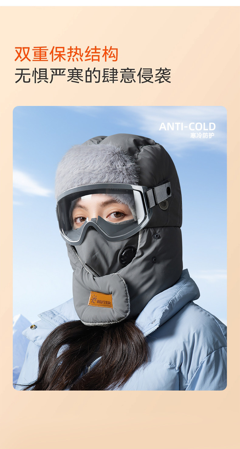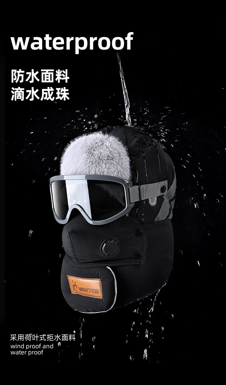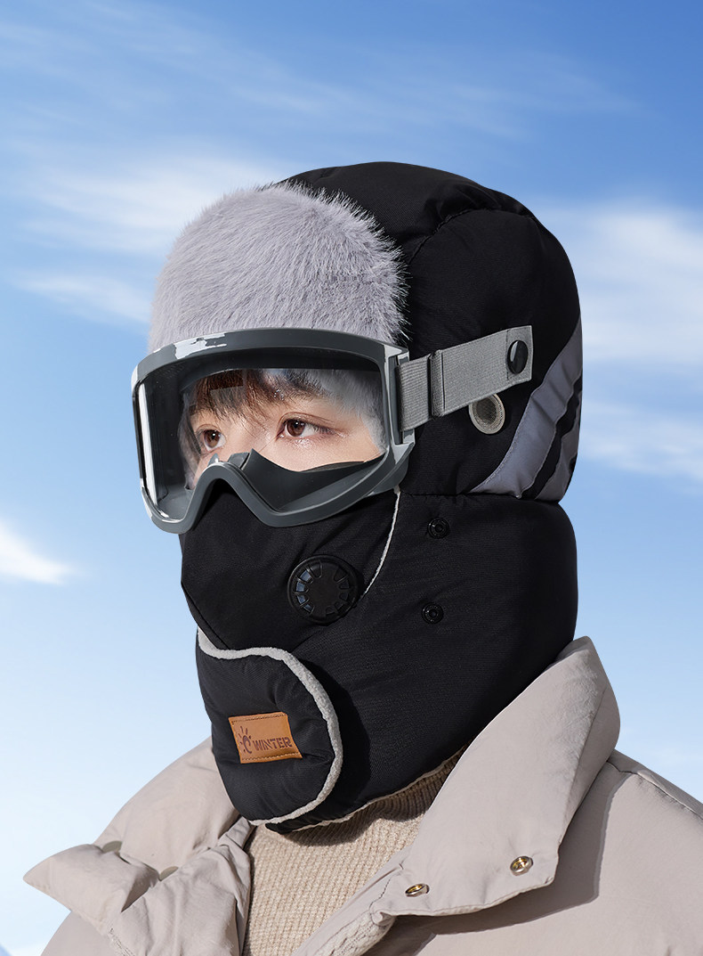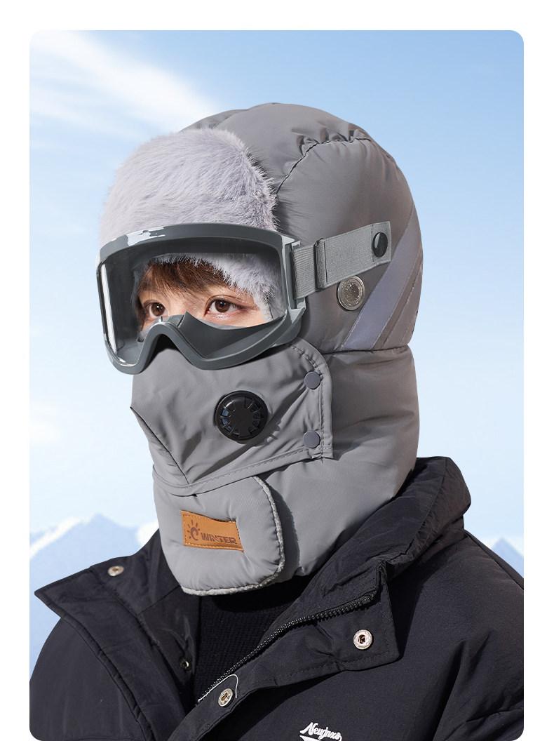 Sort by color Hat + goggles dark gray - windproof and waterproof fabric,Hat + goggles white - windproof and waterproof fabric,Hat + goggles pink - windproof and waterproof fabric,Hat + goggles black - windproof and waterproof fabric,Hat + goggles khaki - windproof and waterproof fabric