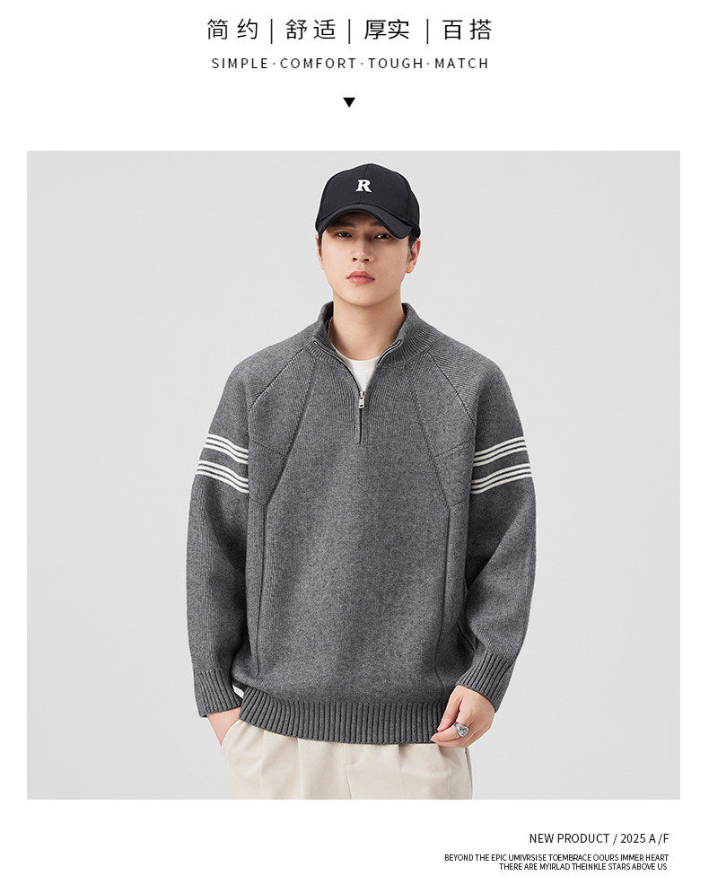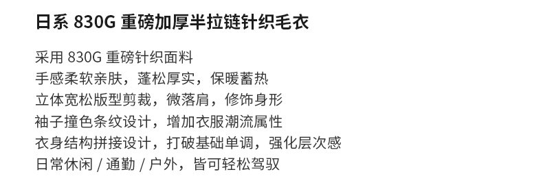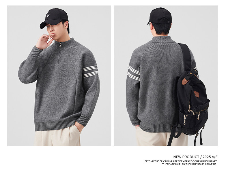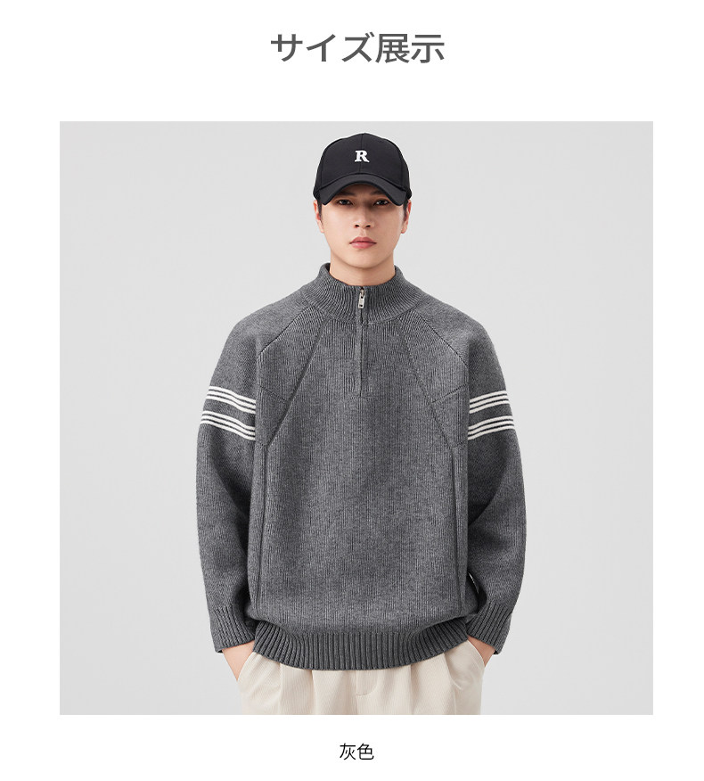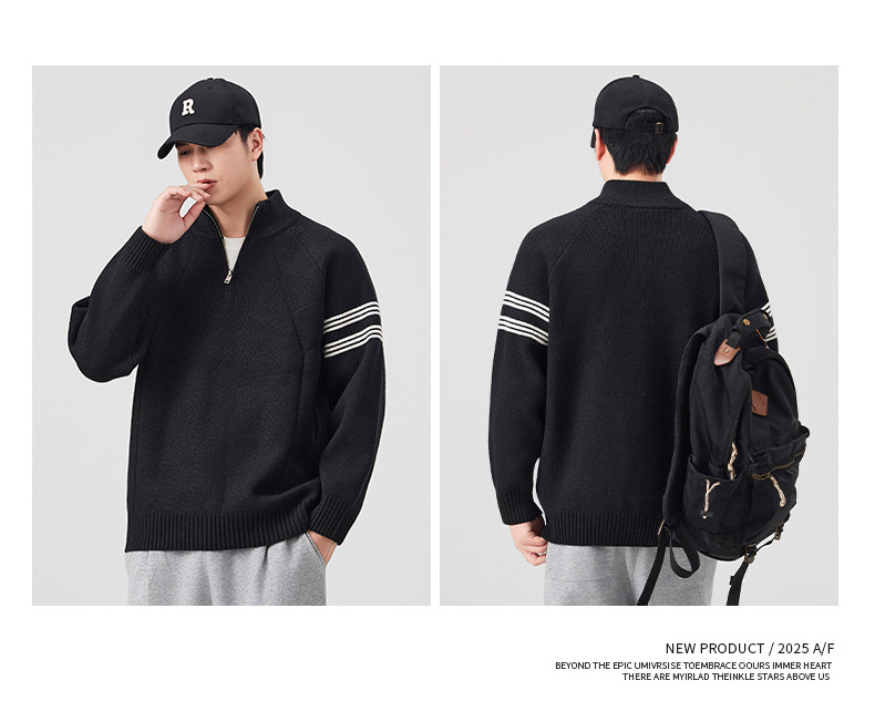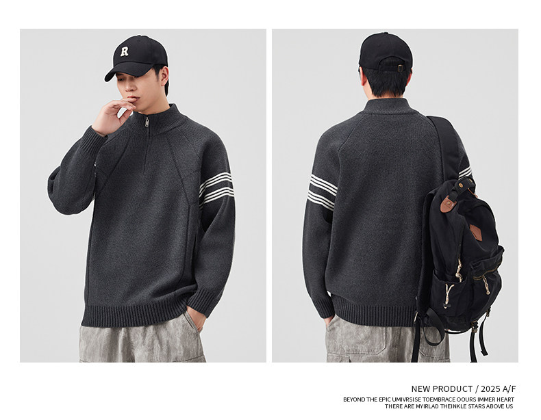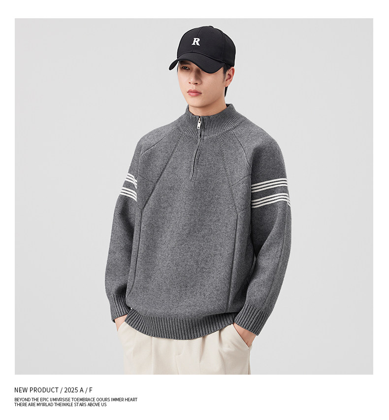 Chun Tuan 830G Heavyweight Half-Zip Sweater Men's Autumn and Winter Thickened Warm Contrast Color Striped Lazy Style Knitted Sweater Jacket