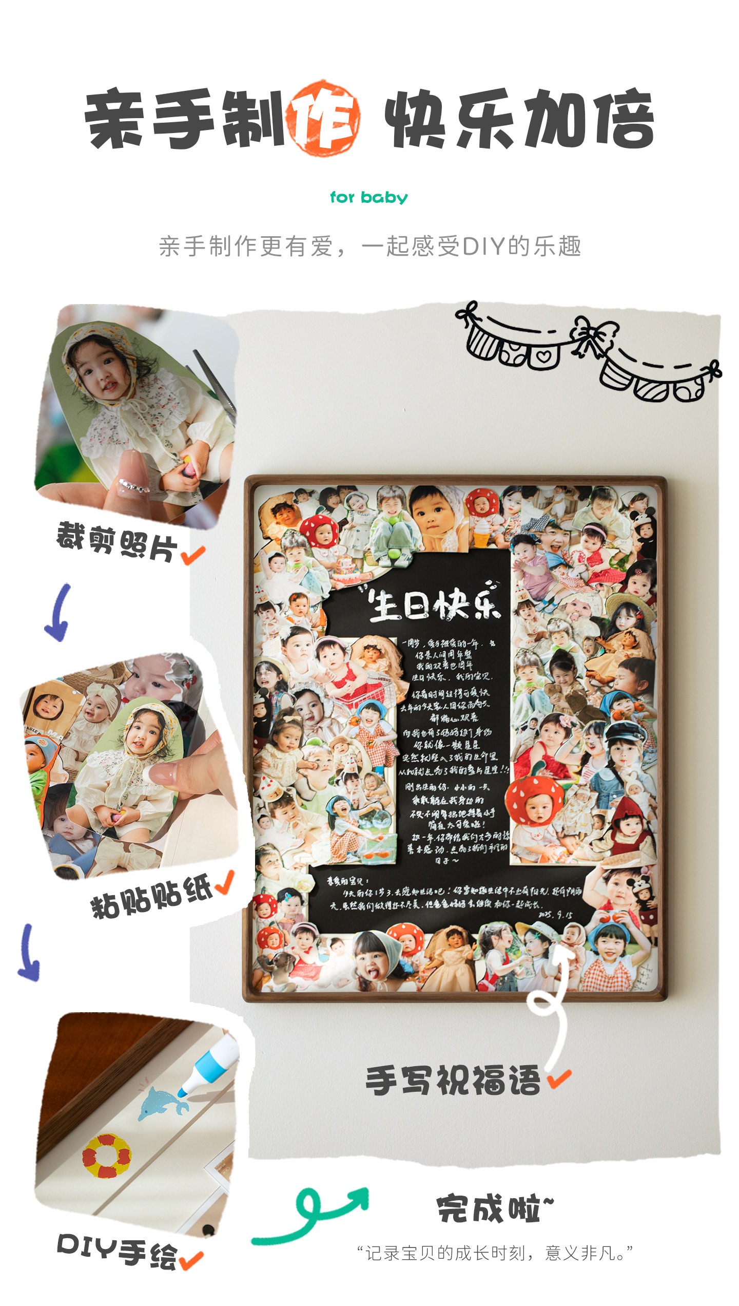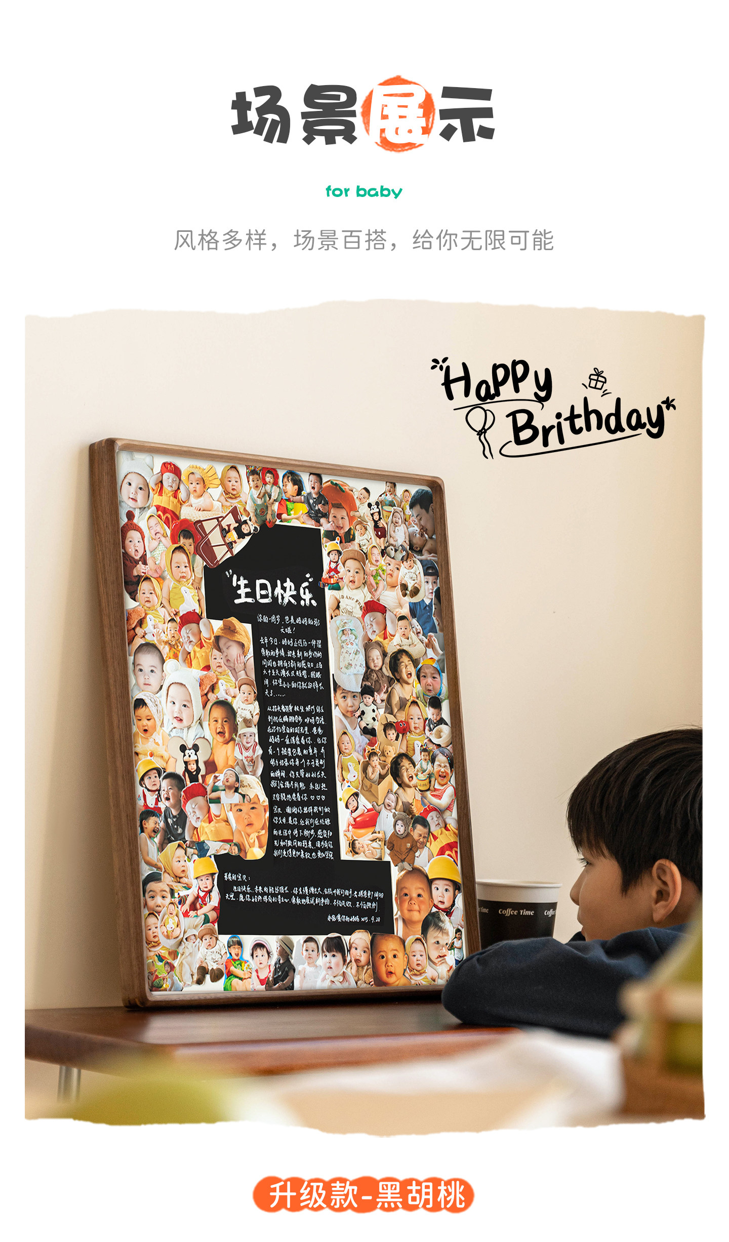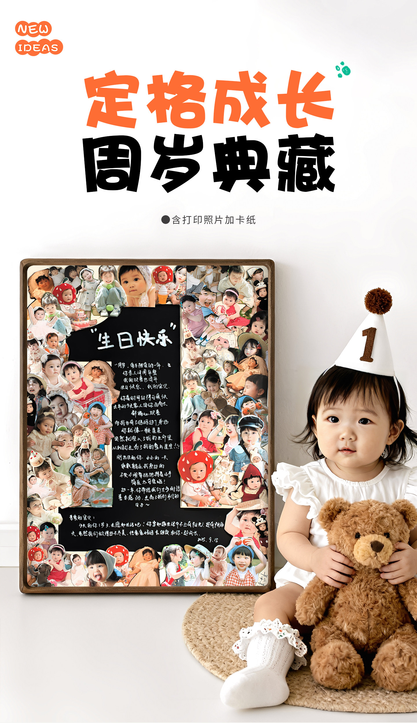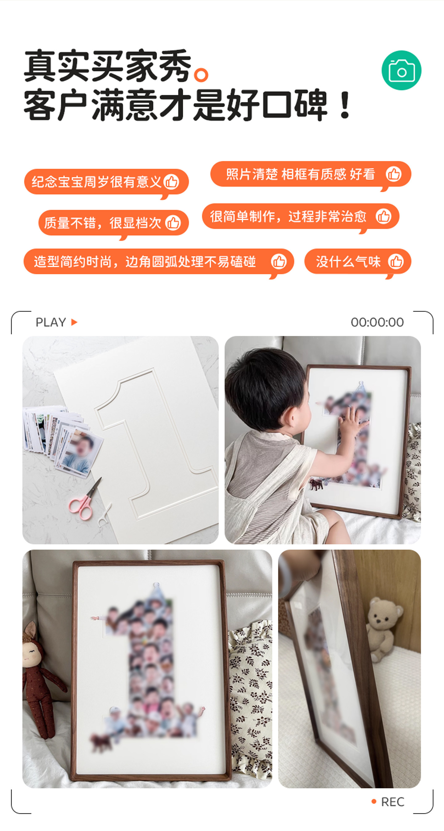 One-year-old photo frame baby birthday commemoration 1-year-old birthday decoration ceremony diy footprint set up growth record frame