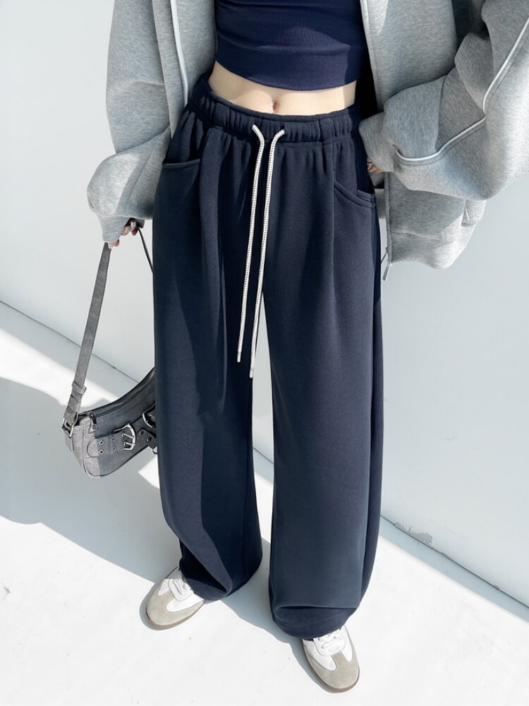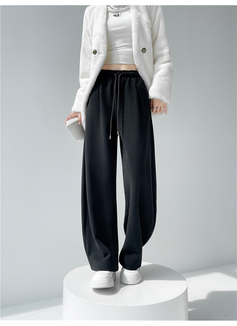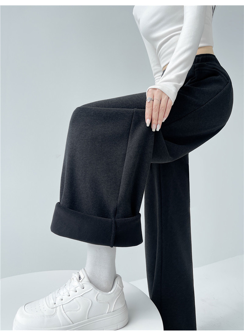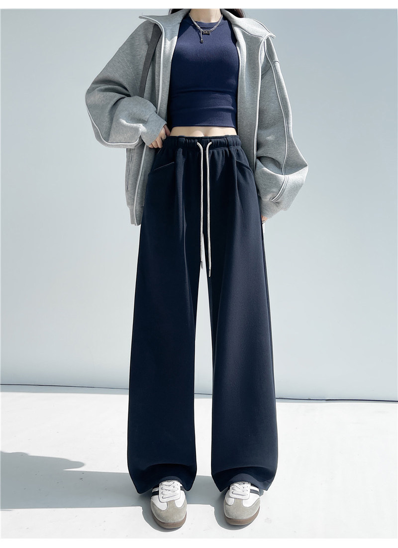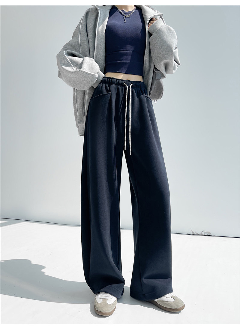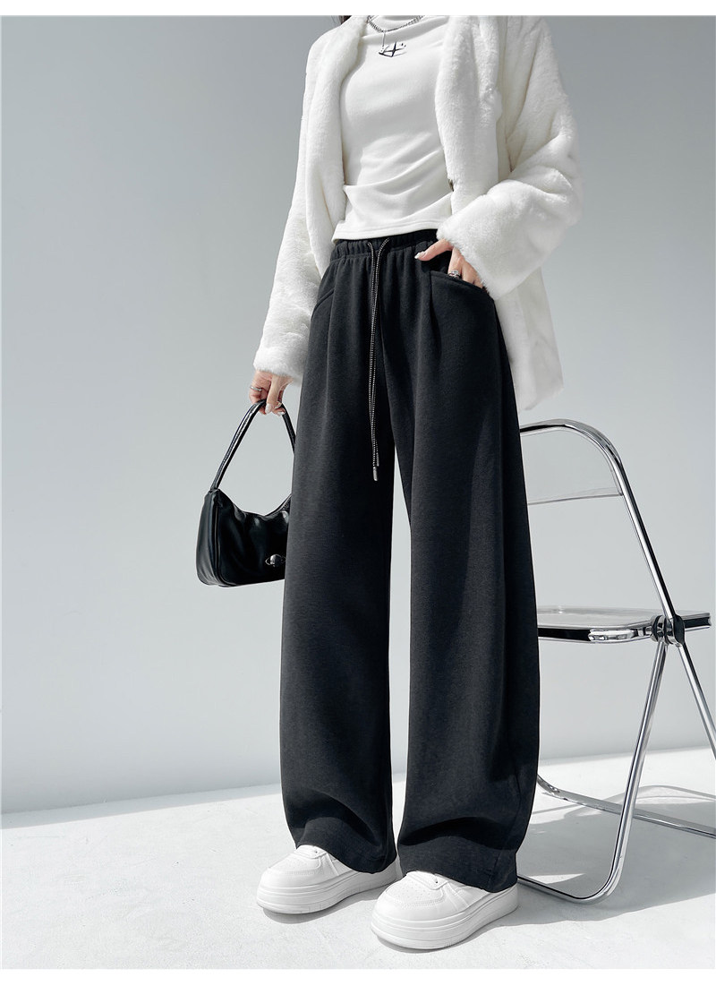American-Style Thickened Drapey High-Waisted Sports Sweatpants for Women, Autumn and Winter Elastic Waist Casual Floor-Length Pants, Versatile Straight Wide-Leg Pants