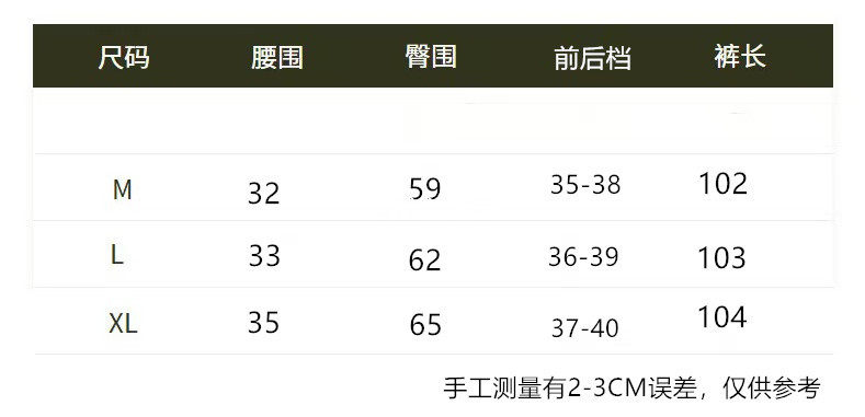 Outseam (cm) 99 cm 101.5 cm 104 cm 106.5 cm 109 cm