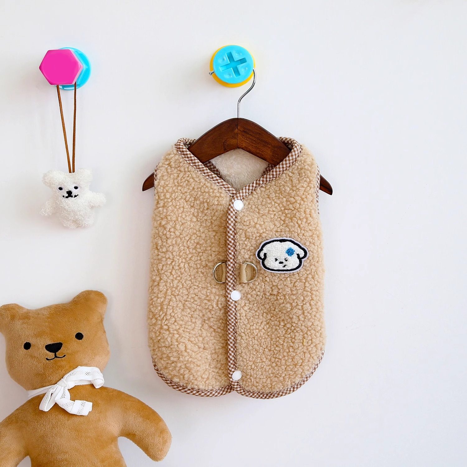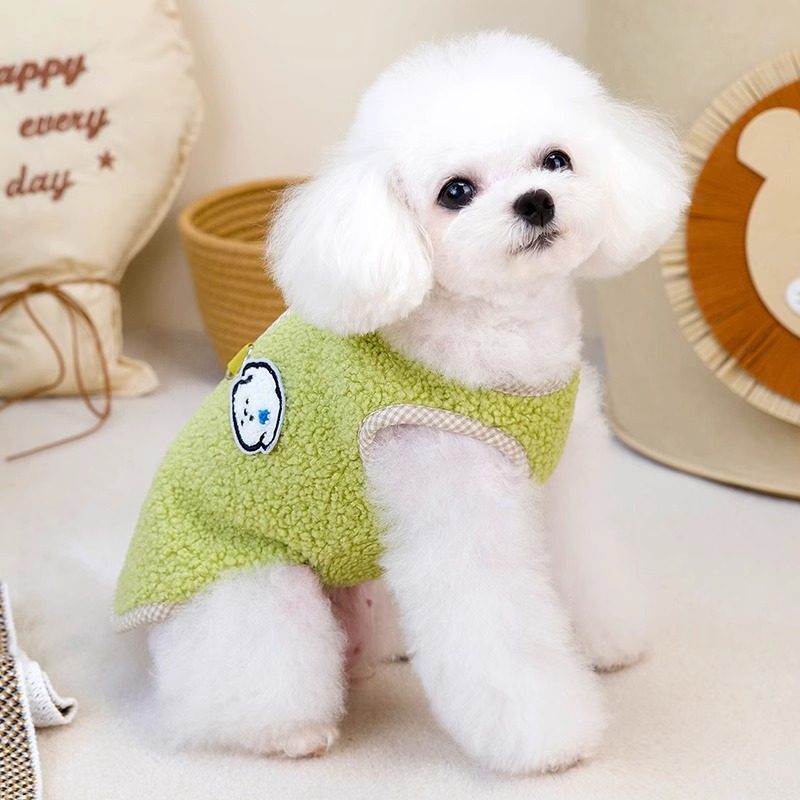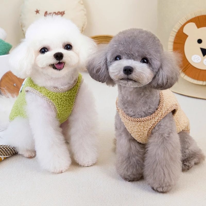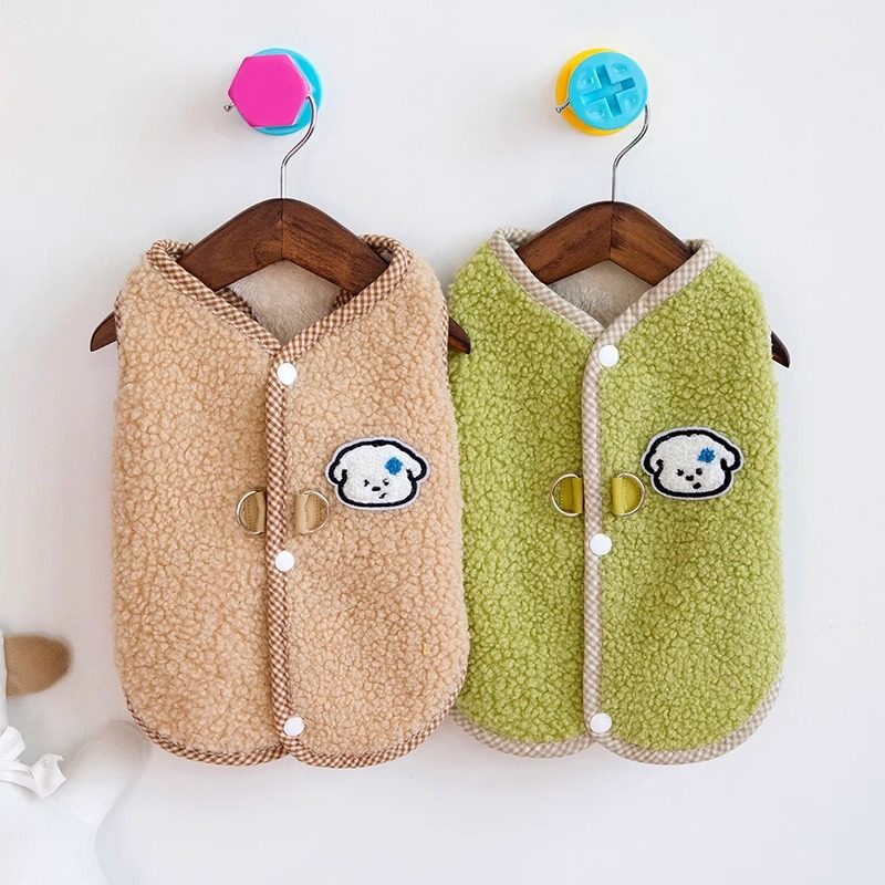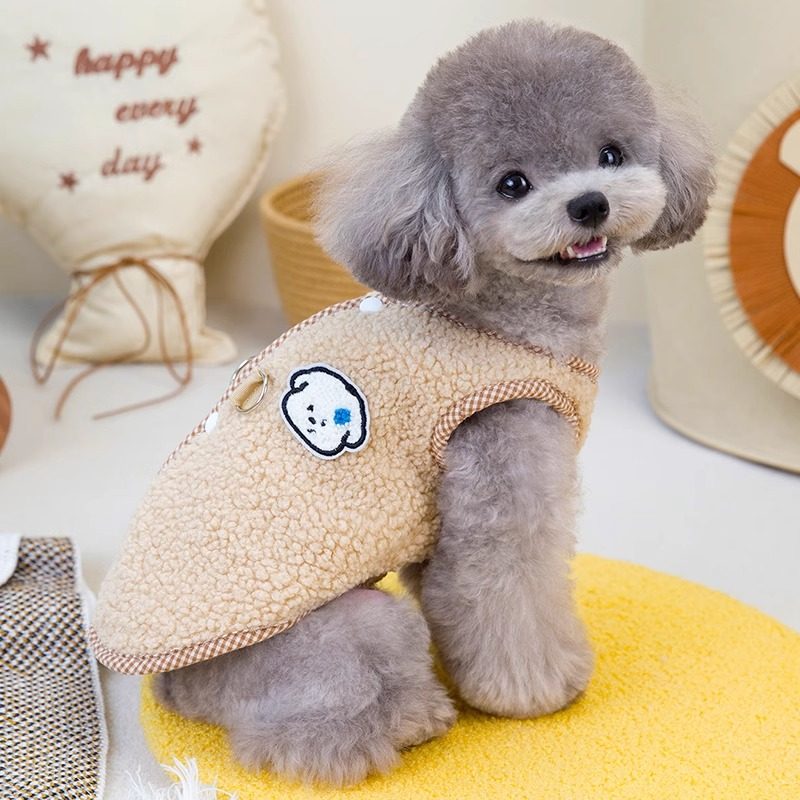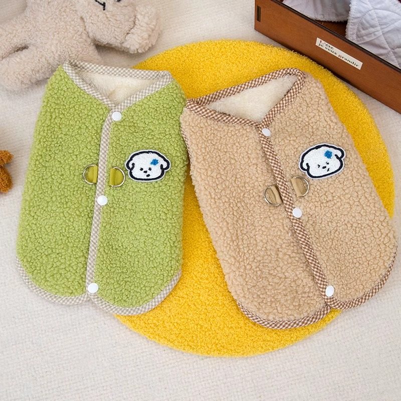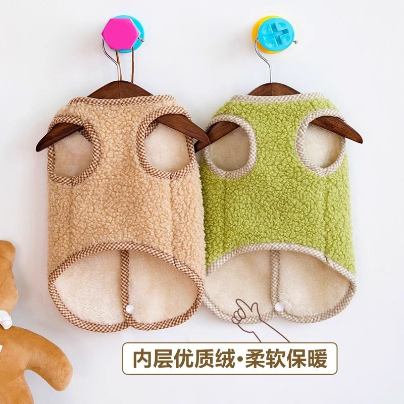Dog and cat autumn and winter velvet vest with buttons on the back Teddy Bichon Pomeranian pet warm and traction clothing