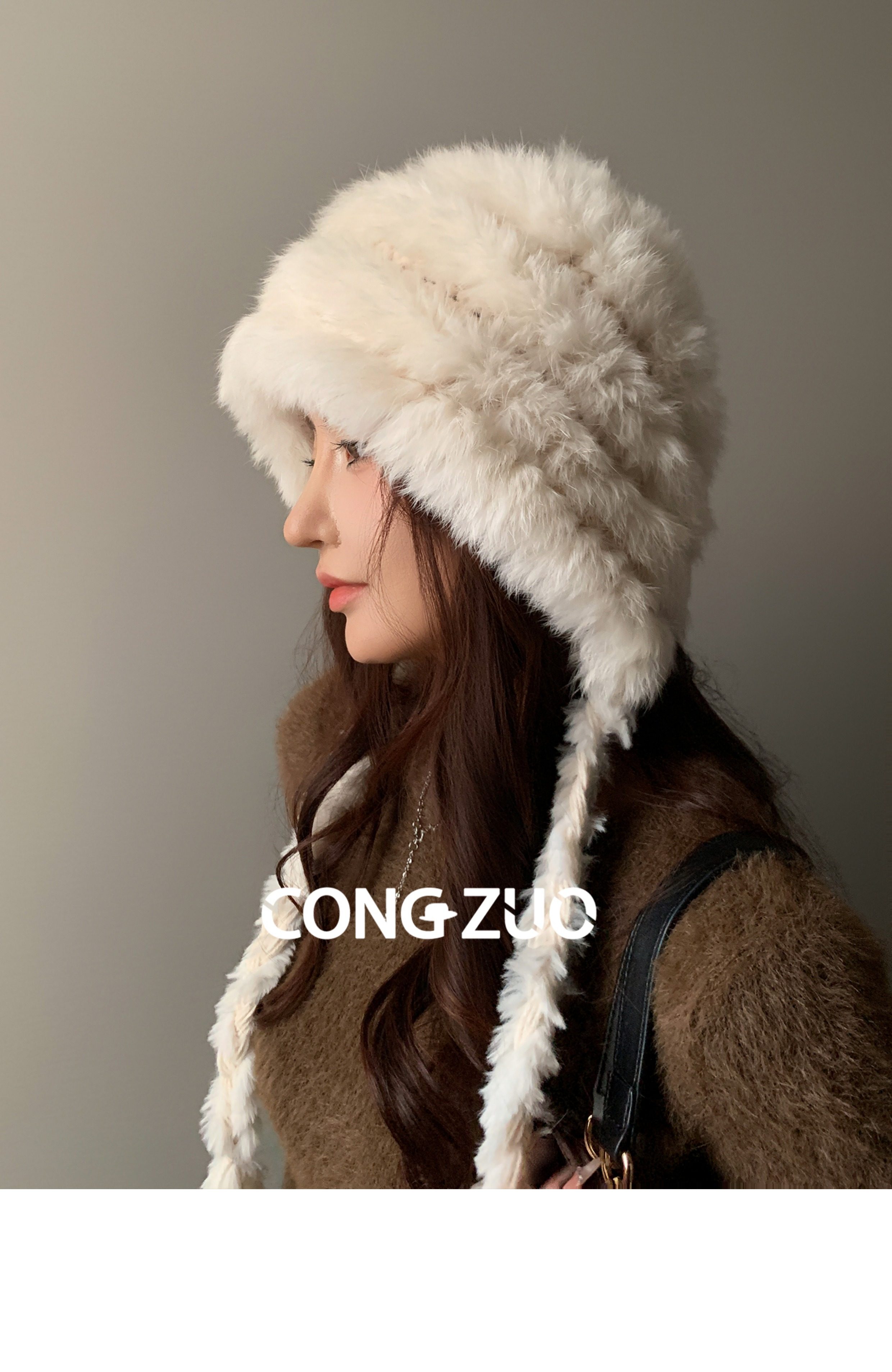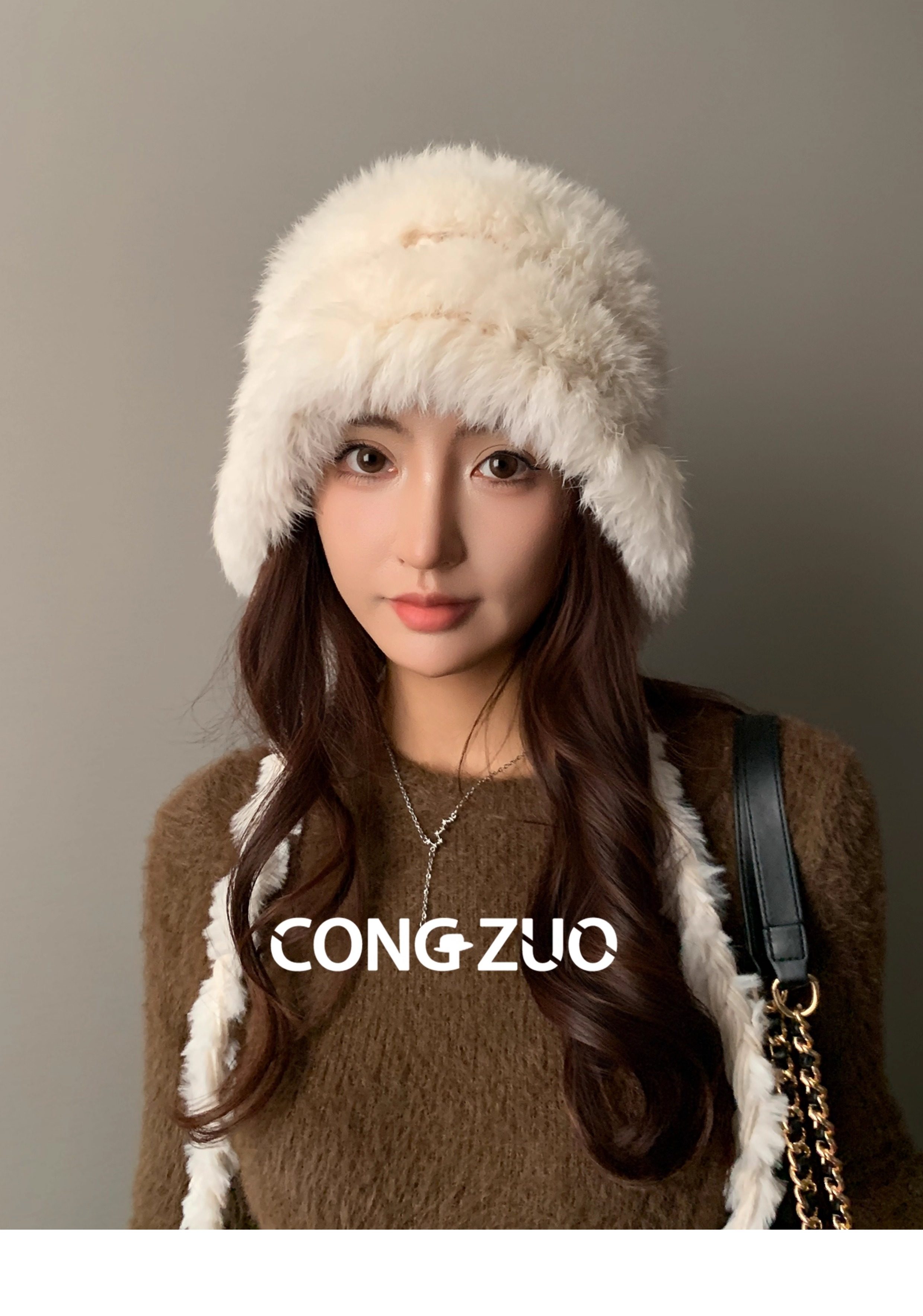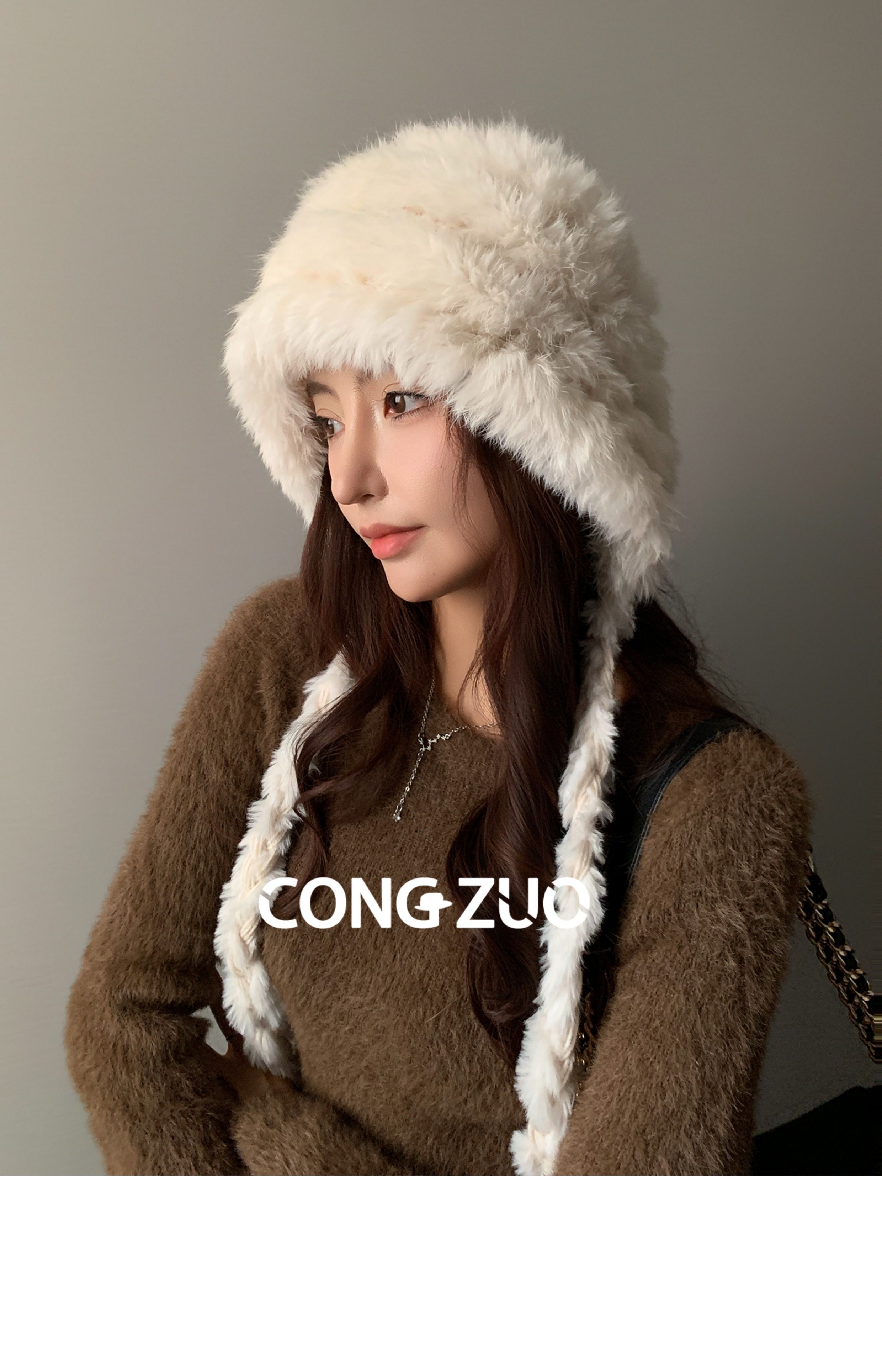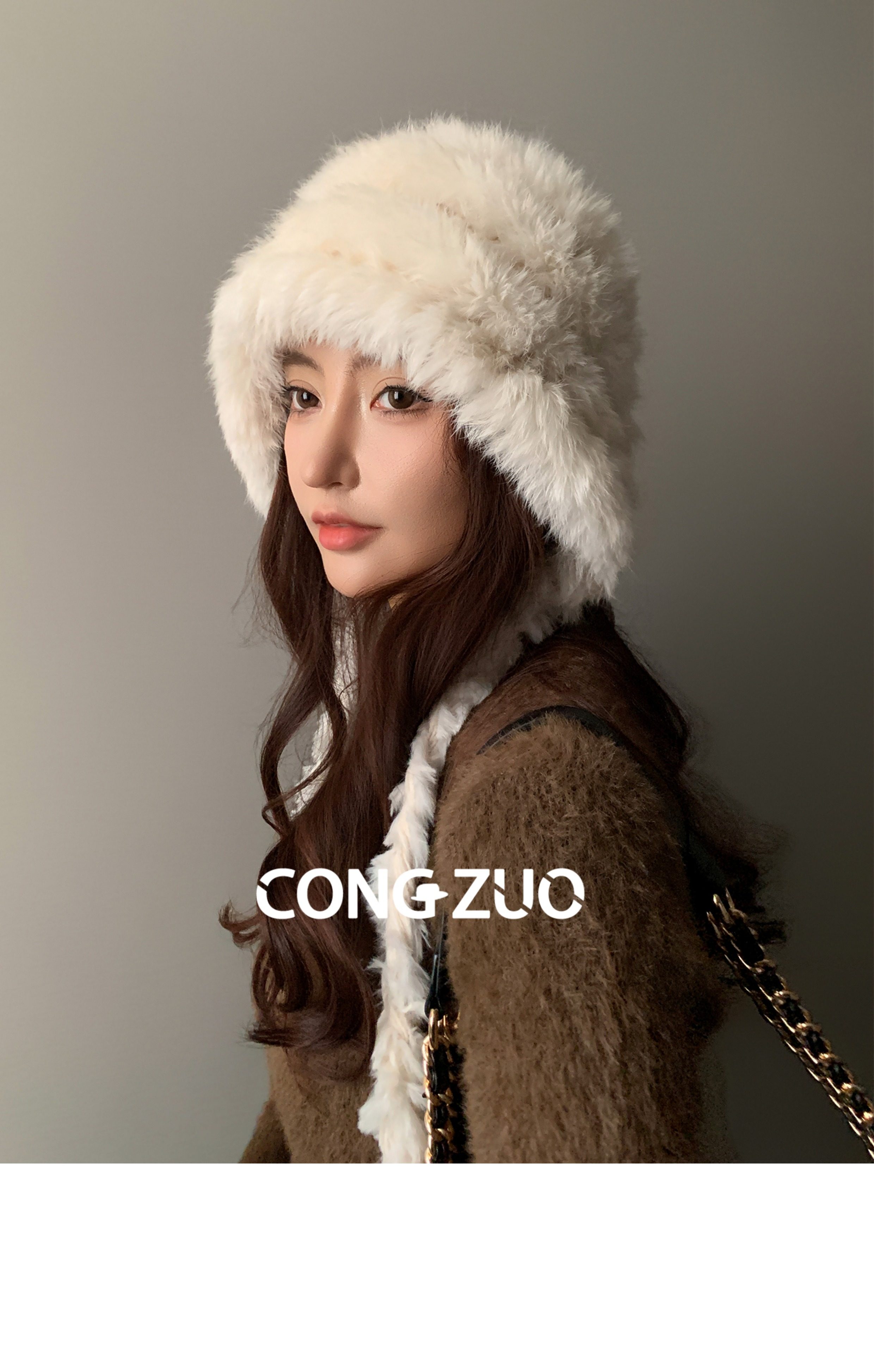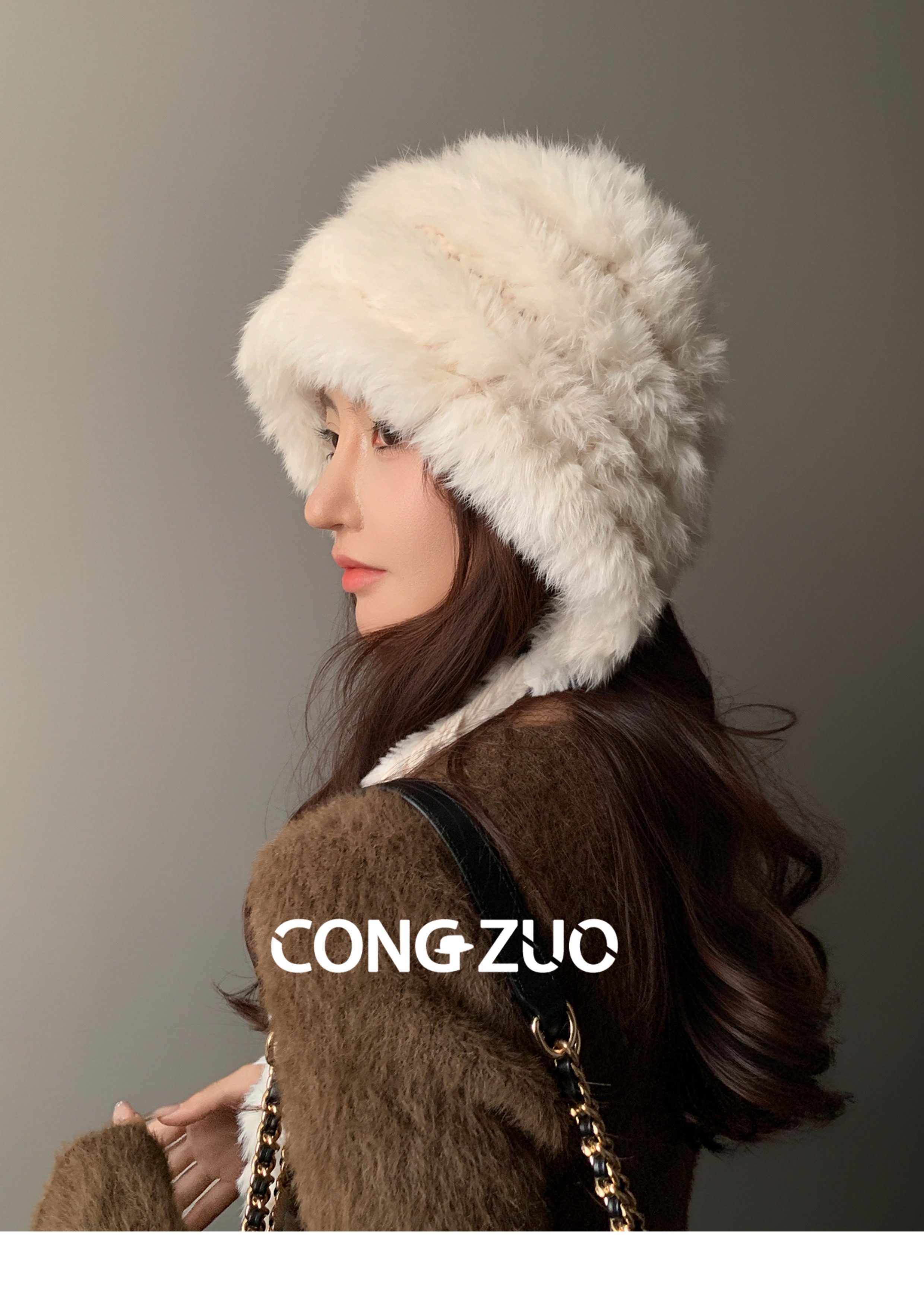 『从佐』兔毛混纺帽子女冬季大头围显脸小毛绒针织护耳新款包头帽