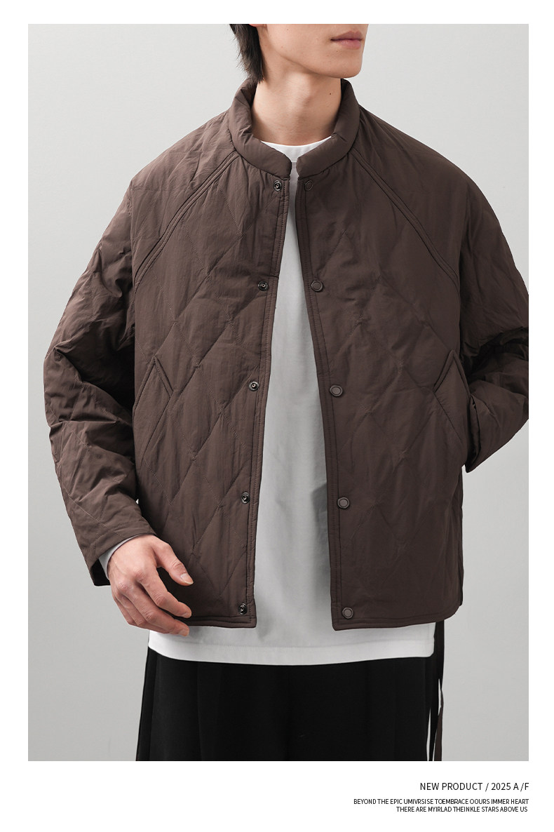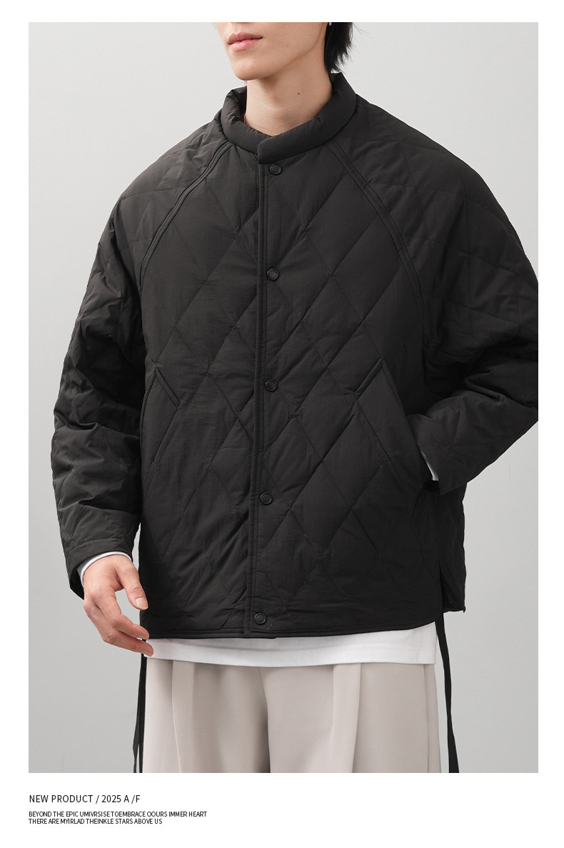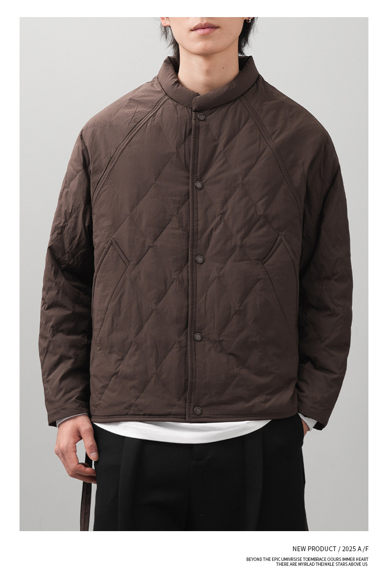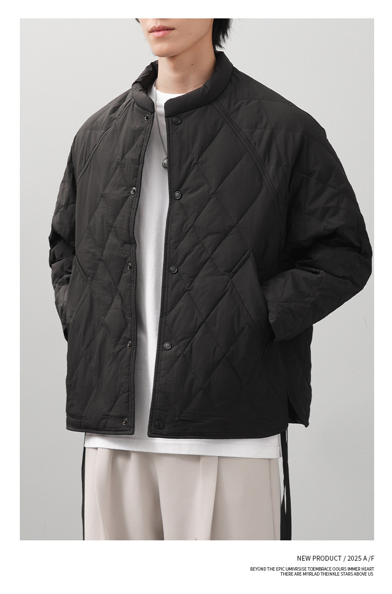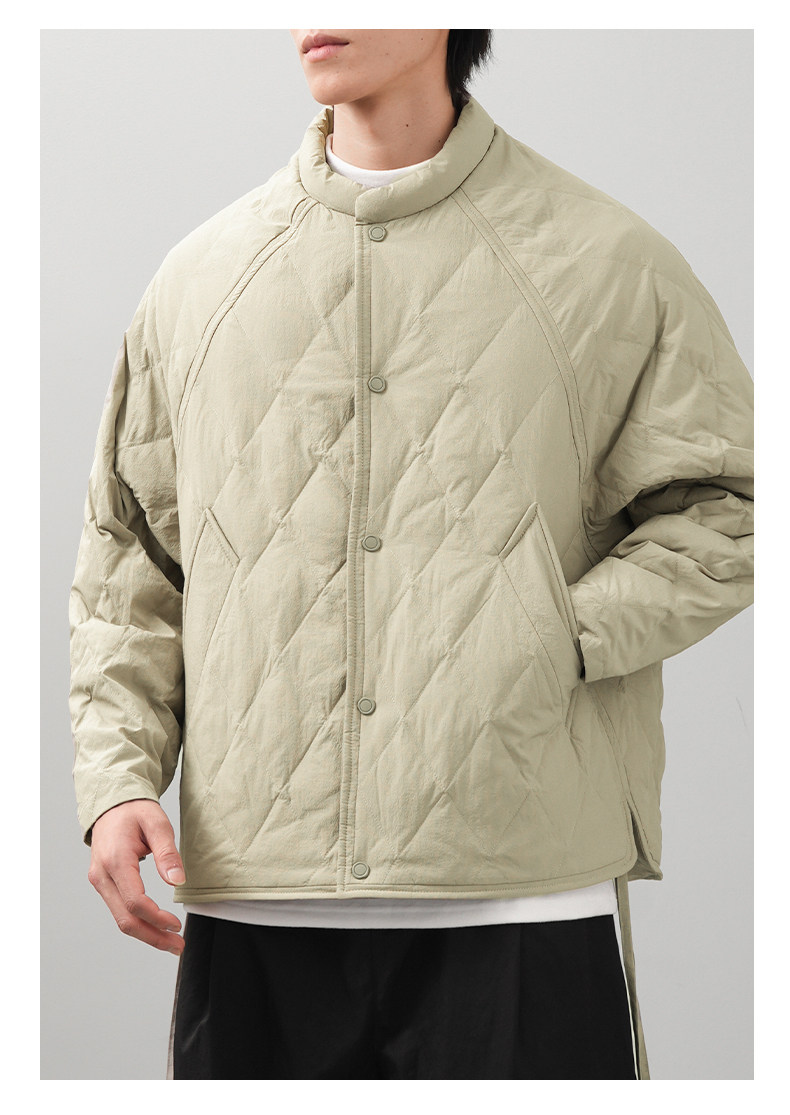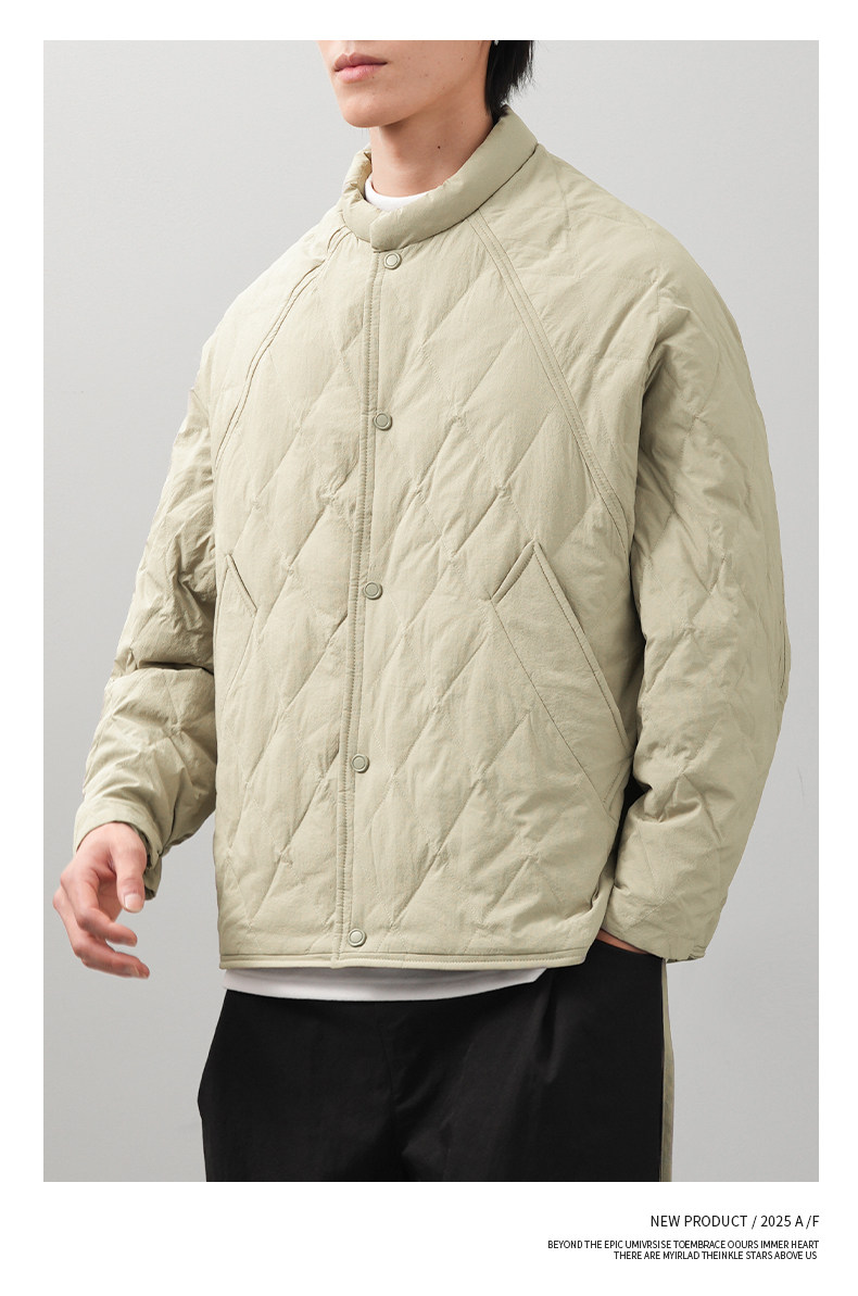 Pure 90 goose down rhombus down jacket for men in winter, light and thin American retro warm and cold-proof baseball uniform jacket