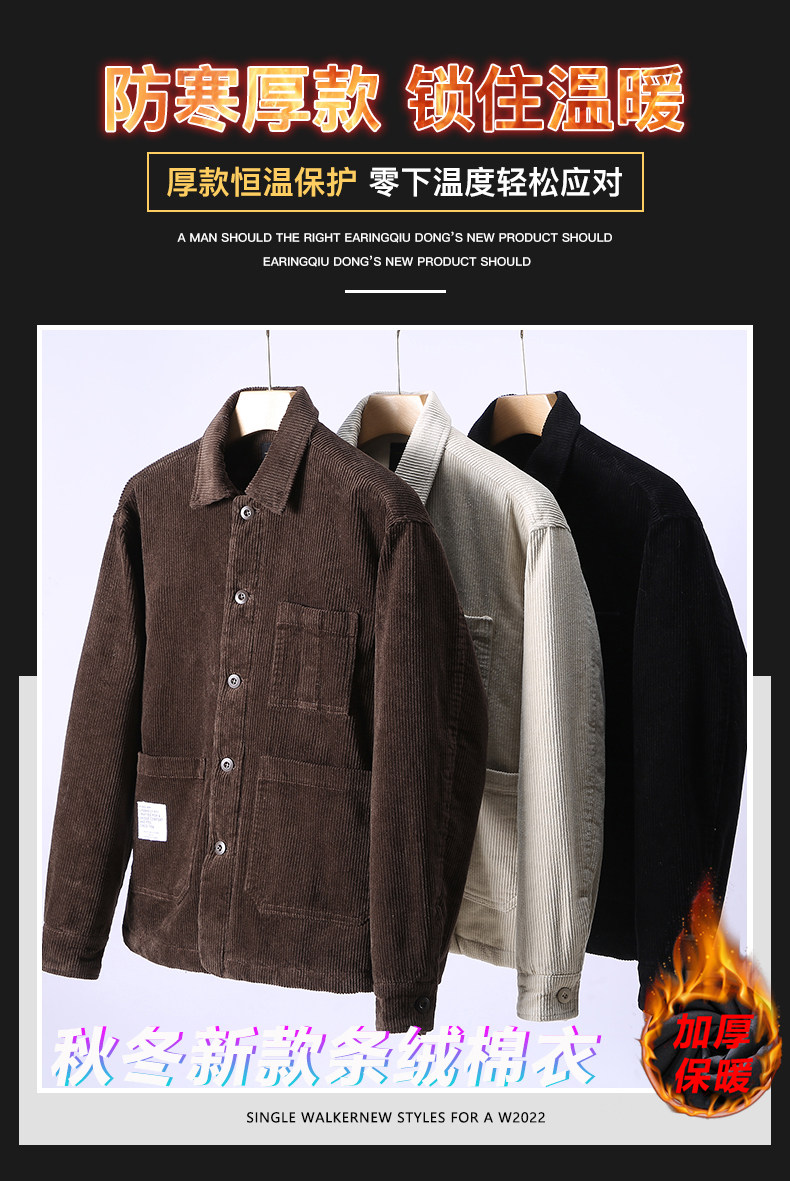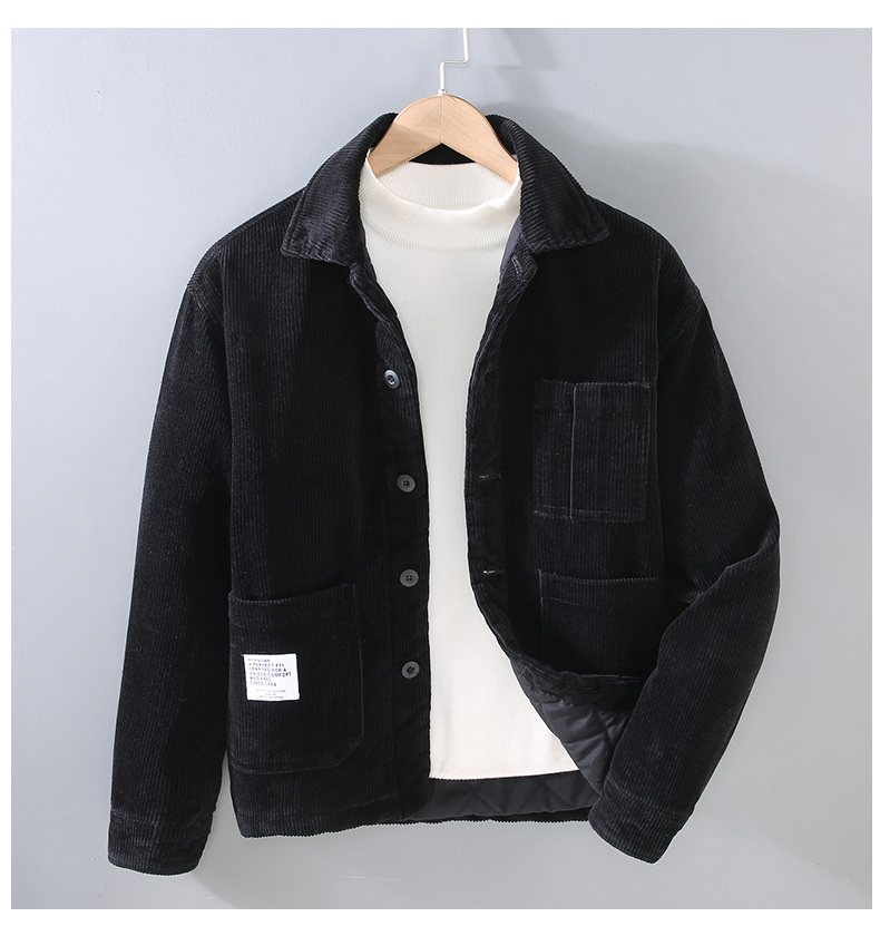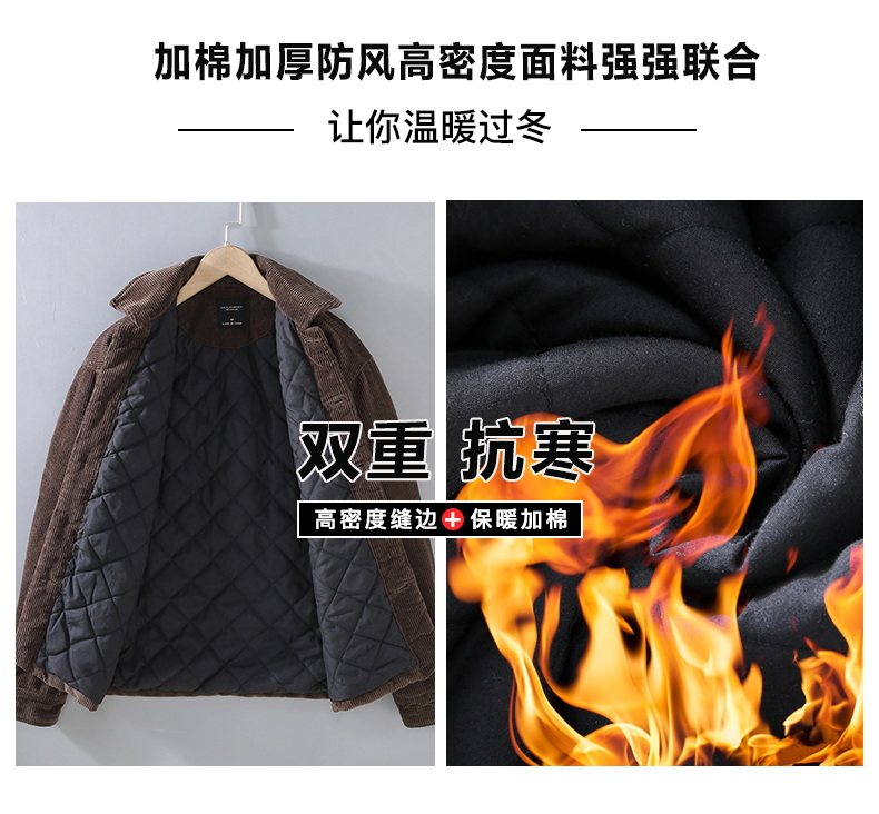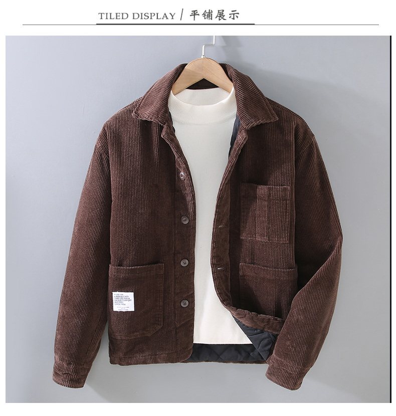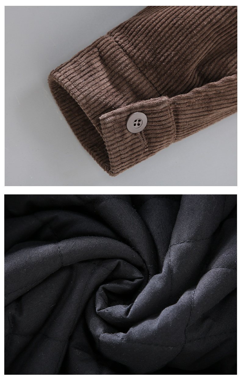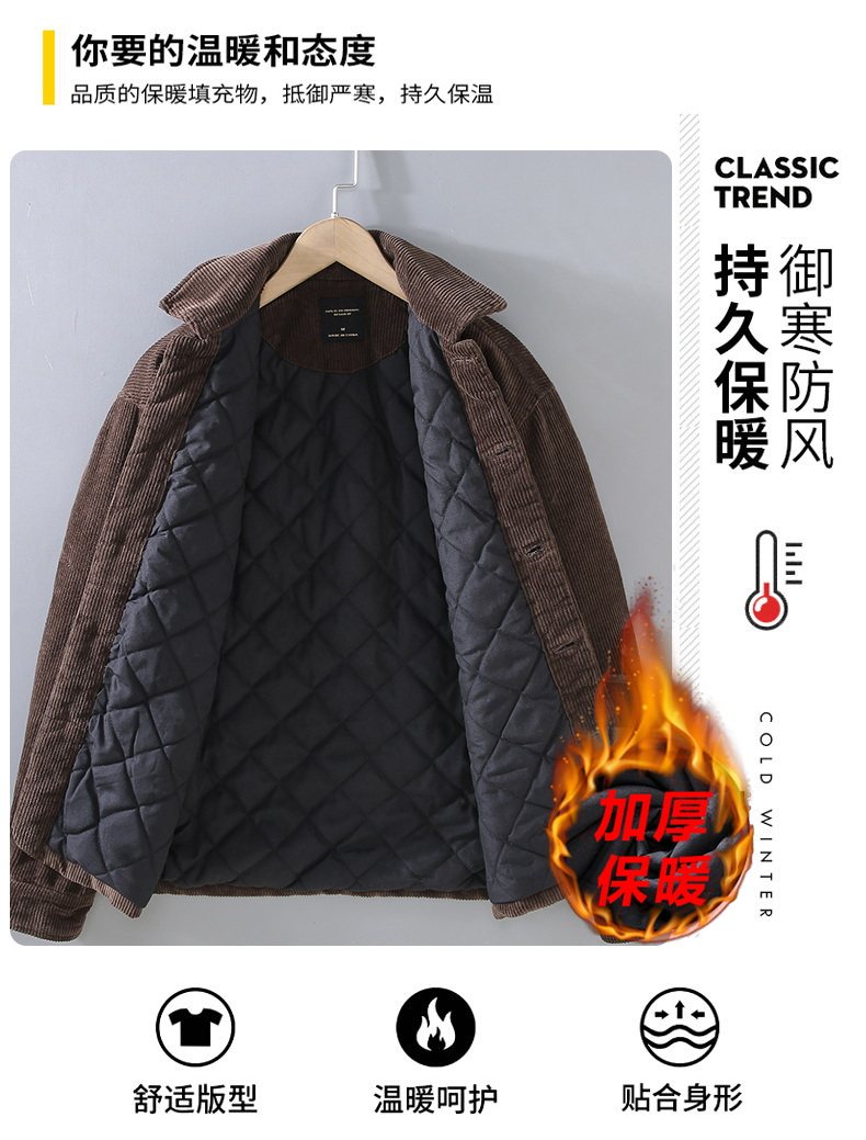 American-Style High-End Corduroy Cotton Jacket with a Turn-Down Collar for Men, Winter Thickened Cotton Coat, Warm Workwear Outerwear