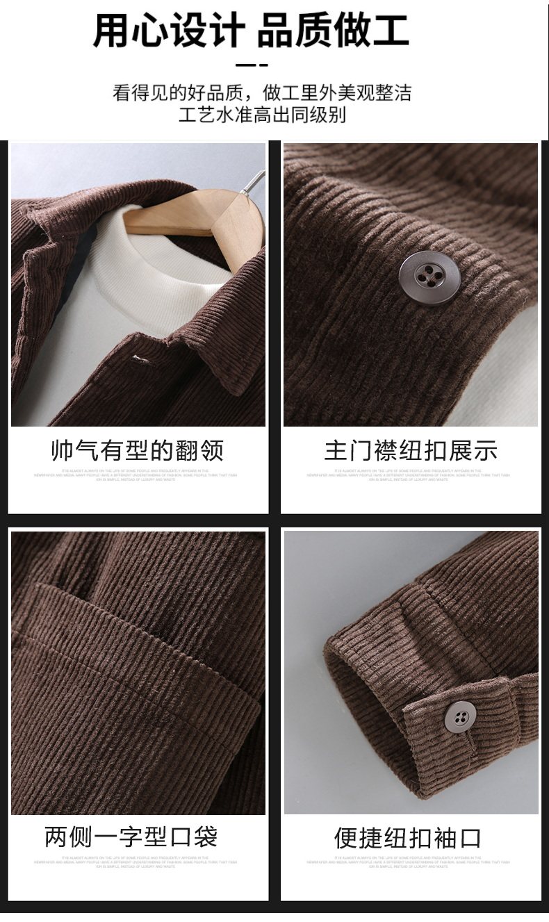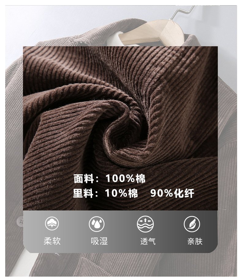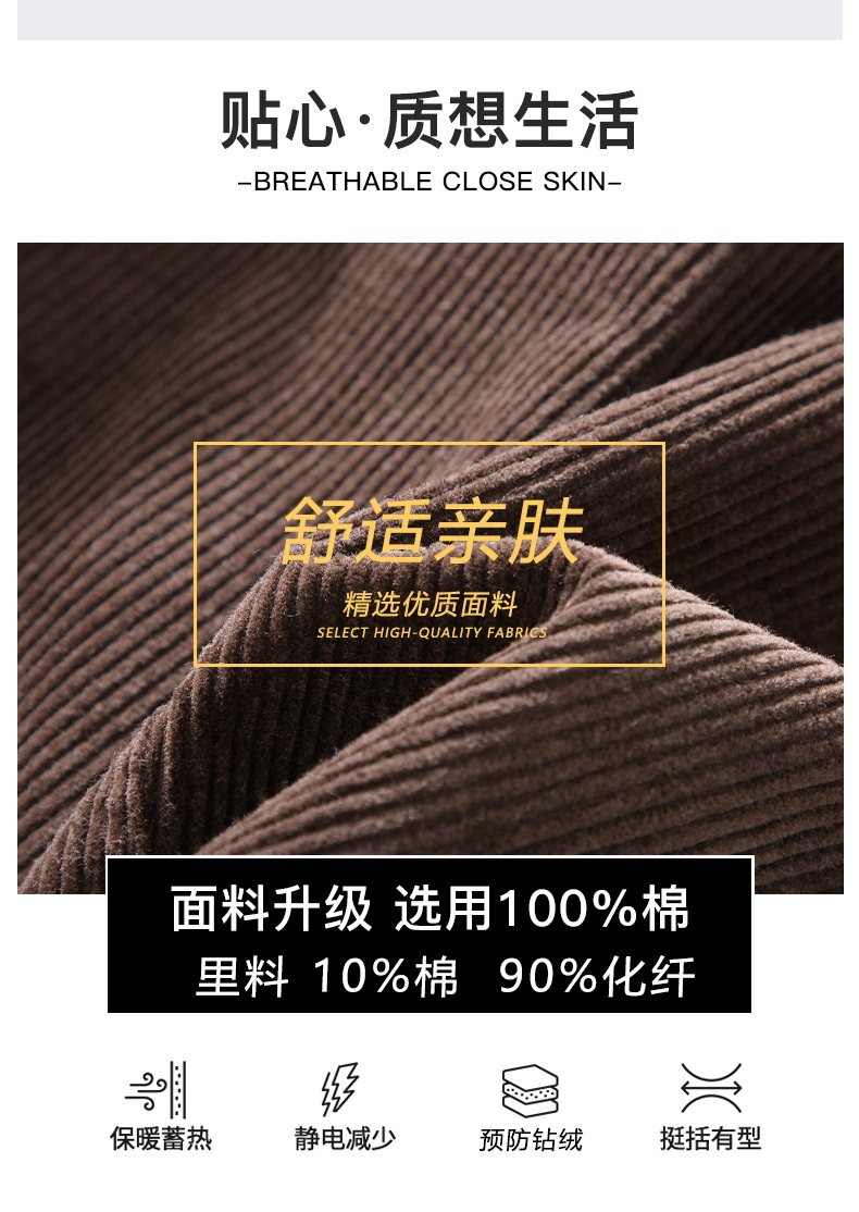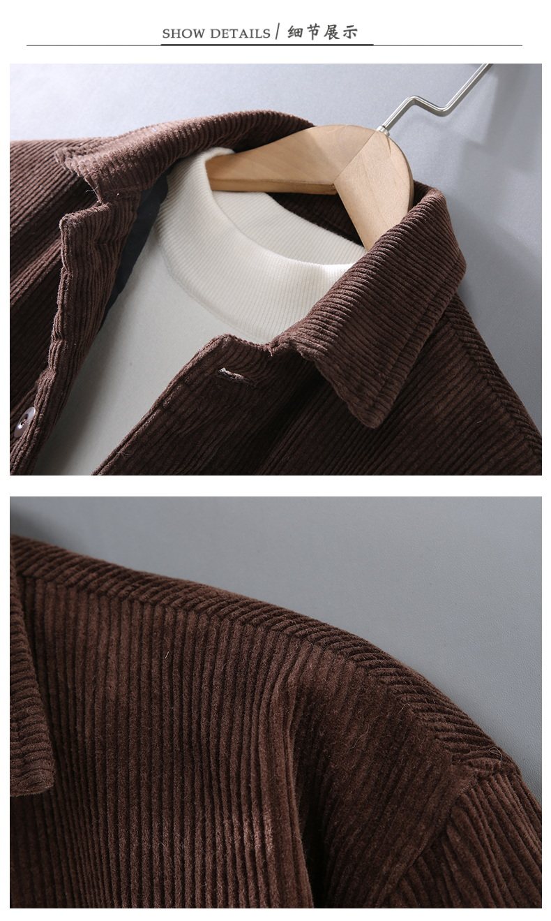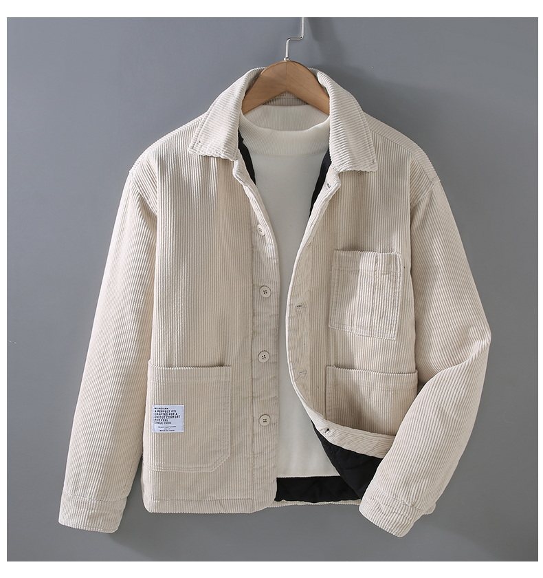 American-Style High-End Corduroy Cotton Jacket with a Turn-Down Collar for Men, Winter Thickened Cotton Coat, Warm Workwear Outerwear