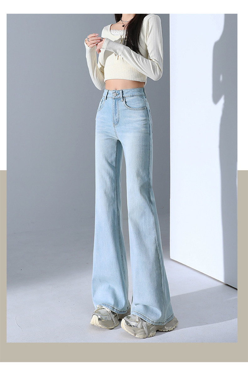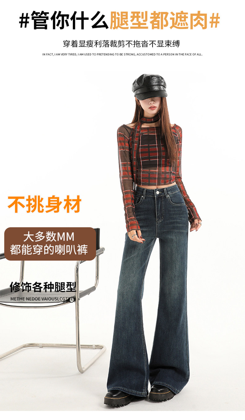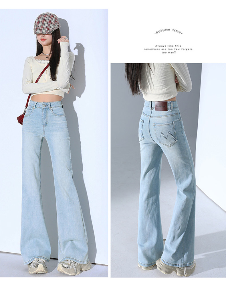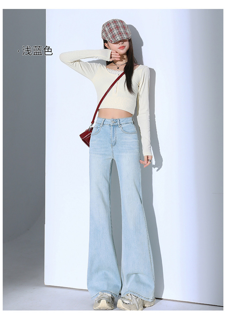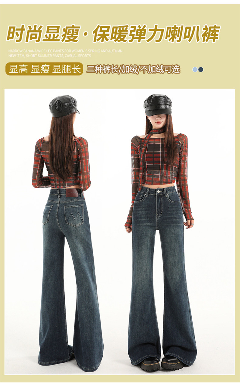 Vintage High-Waisted Flared Jeans for Women, Slimming and Versatile, with Fleece Lining, Thickened, Extended Length for Tall Individuals, Winter Edition