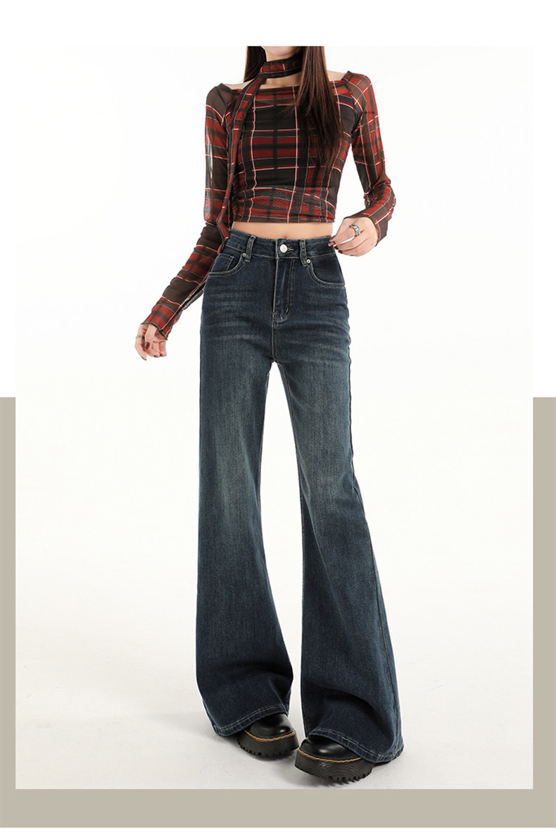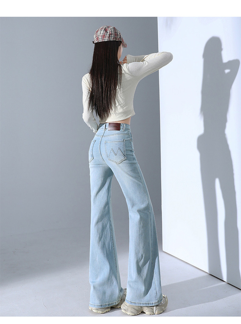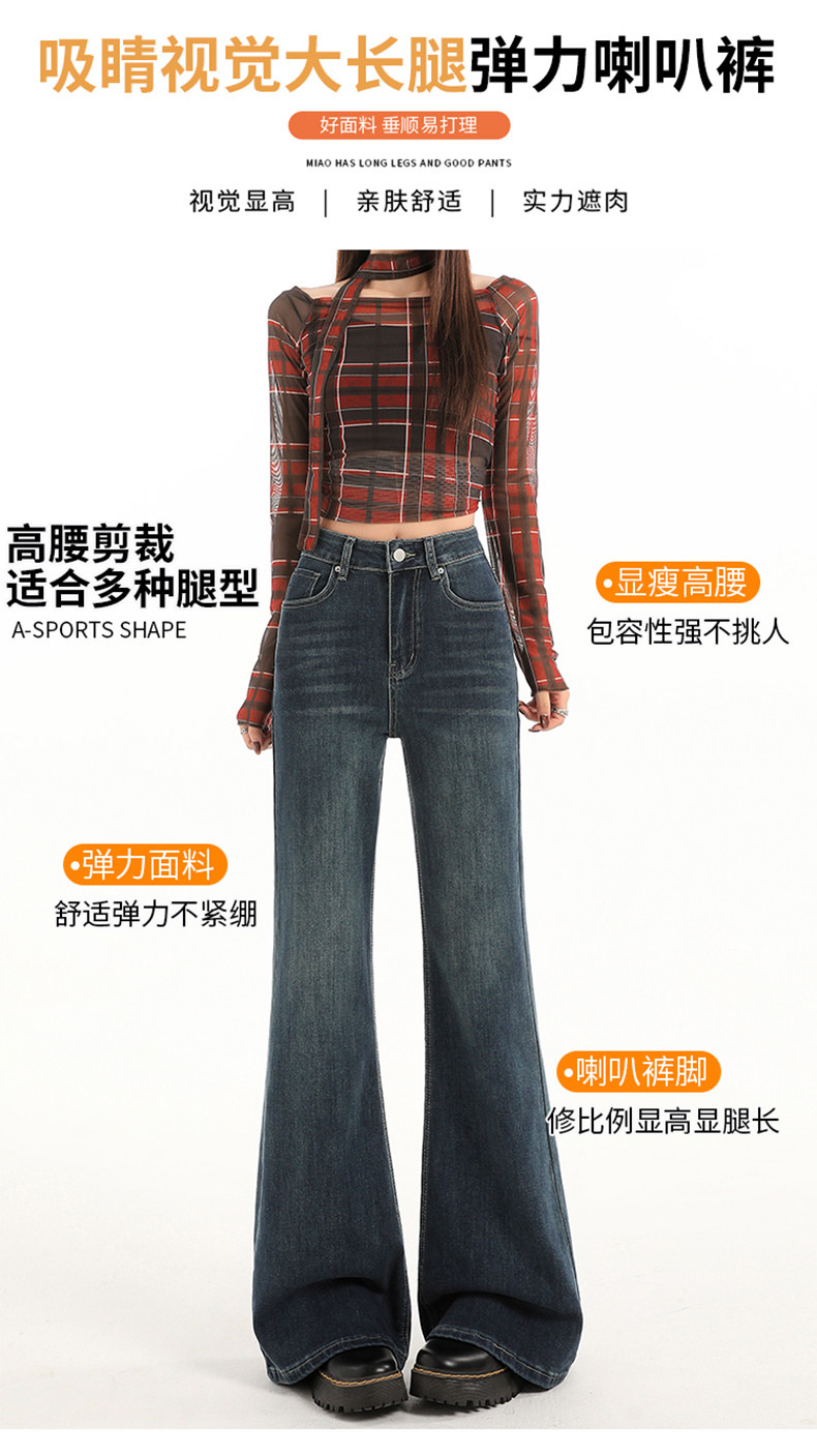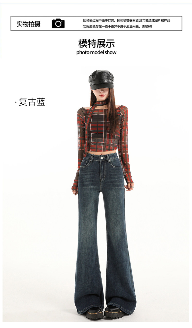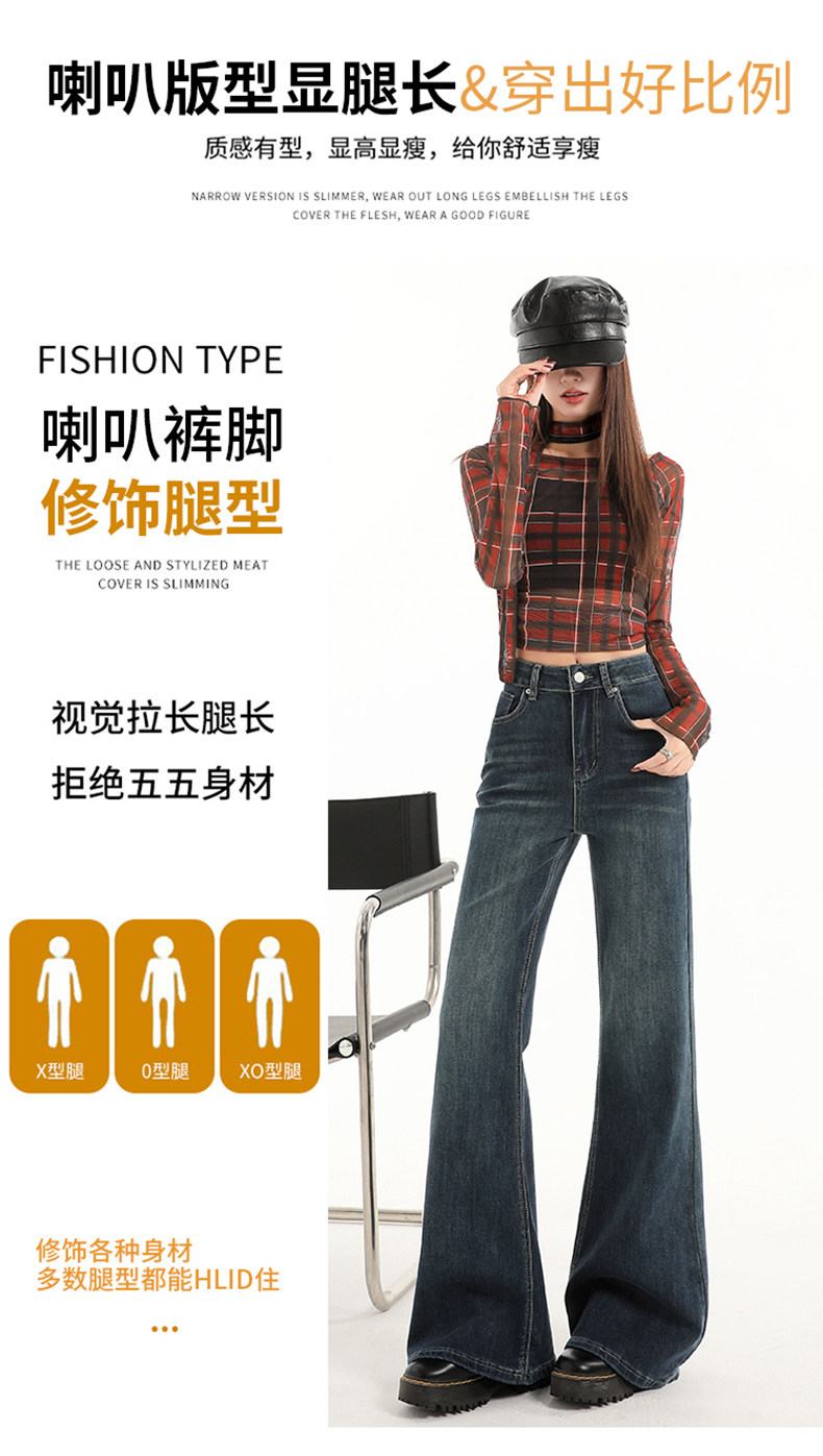 Vintage High-Waisted Flared Jeans for Women, Slimming and Versatile, with Fleece Lining, Thickened, Extended Length for Tall Individuals, Winter Edition