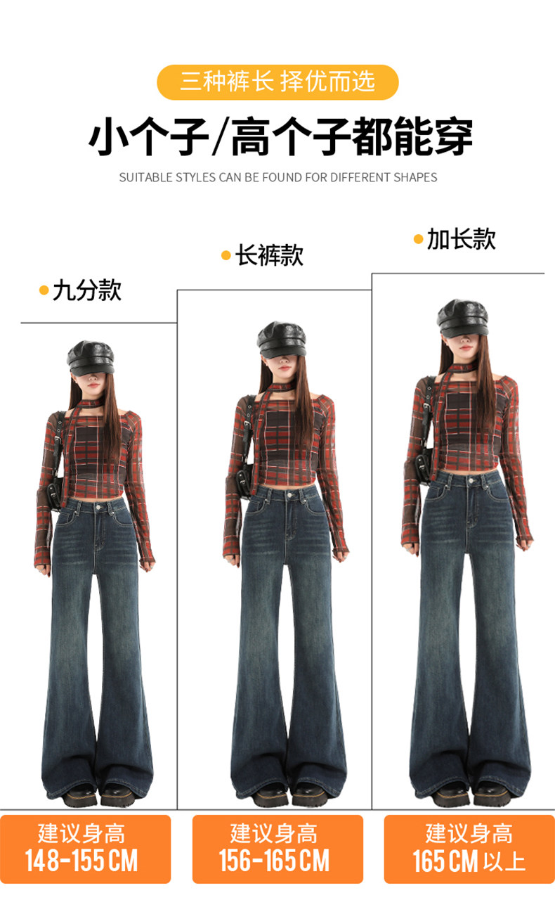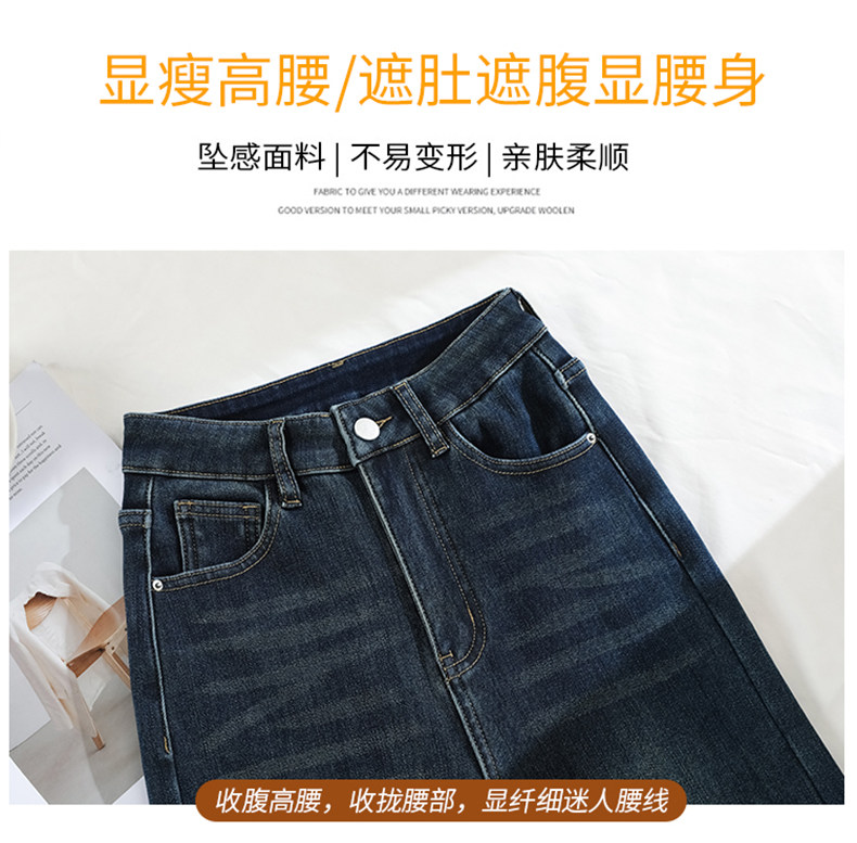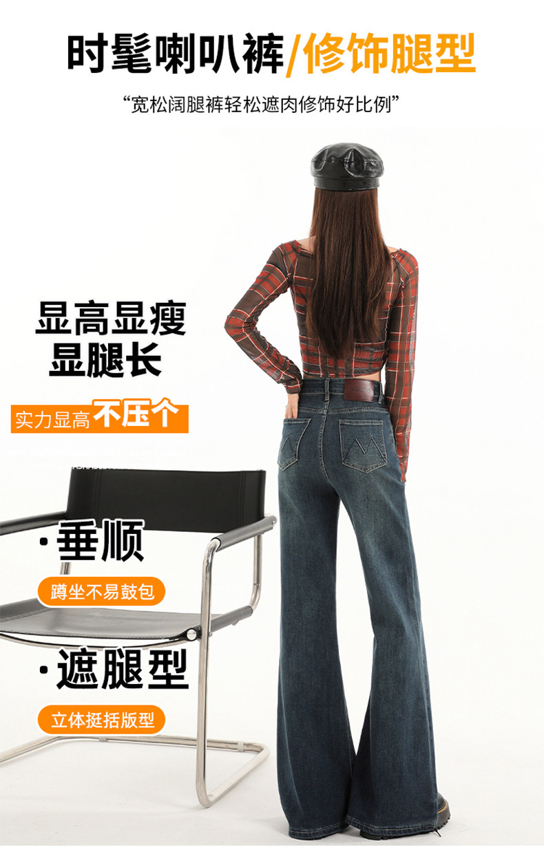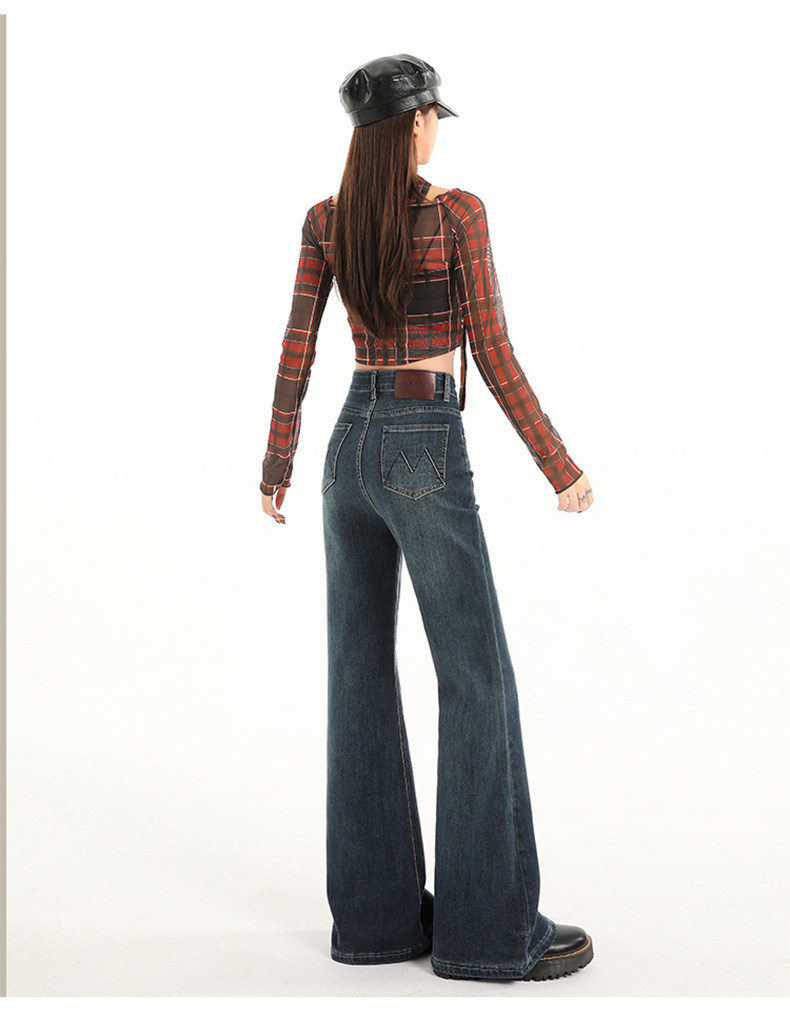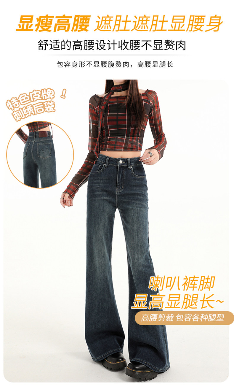 Vintage High-Waisted Flared Jeans for Women, Slimming and Versatile, with Fleece Lining, Thickened, Extended Length for Tall Individuals, Winter Edition