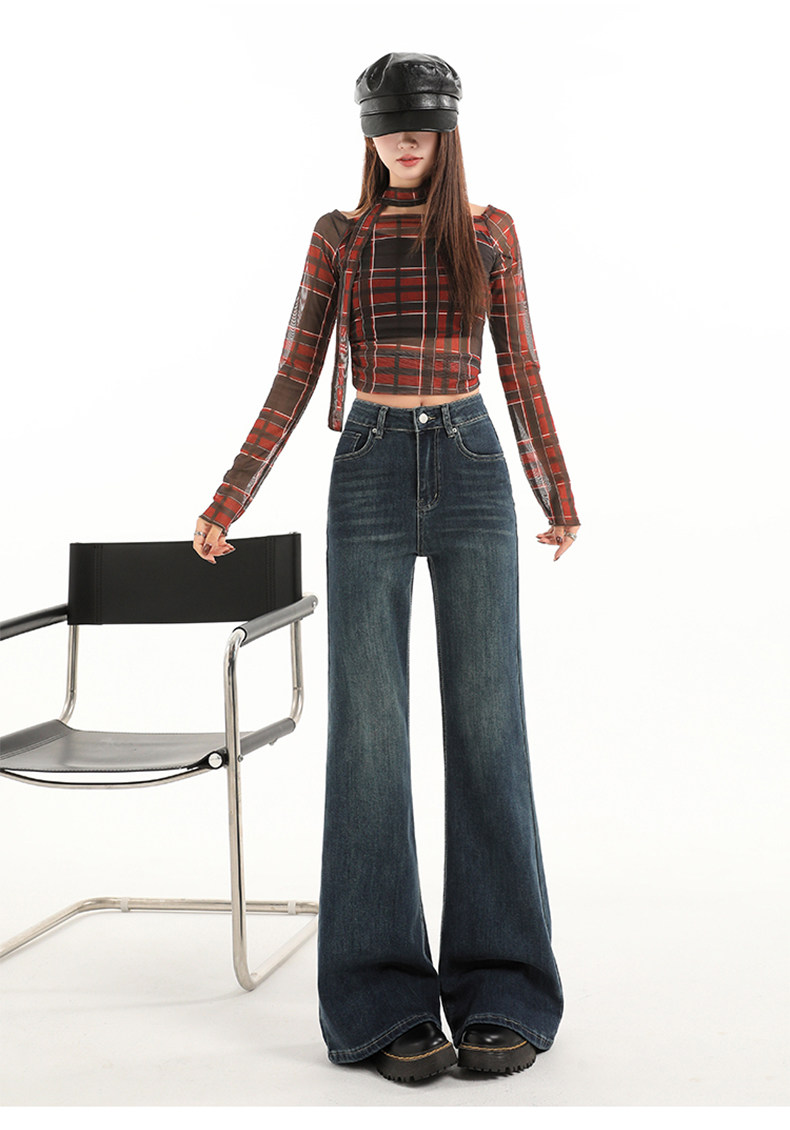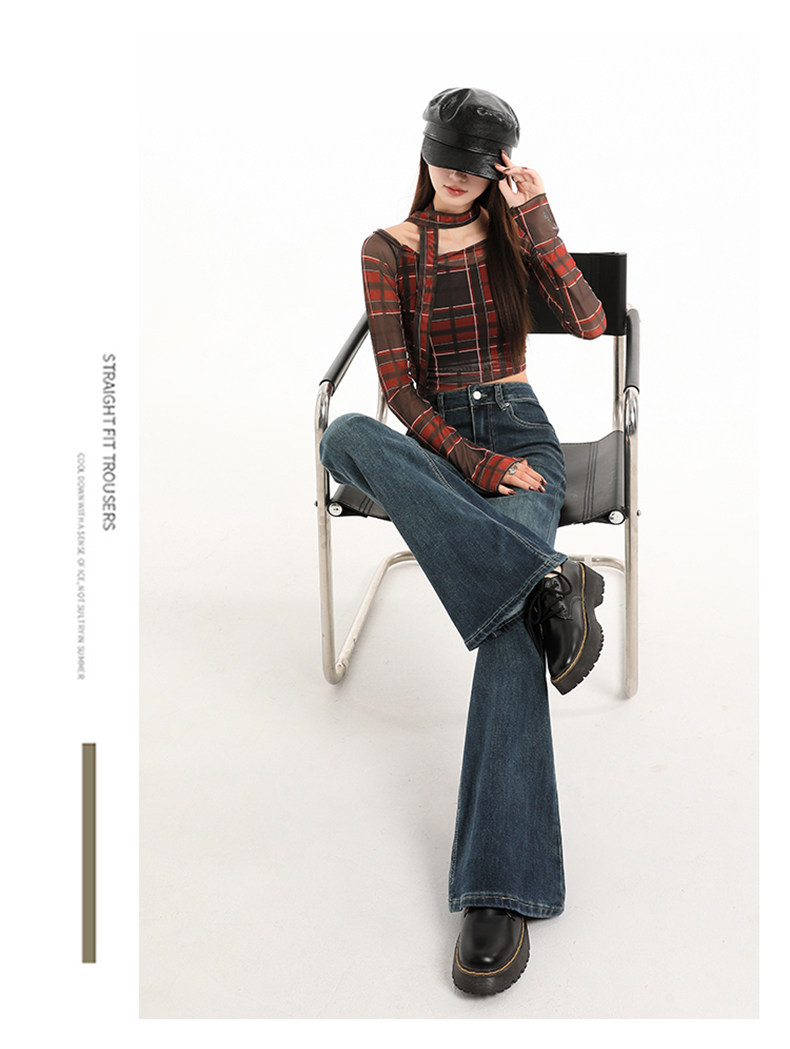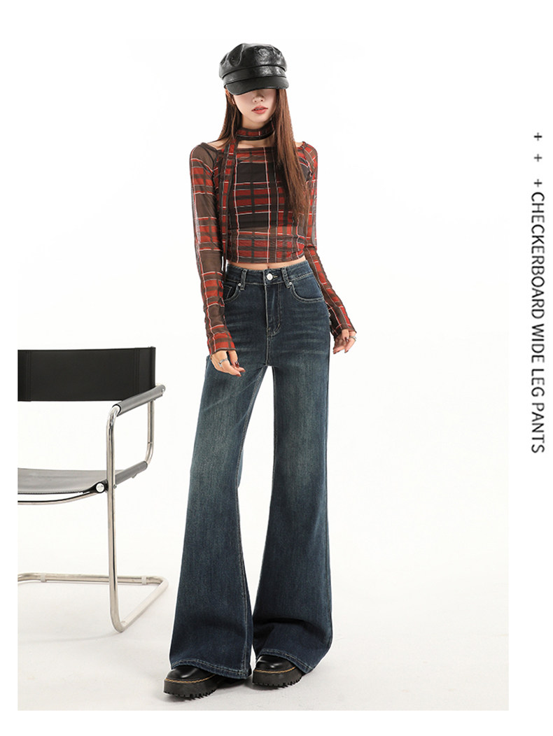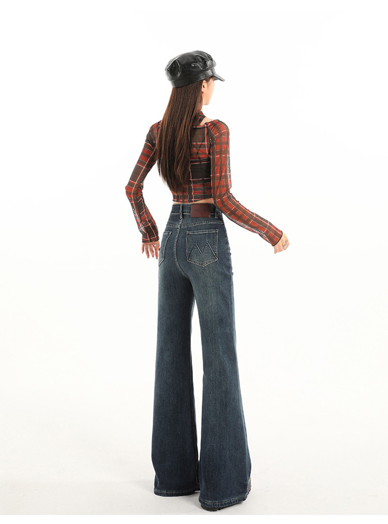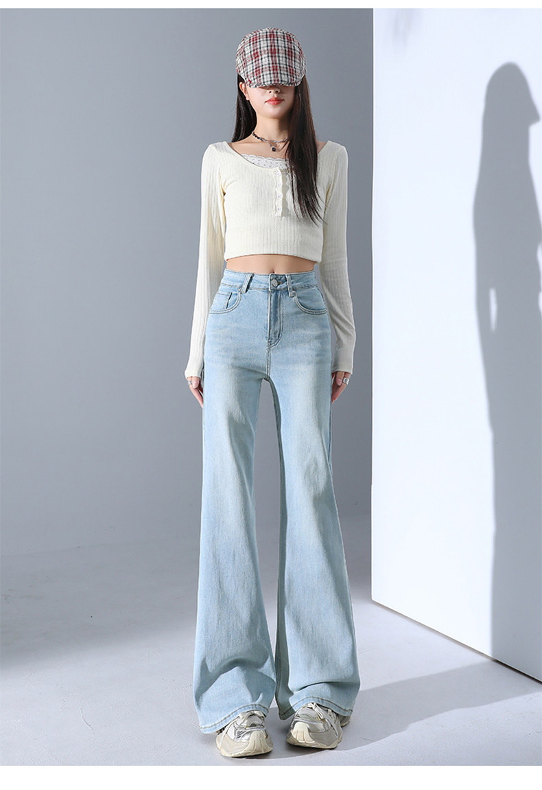 Vintage High-Waisted Flared Jeans for Women, Slimming and Versatile, with Fleece Lining, Thickened, Extended Length for Tall Individuals, Winter Edition