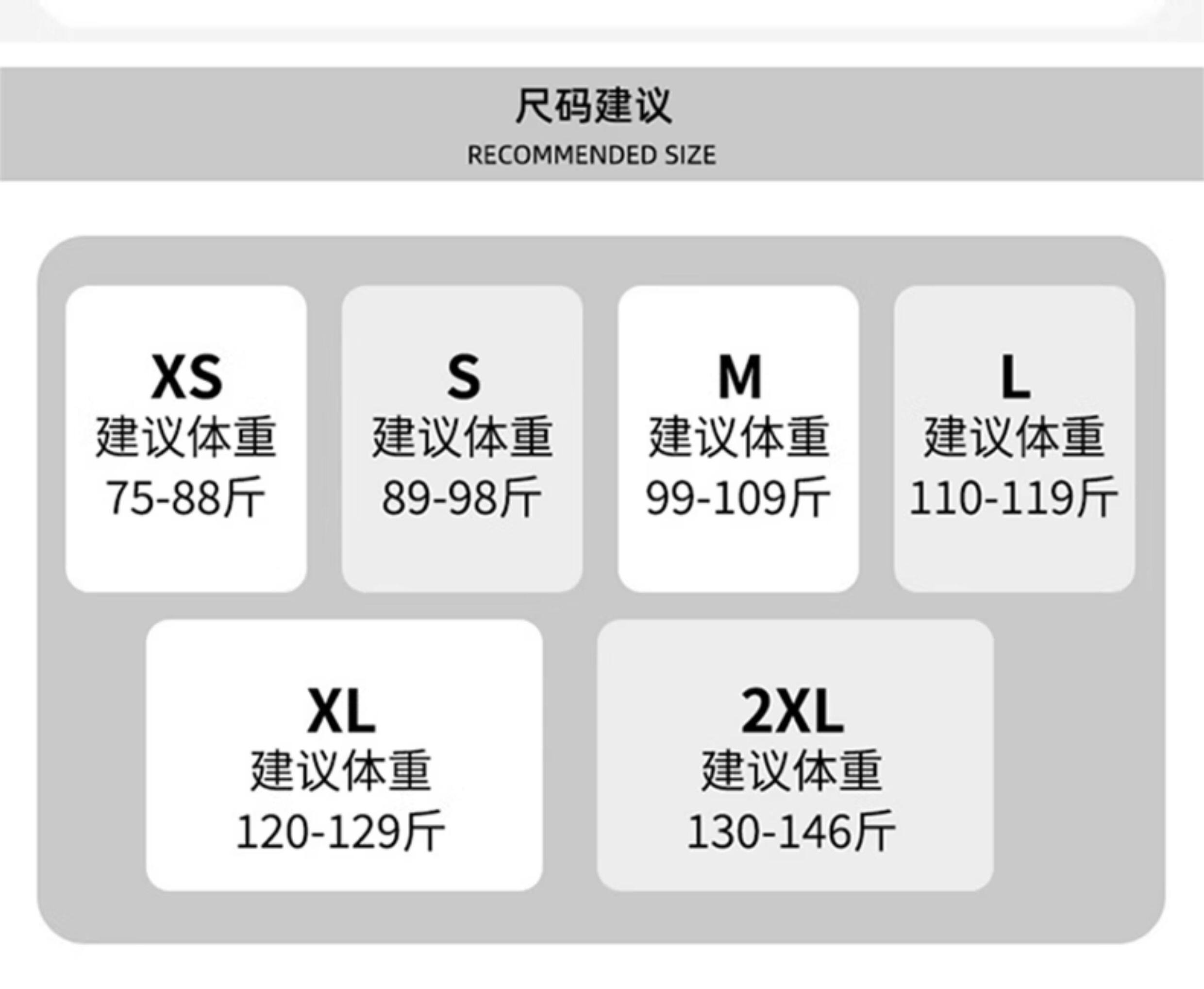 China (cm) 165 / 88-90 170 / 96-98 175 / 108-110 180 / 118-122 185 / 126-130